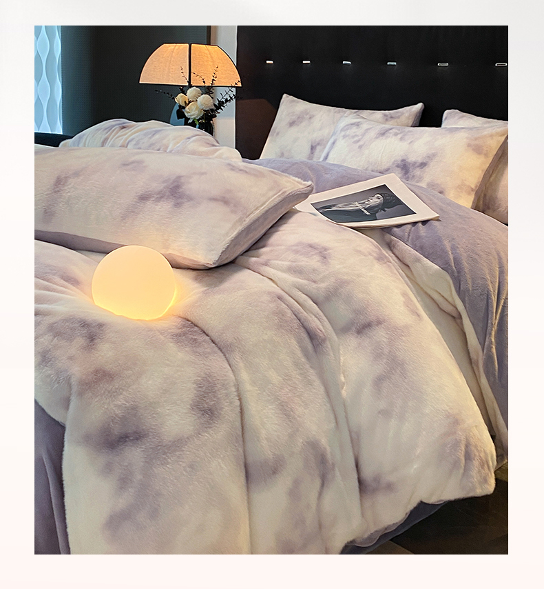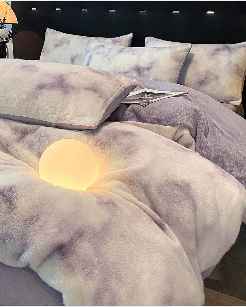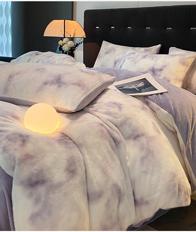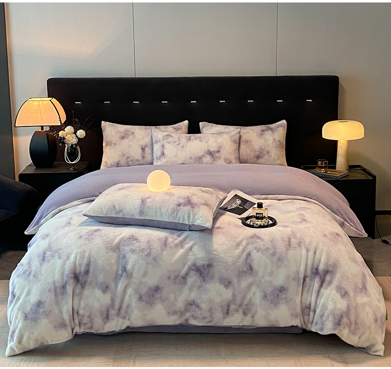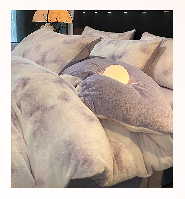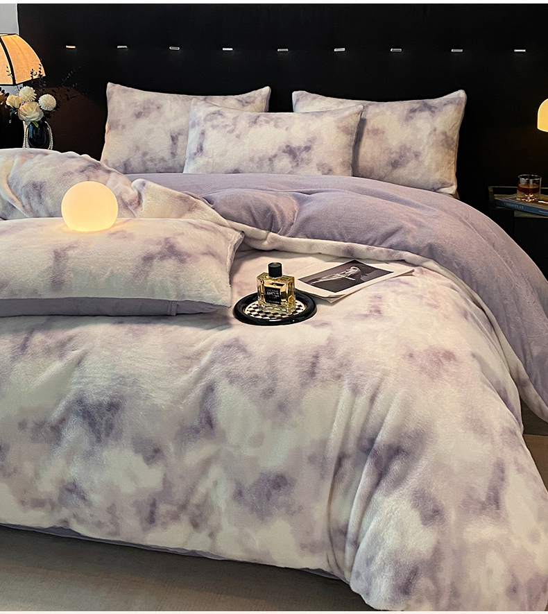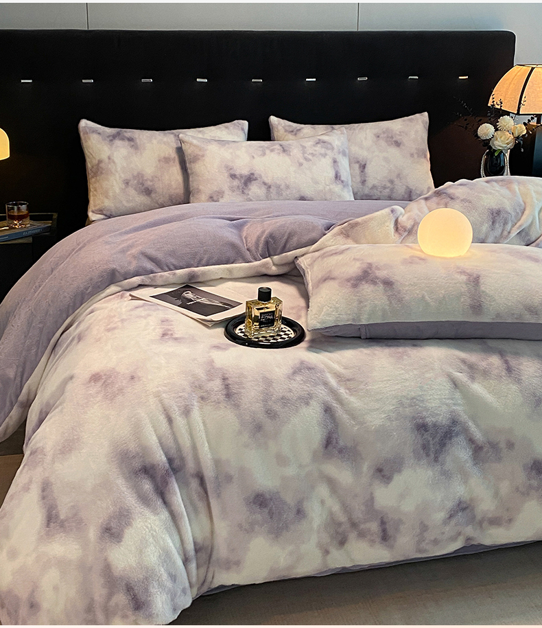 嗯呢家纺 2024新款A类高克重全消光雪貂绒扎染风四件套-七彩 七彩-紫