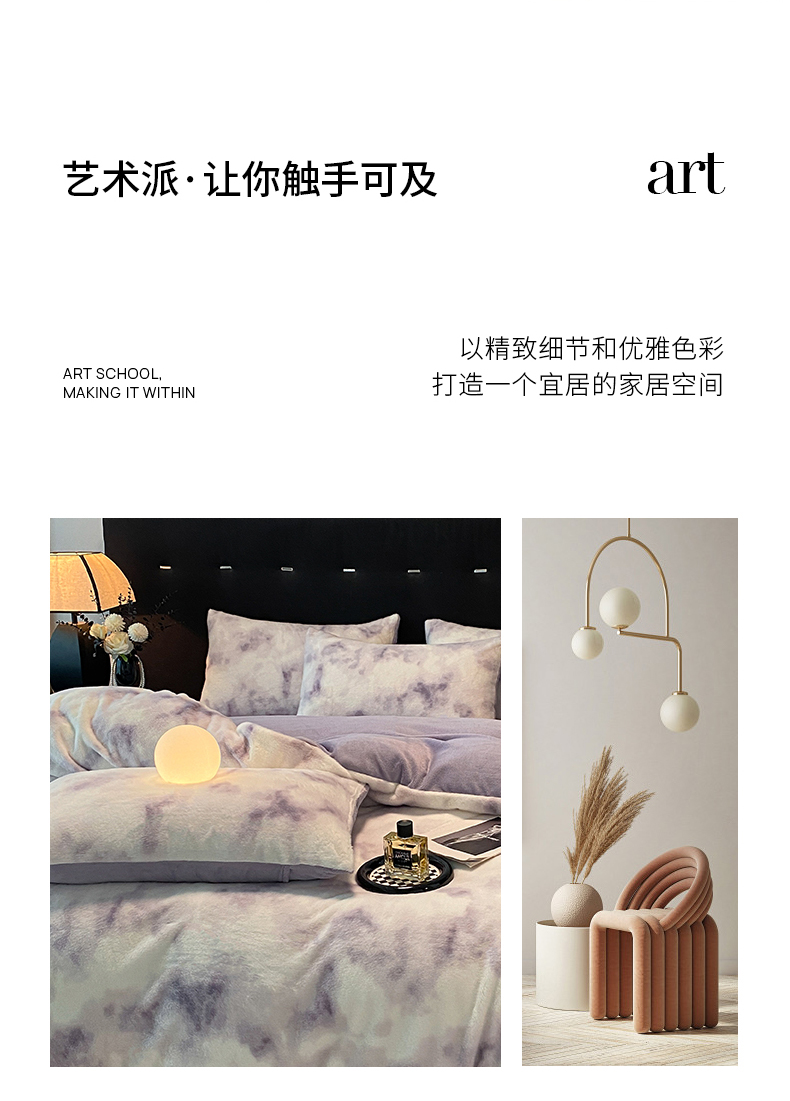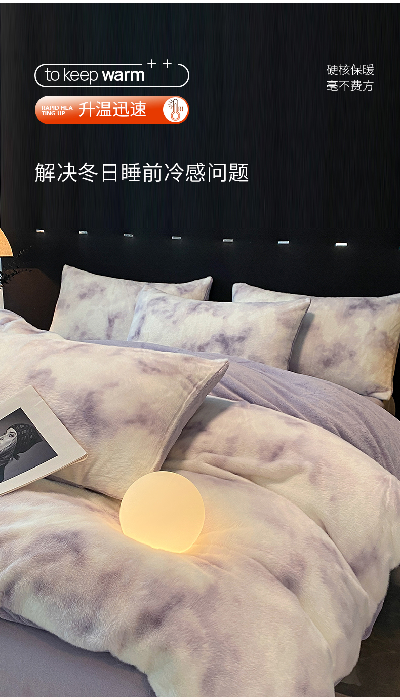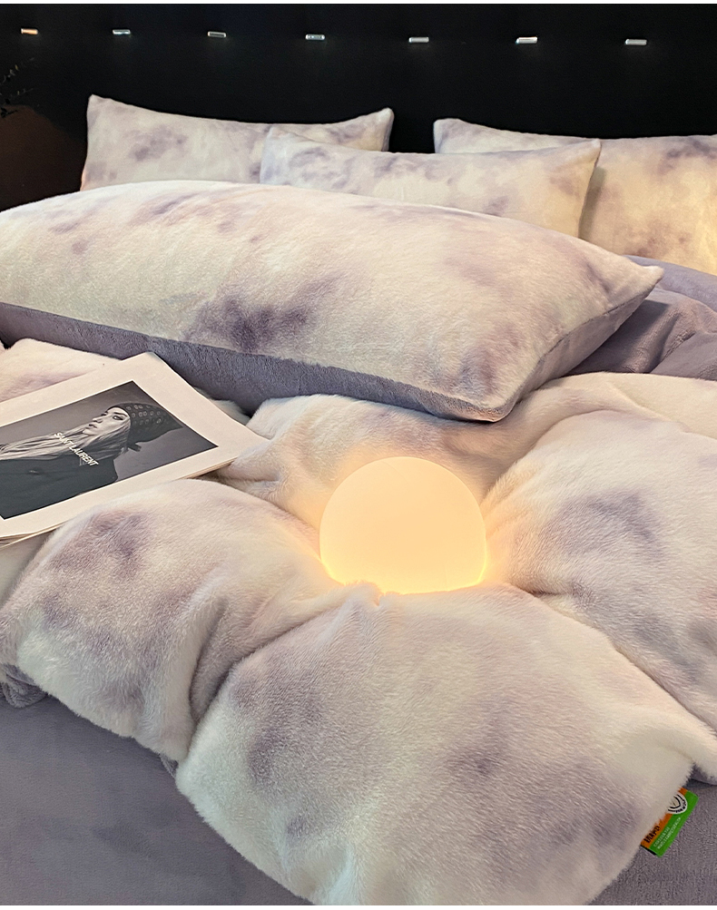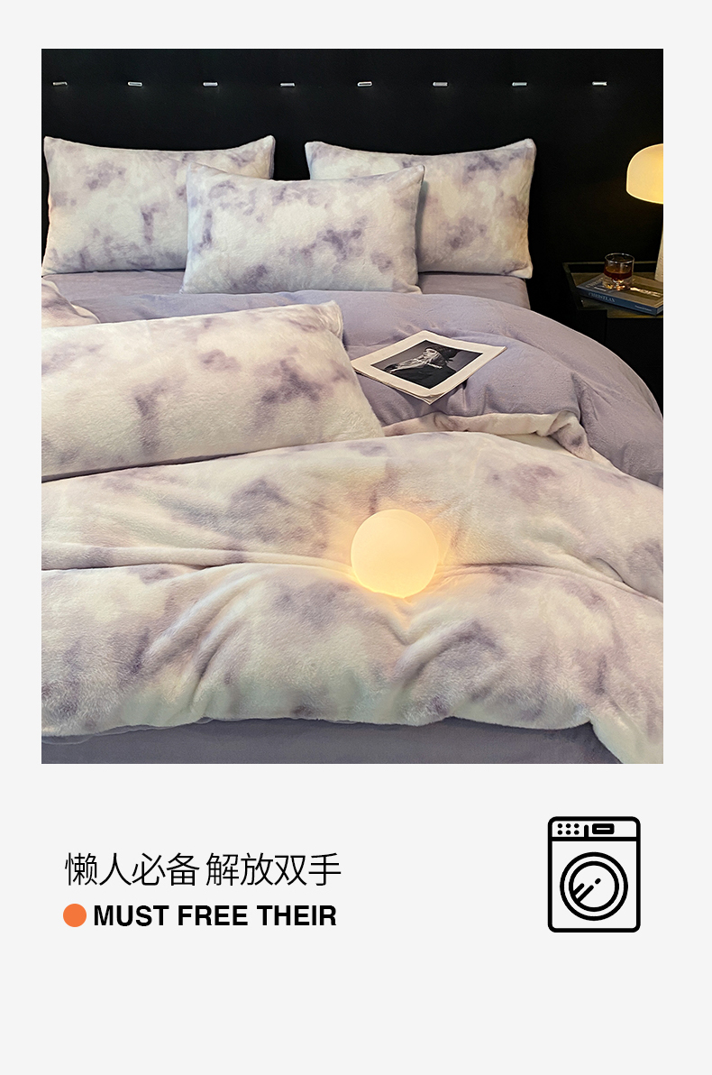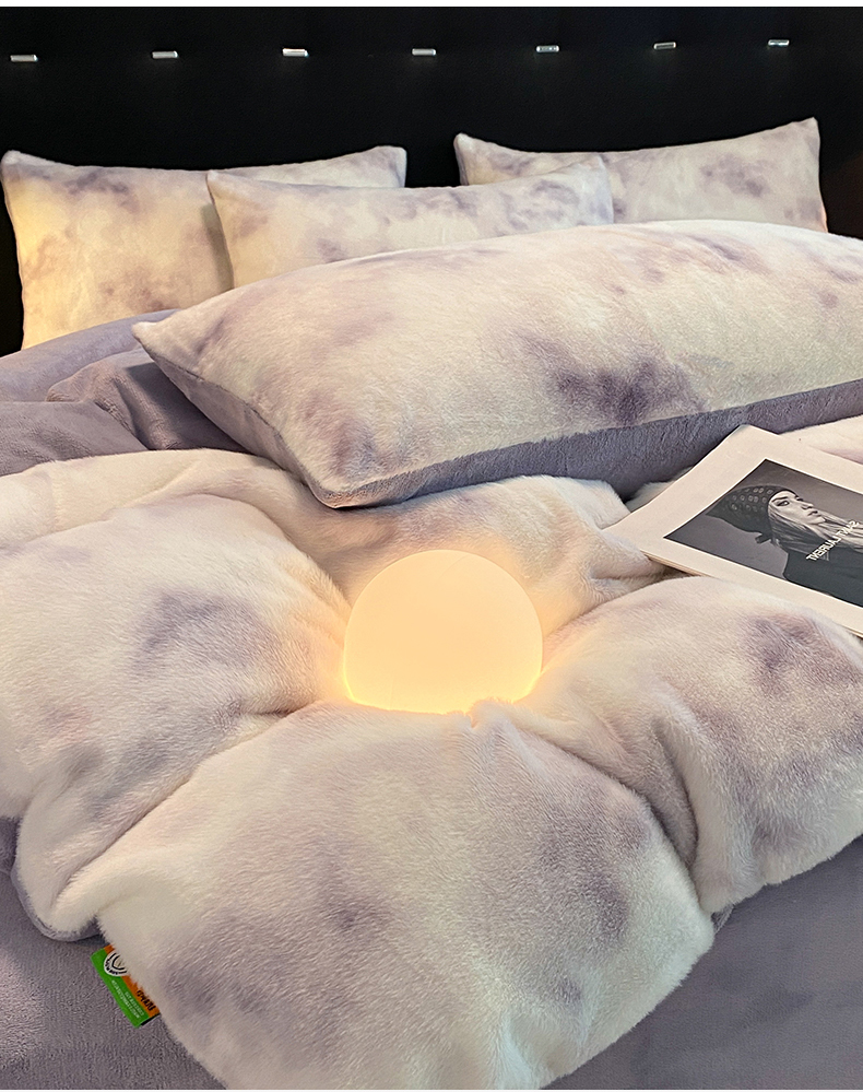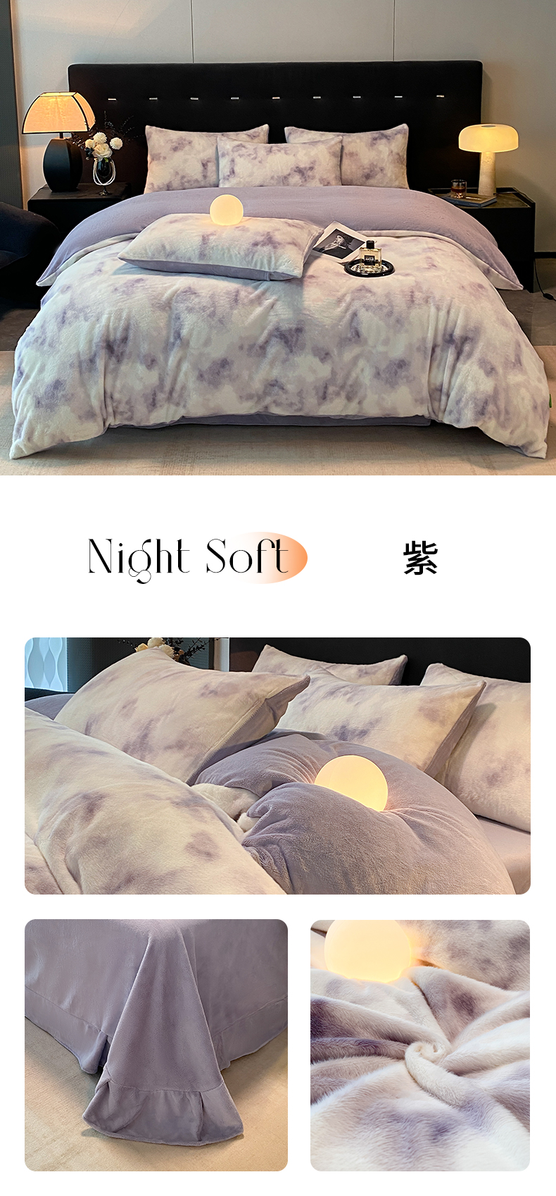 嗯呢家纺 2024新款A类高克重全消光雪貂绒扎染风四件套-七彩 七彩-紫