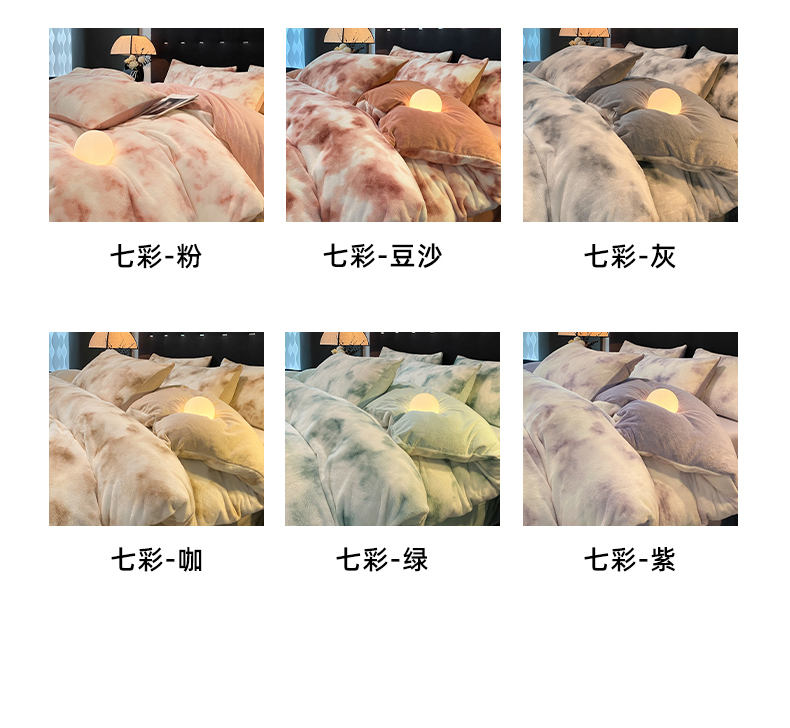 (总)嗯呢家纺 2024新款A类高克重全消光雪貂绒扎染风四件套-七彩,七彩-豆沙,七彩-粉,七彩-灰,七彩-咖,七彩-绿,七彩-紫