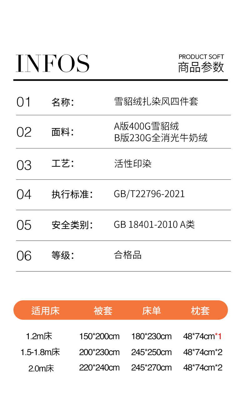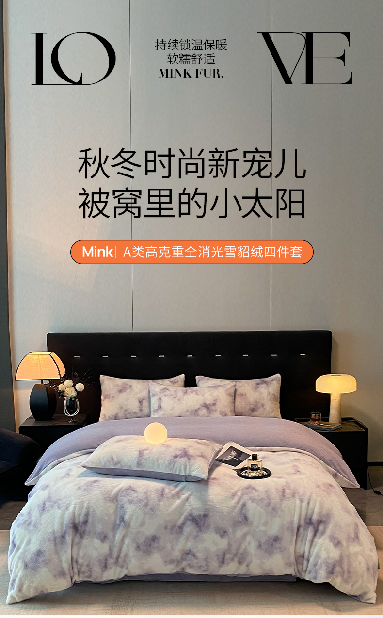 商品名称:嗯呢家纺 2024新款A类高克重全消光雪貂绒扎染风四件套-七彩 七彩-紫