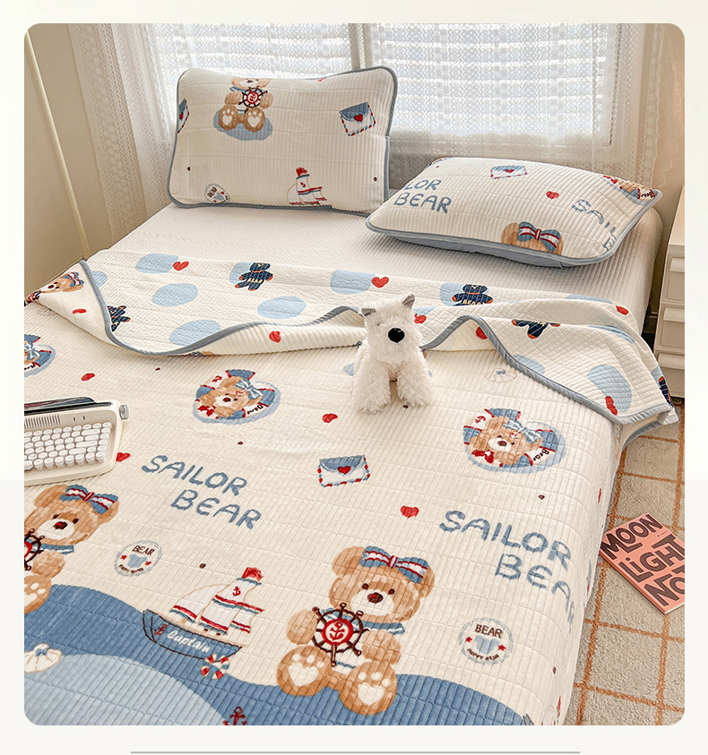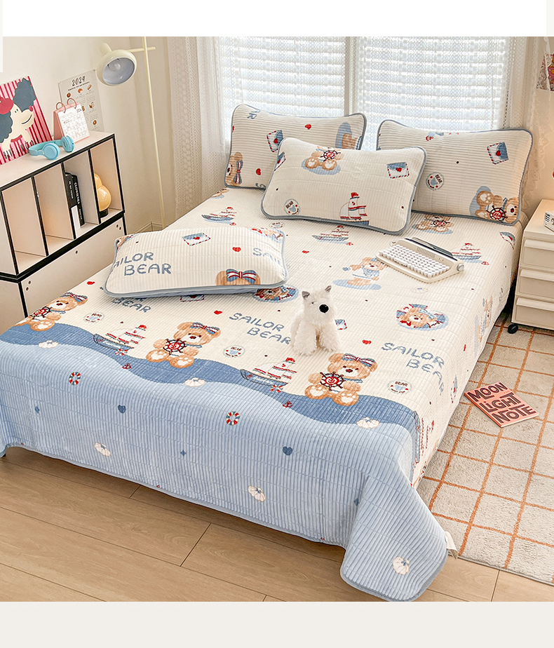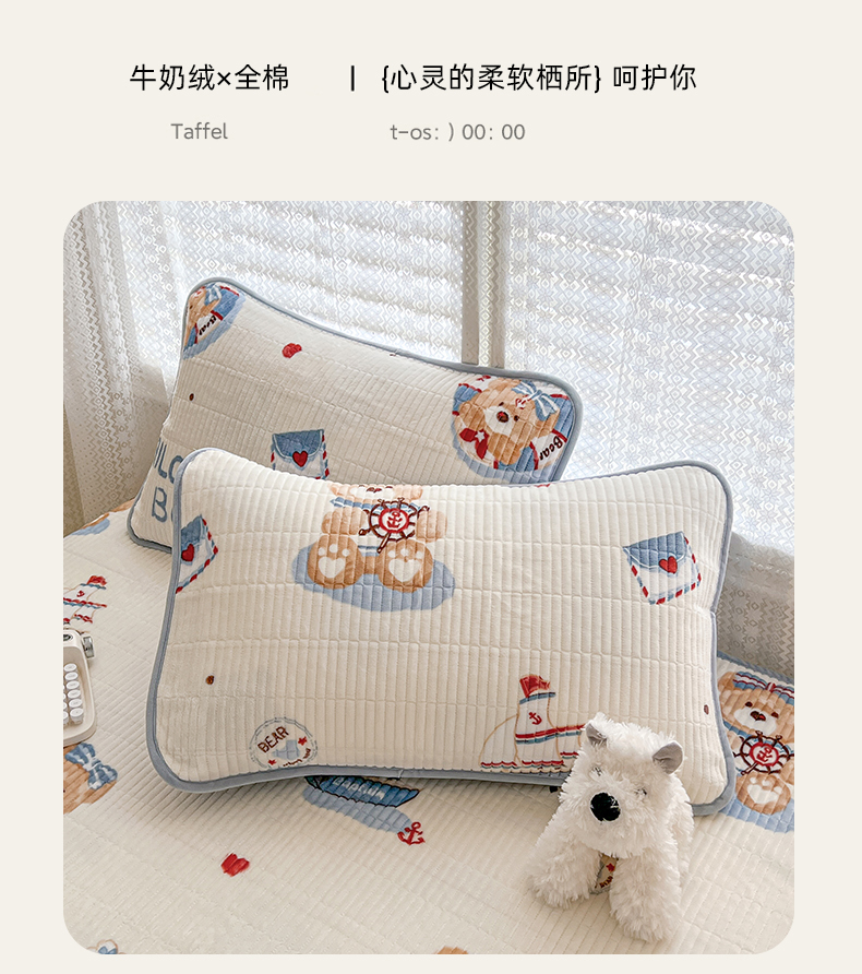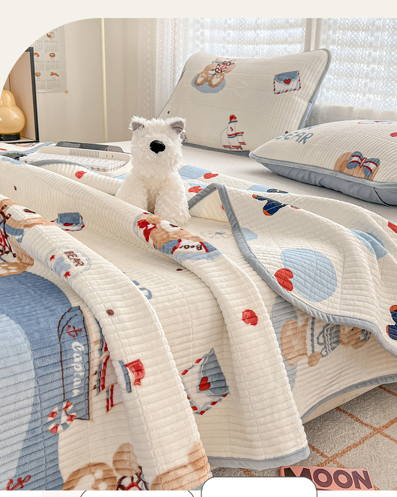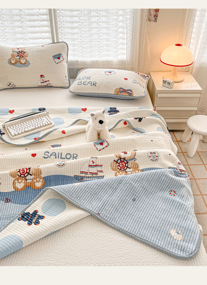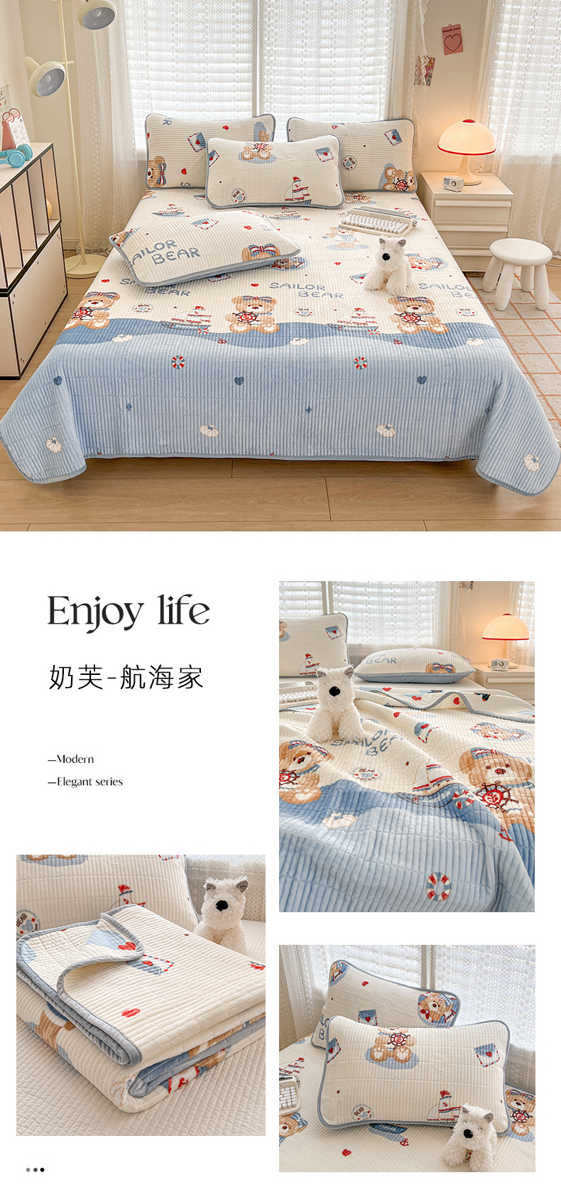 茉夕家纺 2024新款奶芙纯棉印花牛奶绒水洗床盖 奶芙-航海家