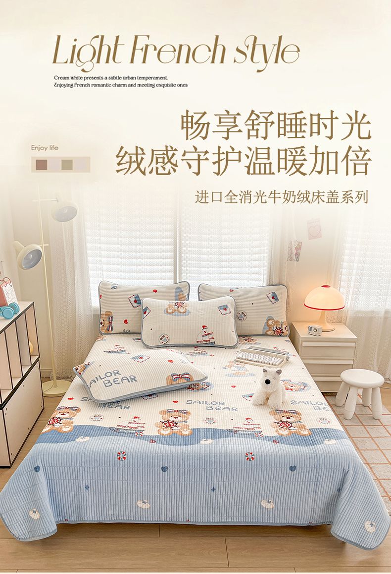 • 91家纺网 家纺一手货源 找家纺 茉夕家纺 2024新款奶芙纯棉印花牛奶绒水洗床盖 奶芙-航海家