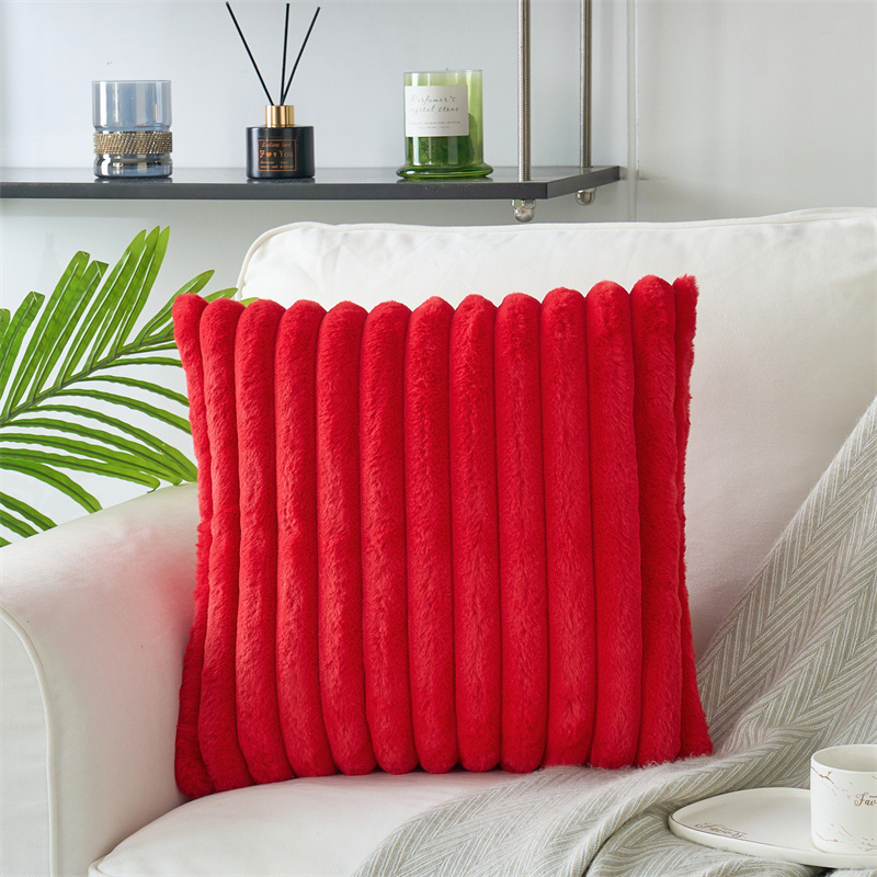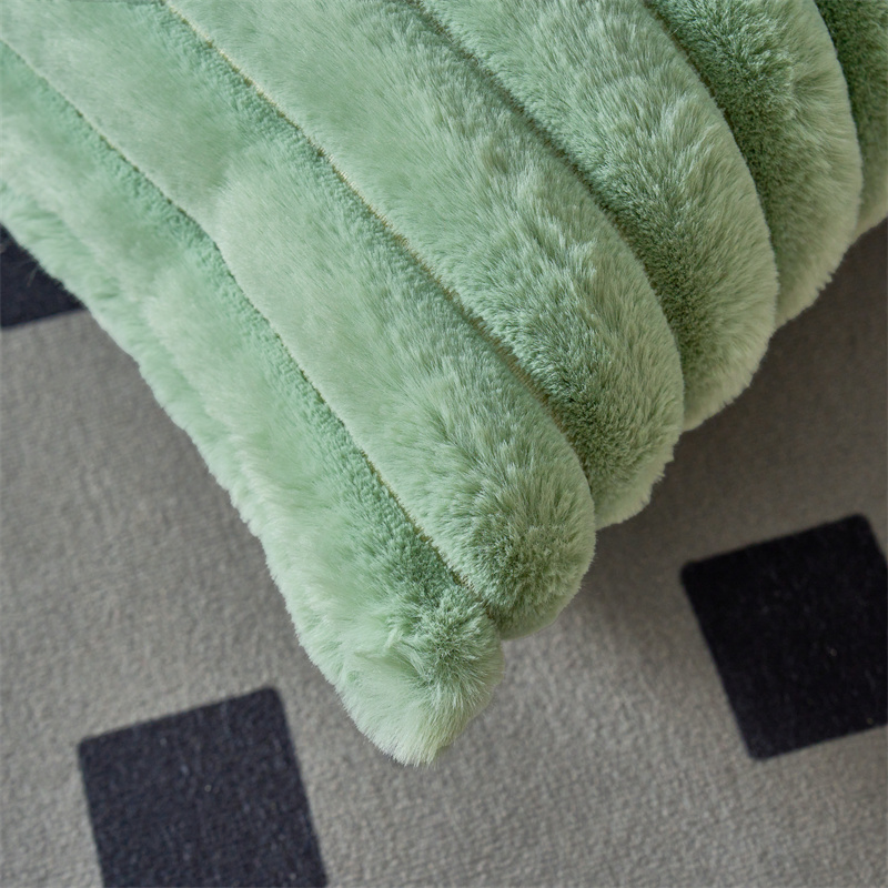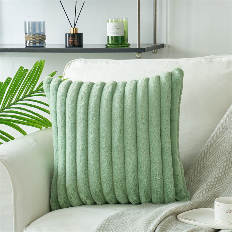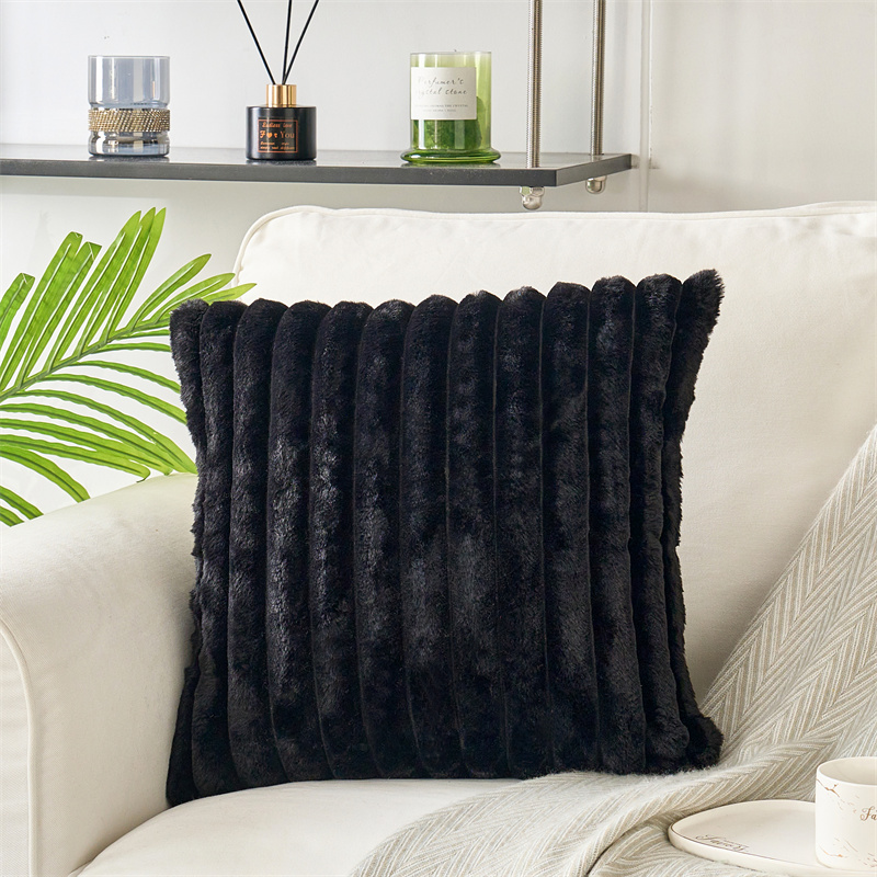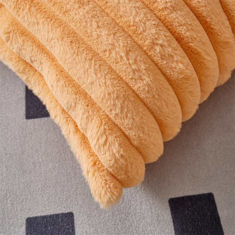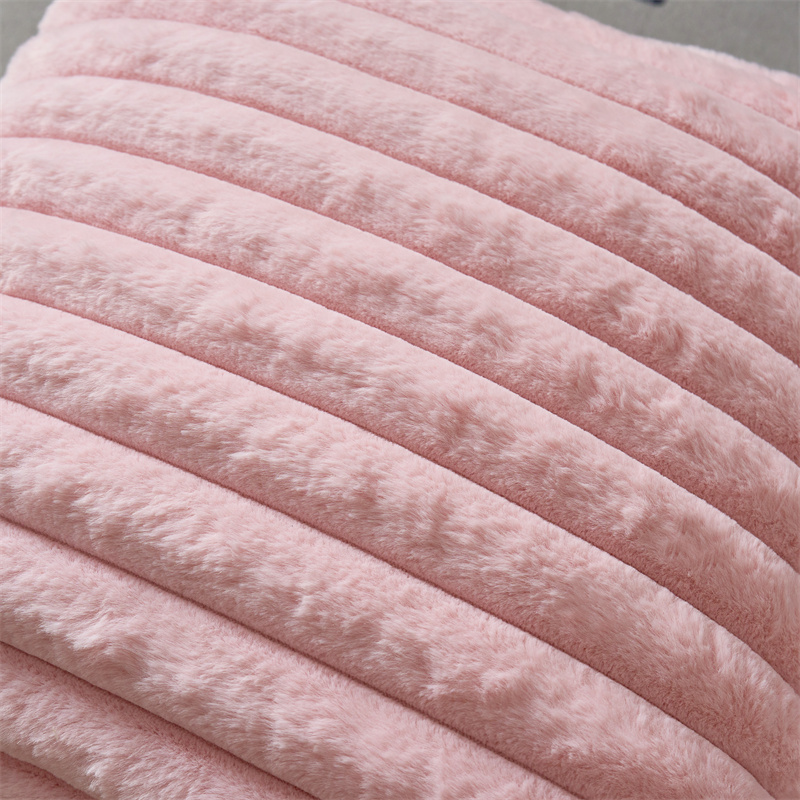 (总)品尚嘉 跨境亚马逊ins简约竖条纯色靠垫兔毛绒抽条抱枕套