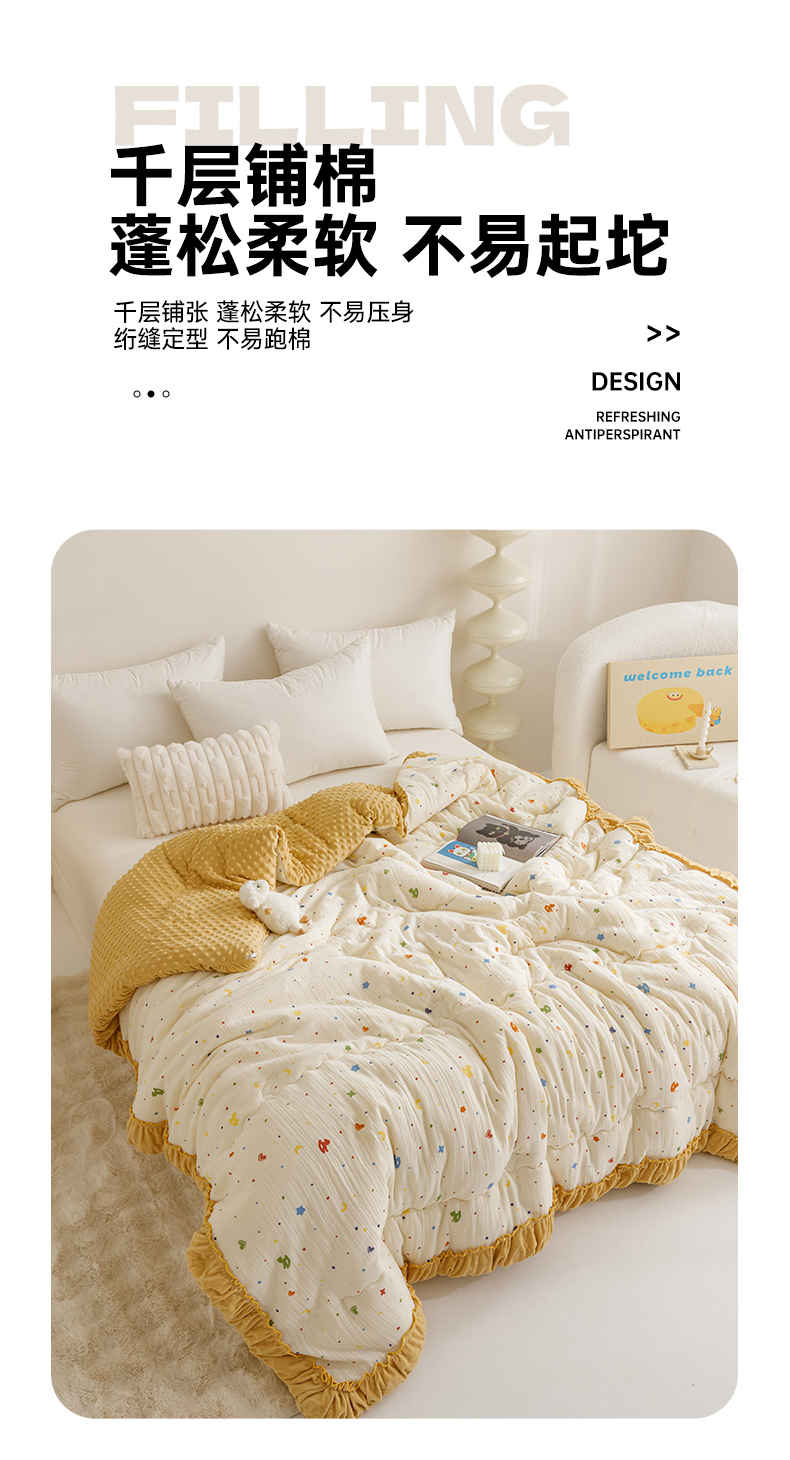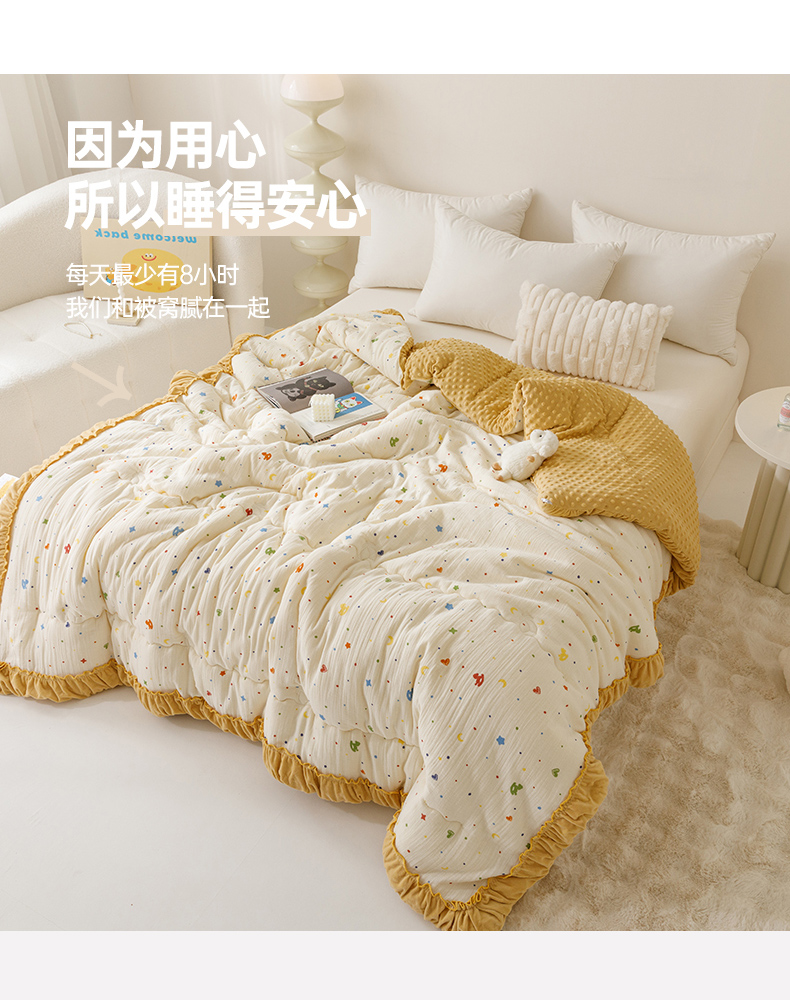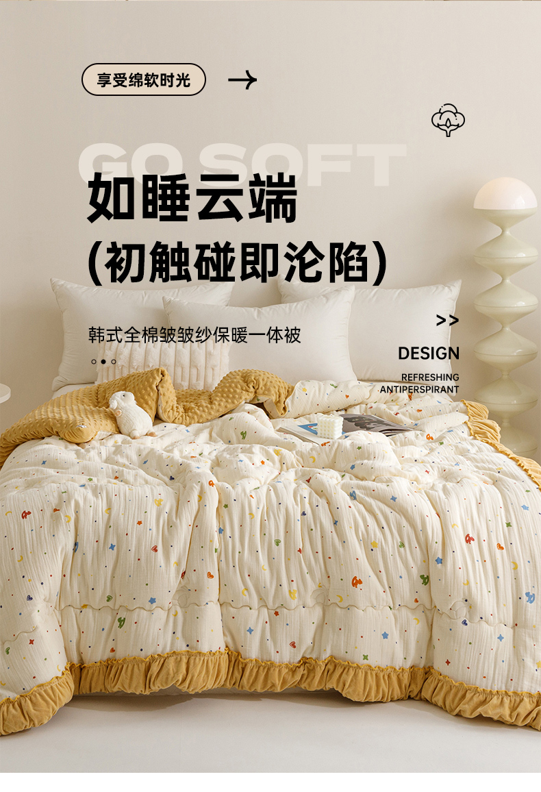 商品名称:(总)有货 2024新款韩版全棉双层皱皱纱豆豆大豆被被子被芯
