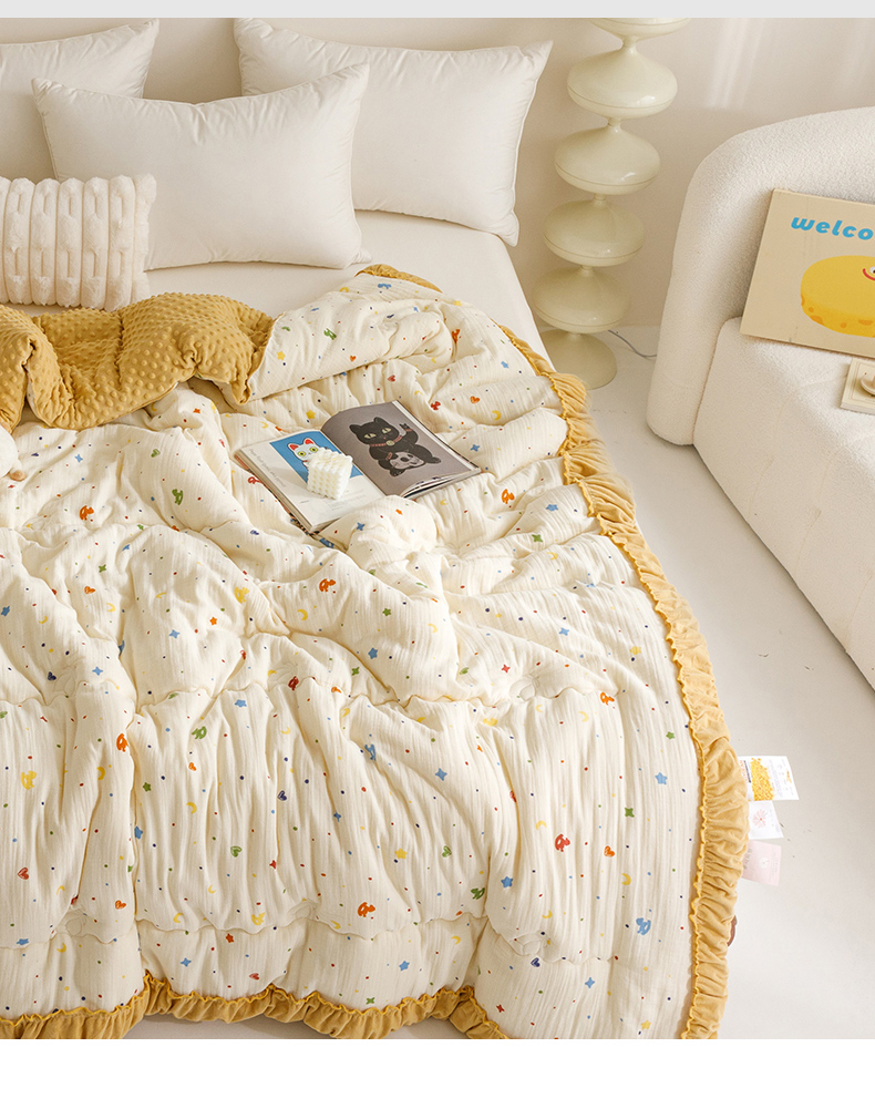 (总)有货 2024新款韩版全棉双层皱皱纱豆豆大豆被被子被芯