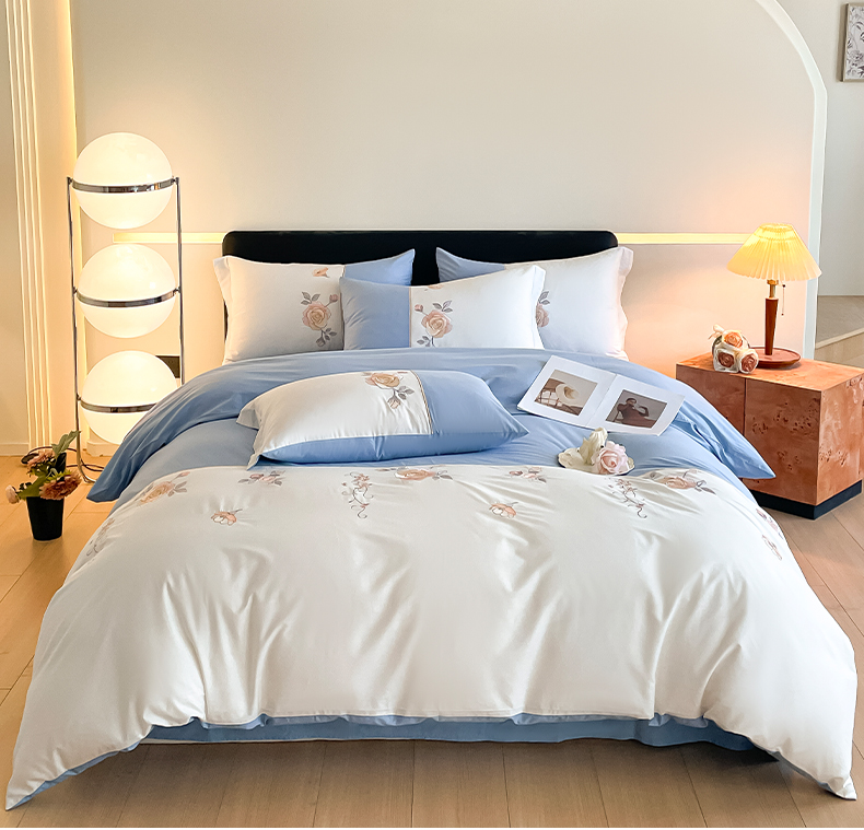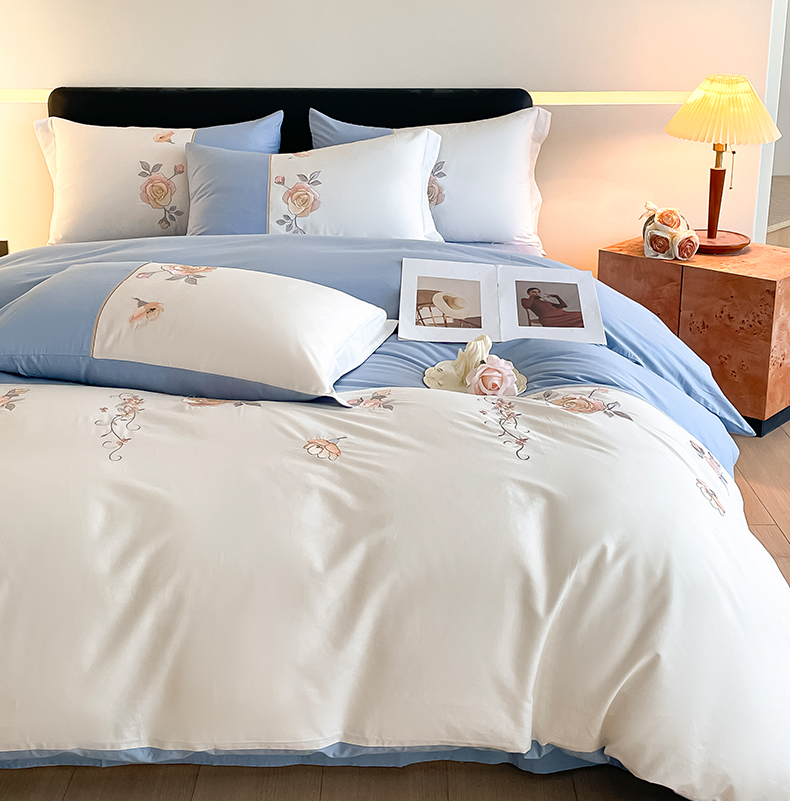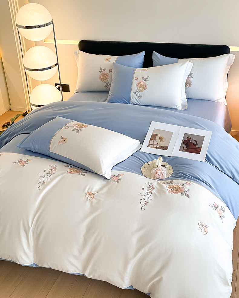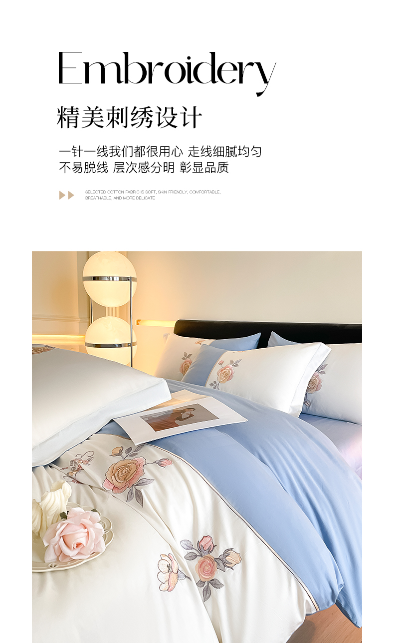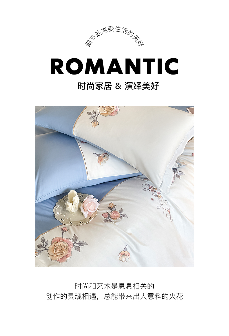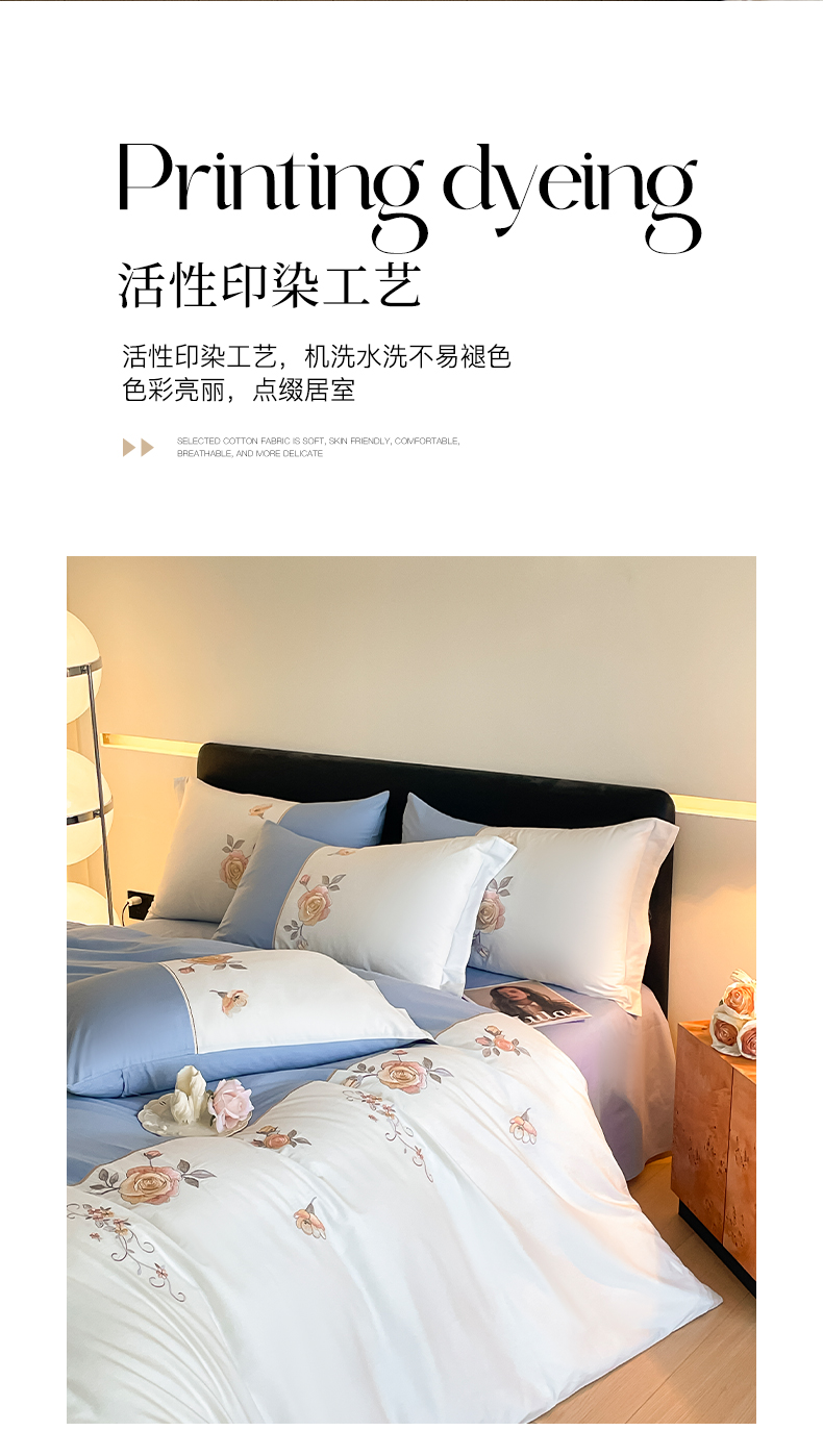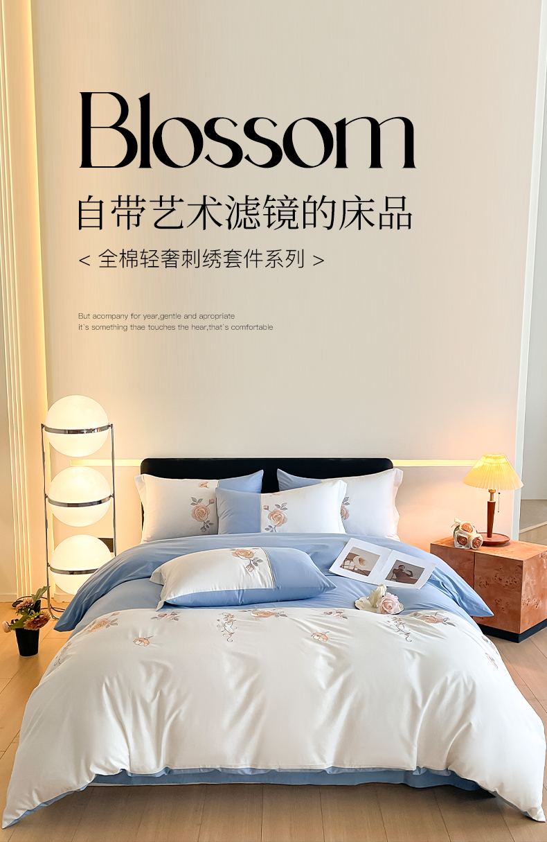 商品名称:理想家家纺 2024新款全棉轻奢刺绣四件套-芳华 芳华-蓝