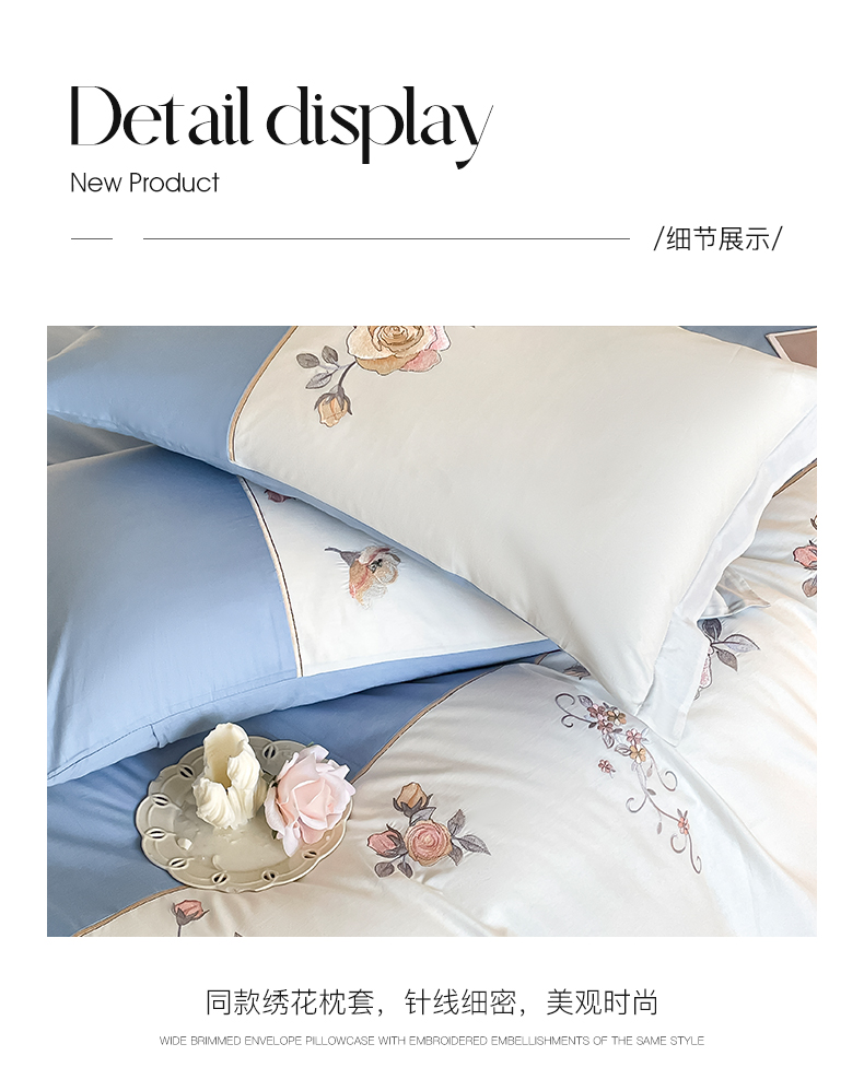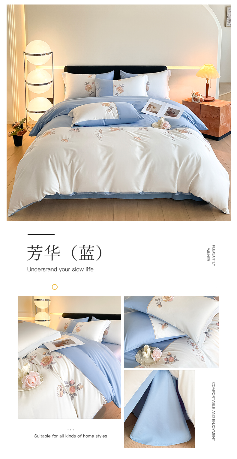 理想家家纺 2024新款全棉轻奢刺绣四件套-芳华 芳华-蓝