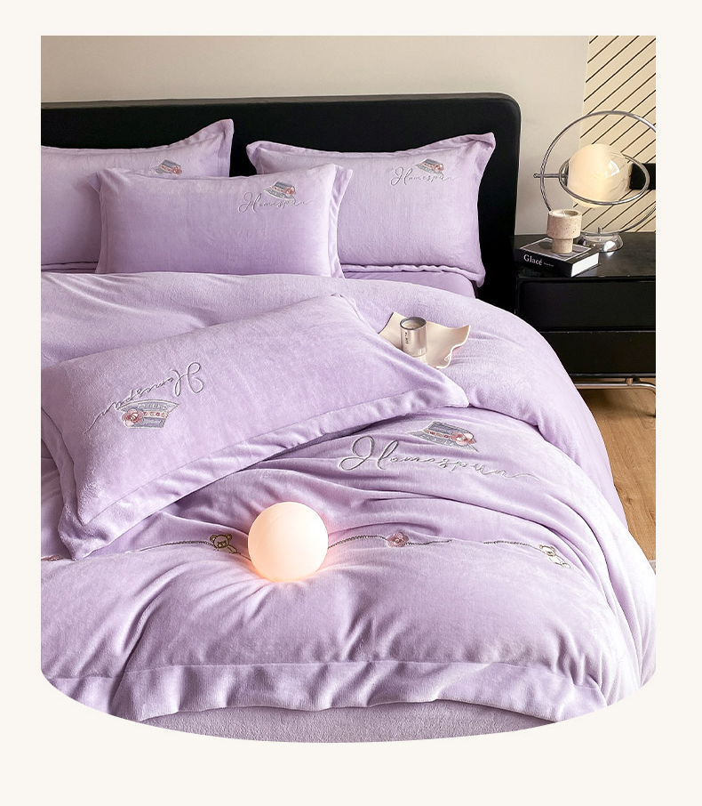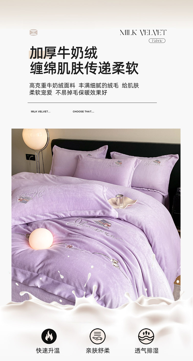 丝印良品 2024新款秋冬加厚公主日记牛奶绒四件套风信紫