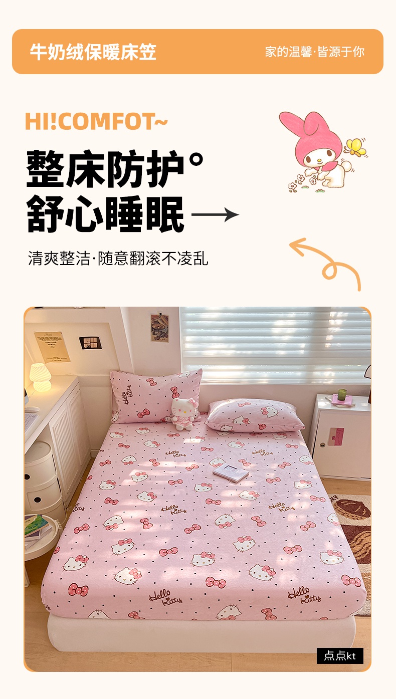 (总)2024新款厚实保暖牛奶绒三丽鸥单品床笠床单