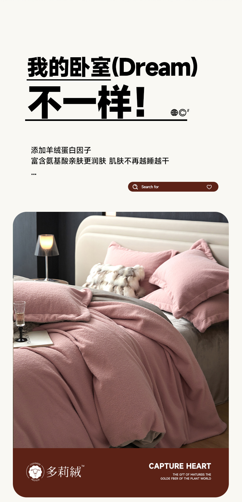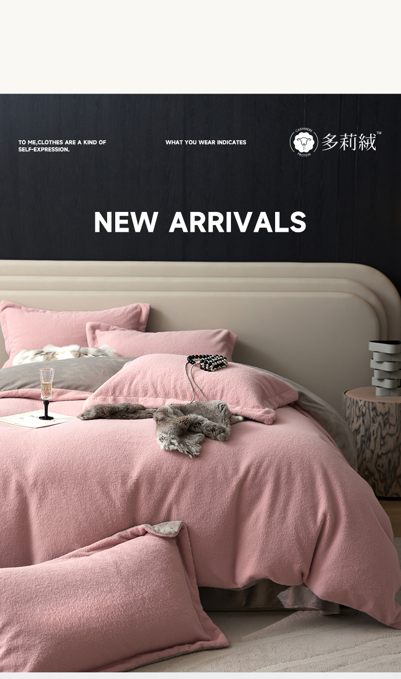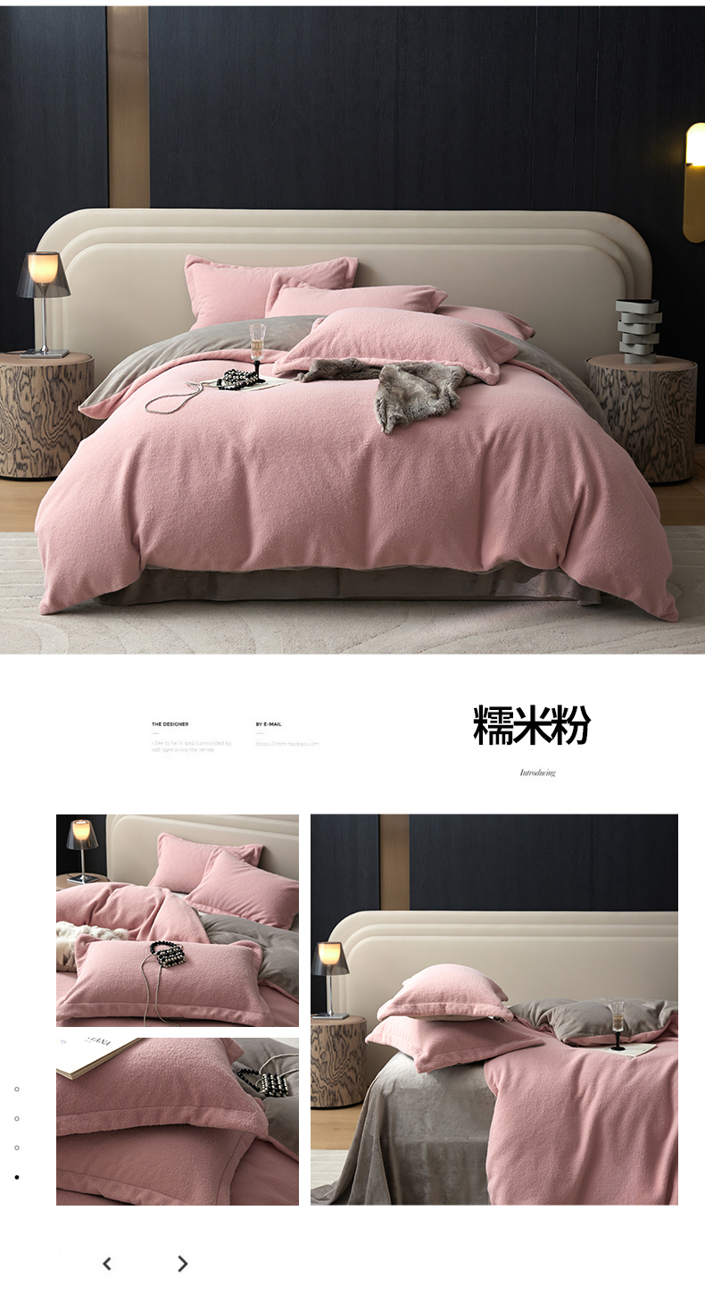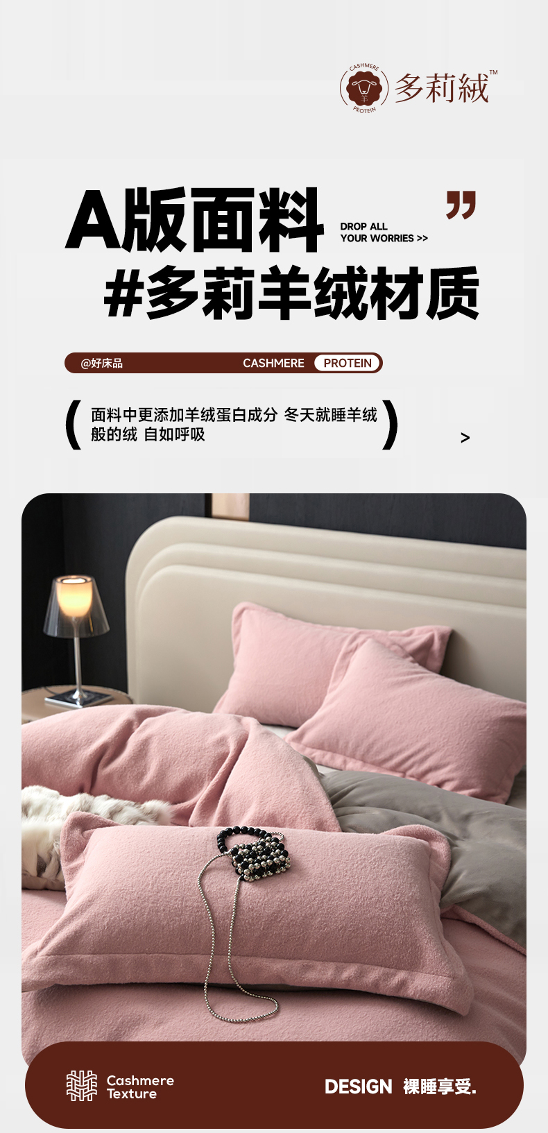 金奇达家纺 2025秋冬保暖加厚绒类四件套多莉羊绒-德尔菲 糯米粉