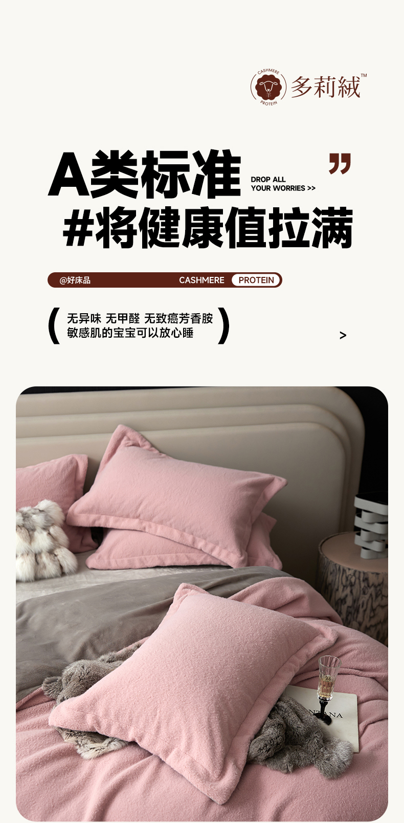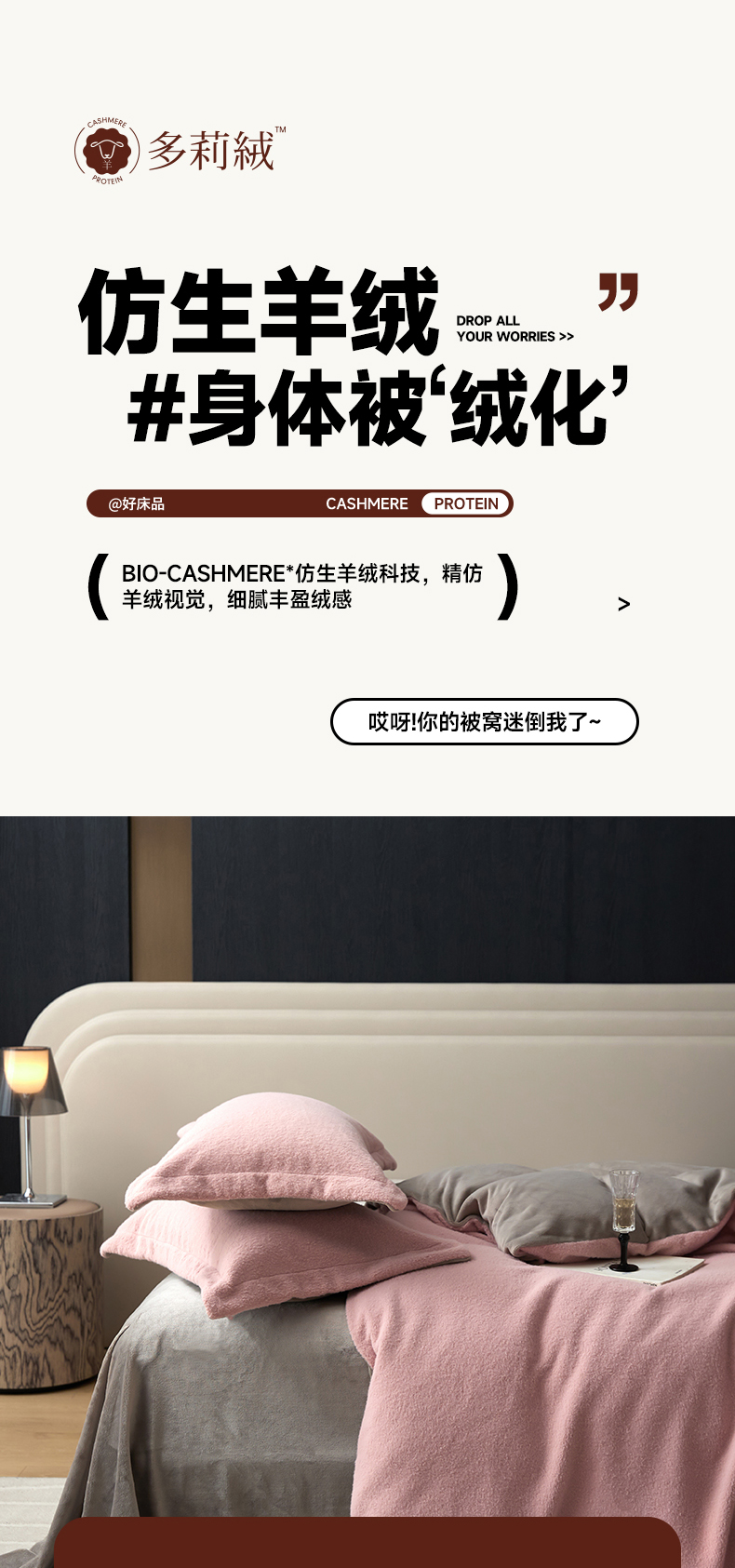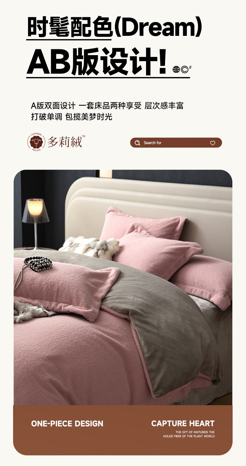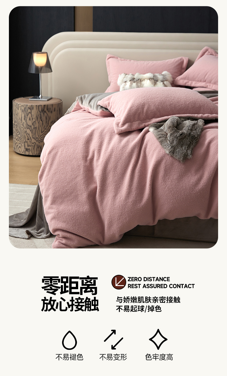 商品名称:金奇达家纺 2025秋冬保暖加厚绒类四件套多莉羊绒-德尔菲 糯米粉