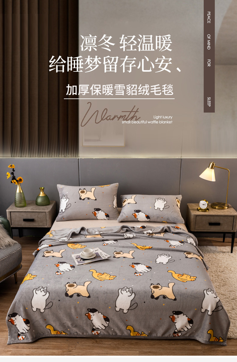 当前位置: 91家纺网 > 商品网购 > 毛毯休闲毯绒毯 > 毛毯 > 慕尚家纺 2025新款雪貂绒高克重300g毛毯家用毛毯 小猫咪