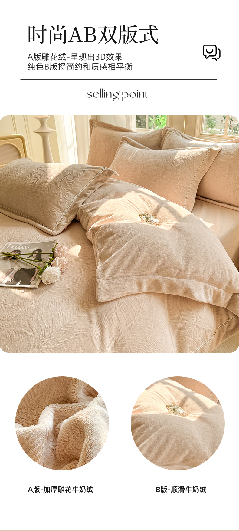 (总)艾唯希家纺 2025新款小兔毛全消光牛奶绒工艺四件套-绒樱桃系列,绒樱桃-粉,绒樱桃-驼