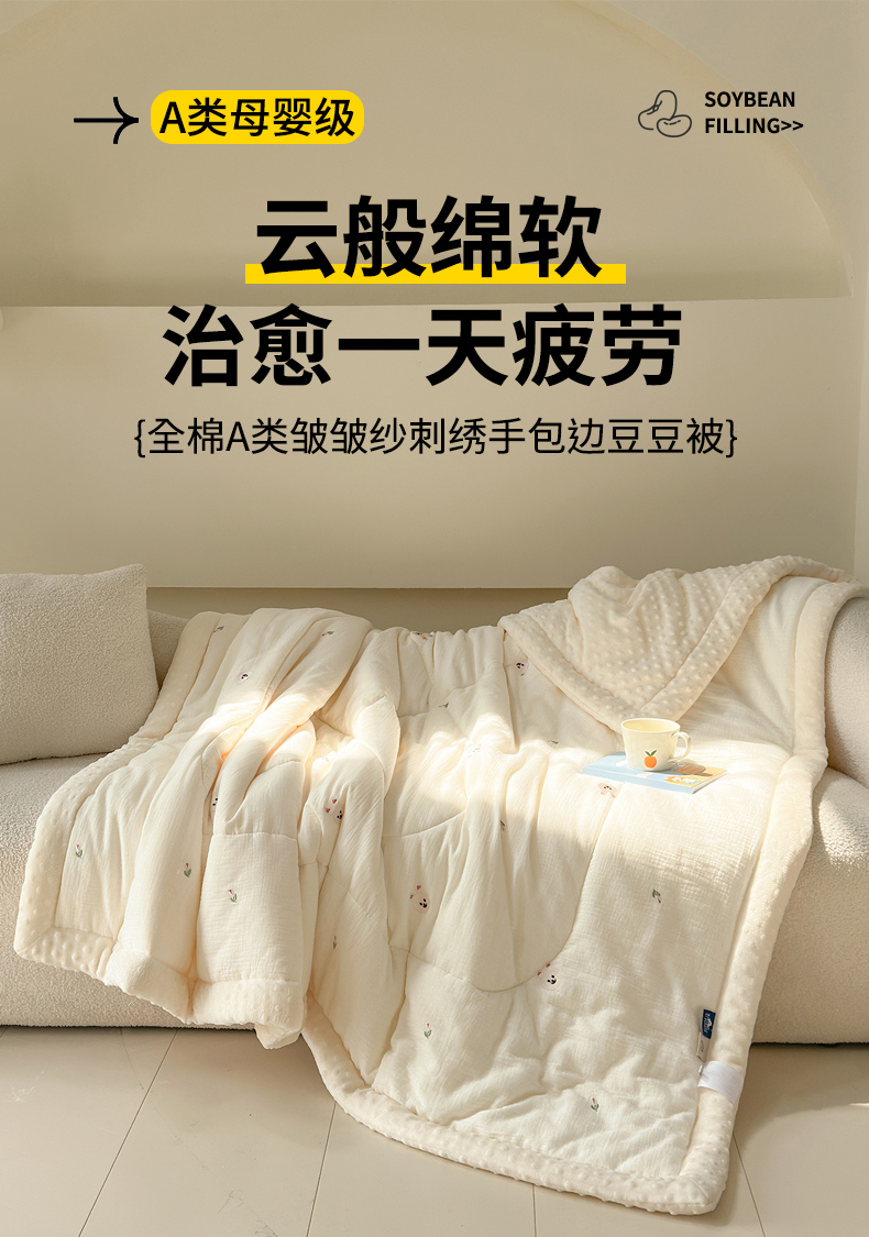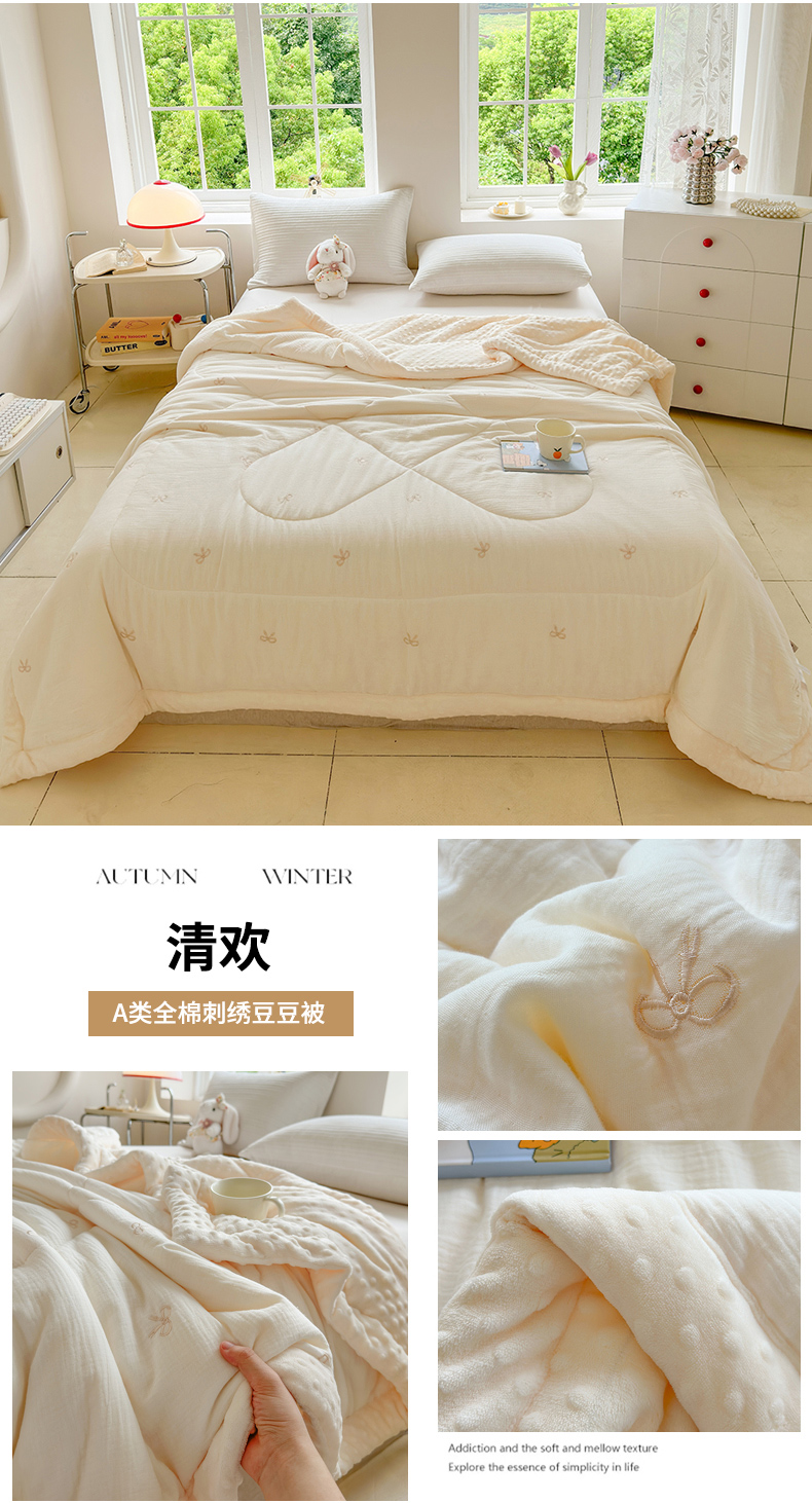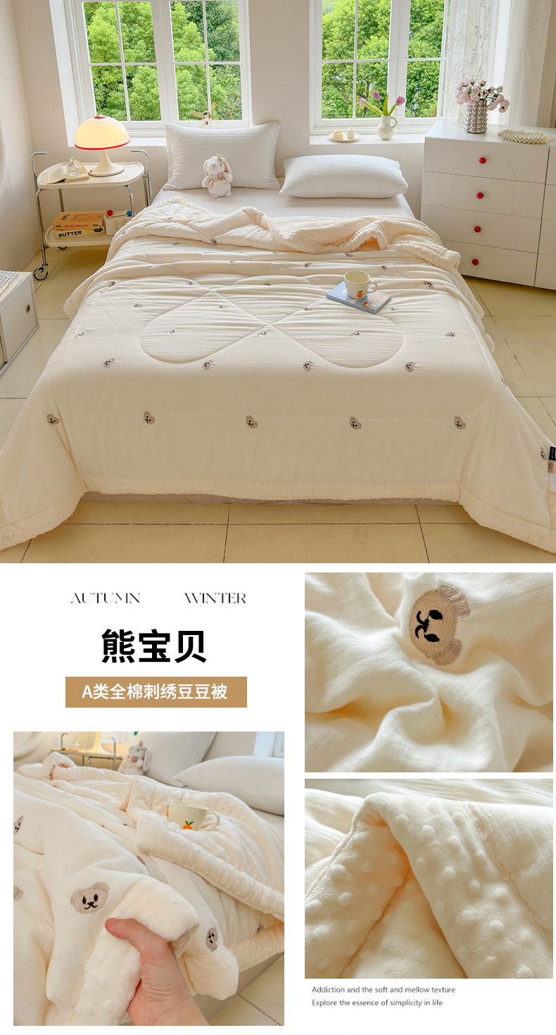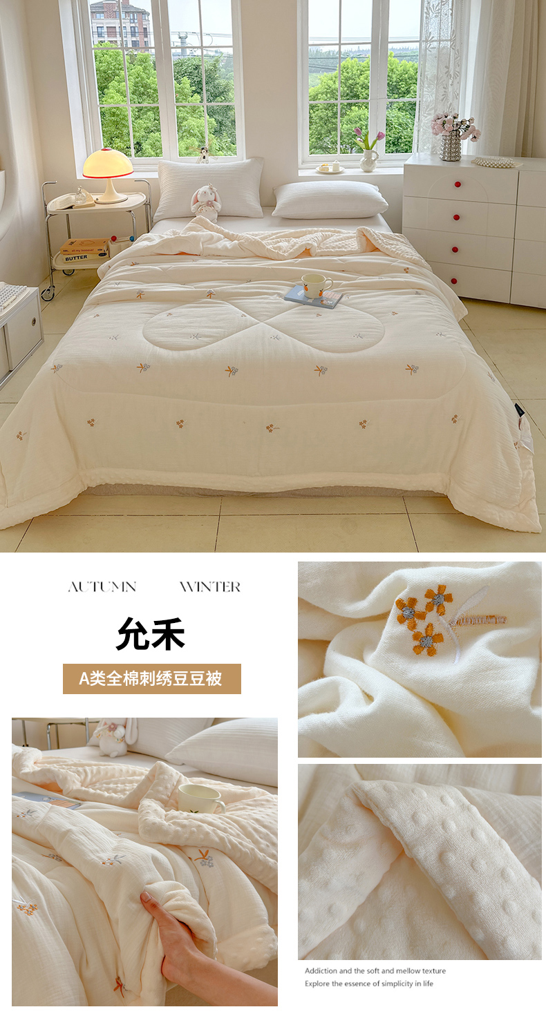 商品名称:(总)木楌家居 2025新款全棉A类皱皱纱刺绣手包边豆豆被