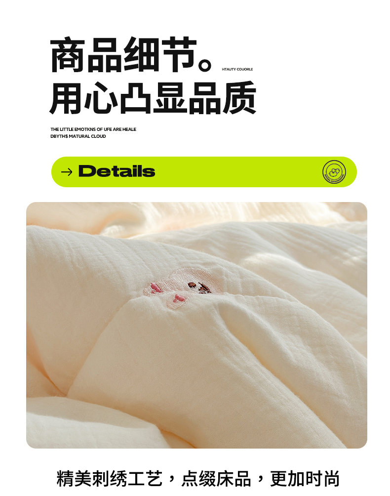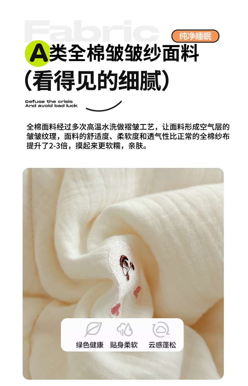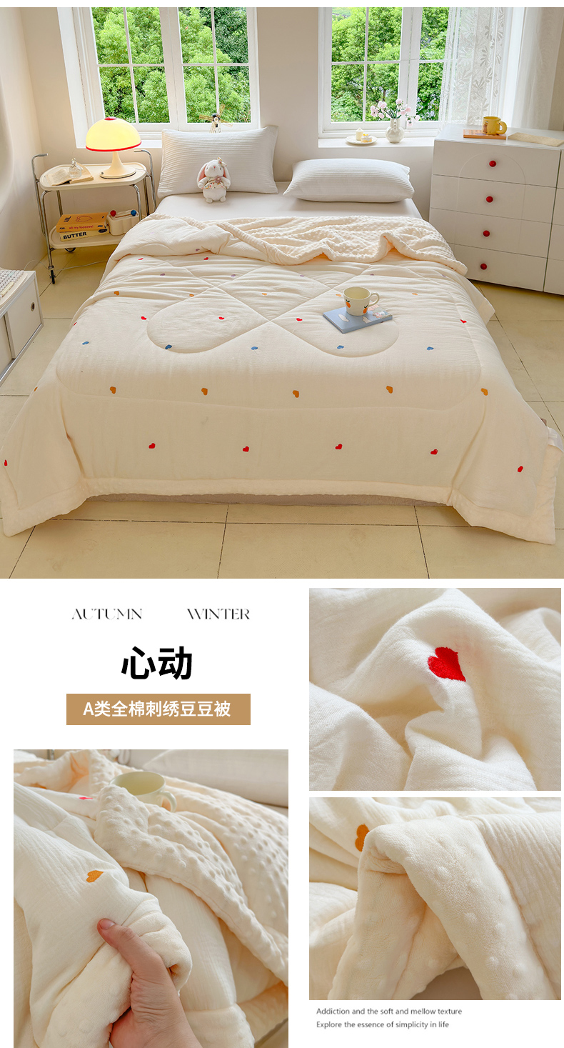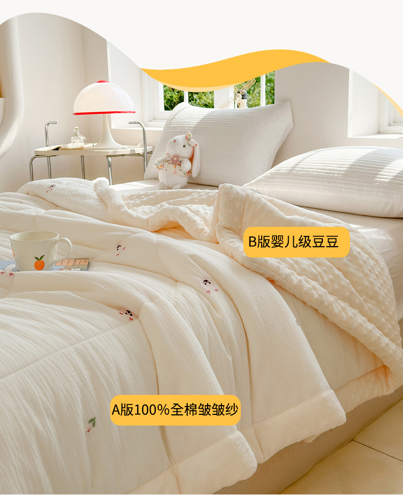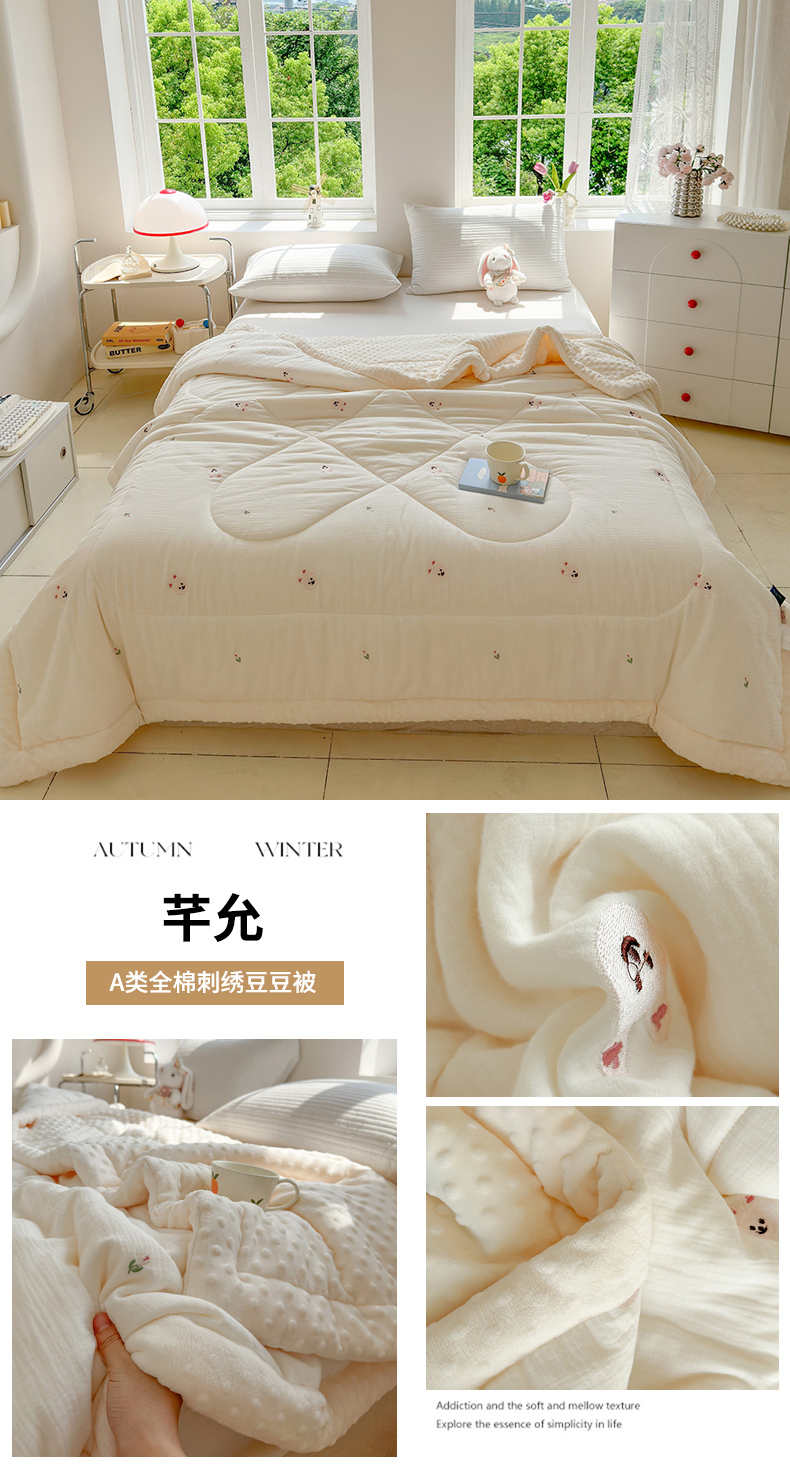 商品名称:(总)木楌家居 2025新款全棉A类皱皱纱刺绣手包边豆豆被