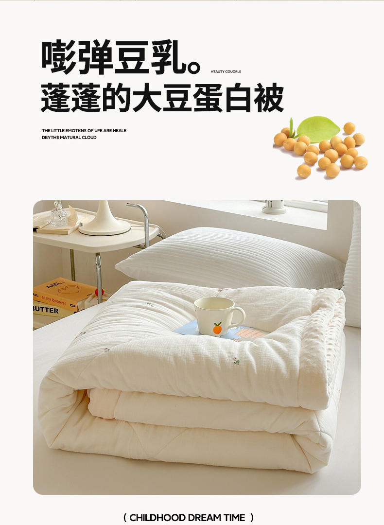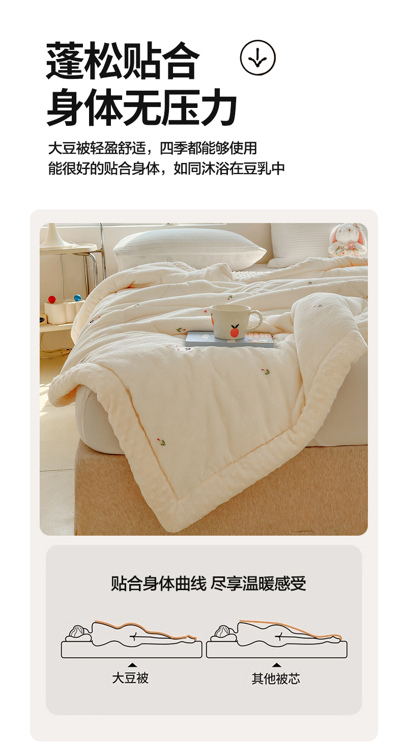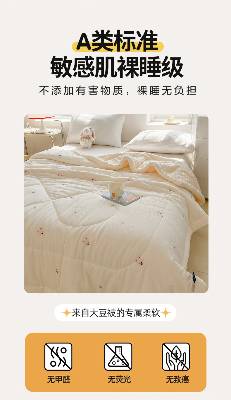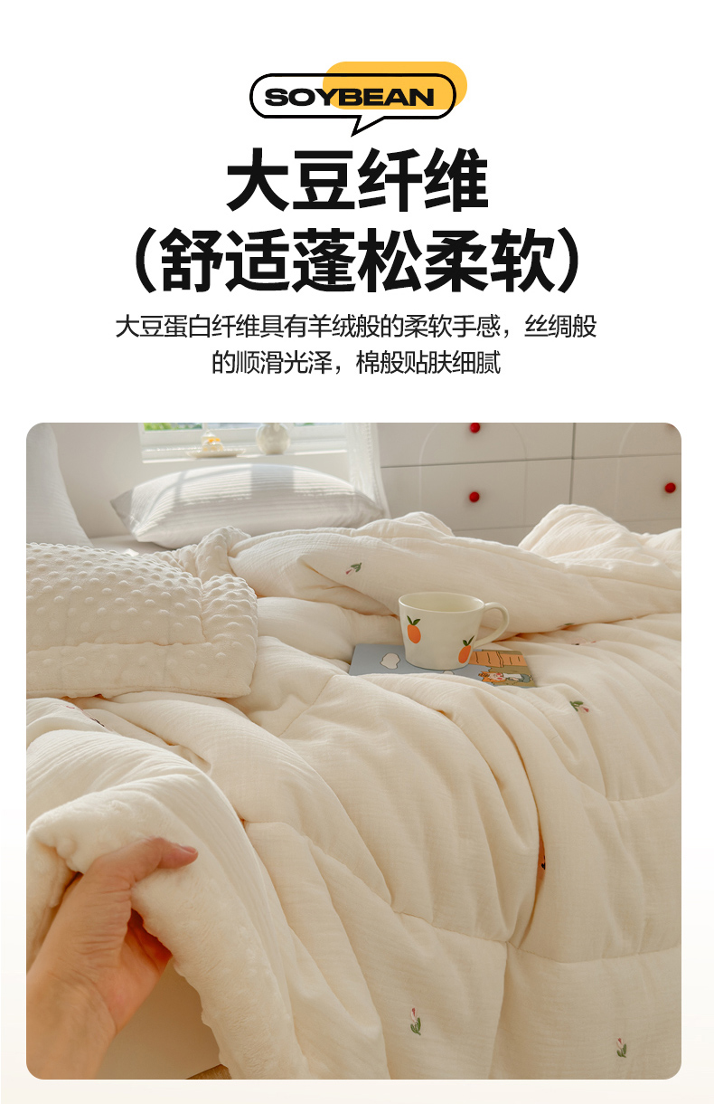 商品名称:(总)木楌家居 2025新款全棉A类皱皱纱刺绣手包边豆豆被