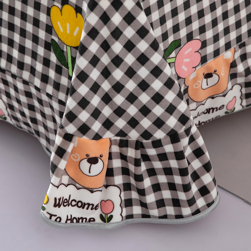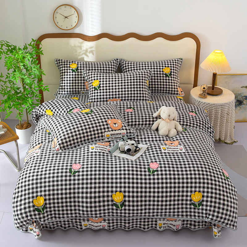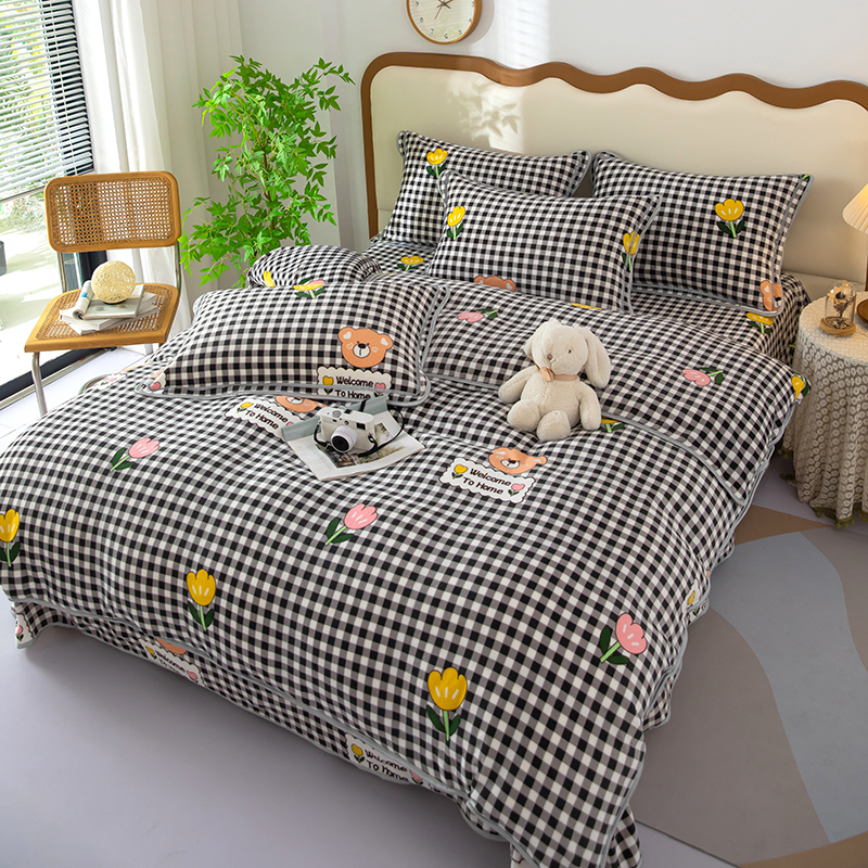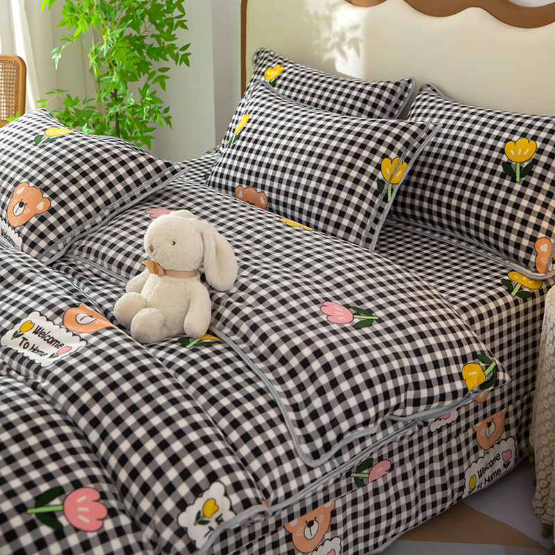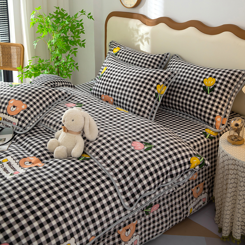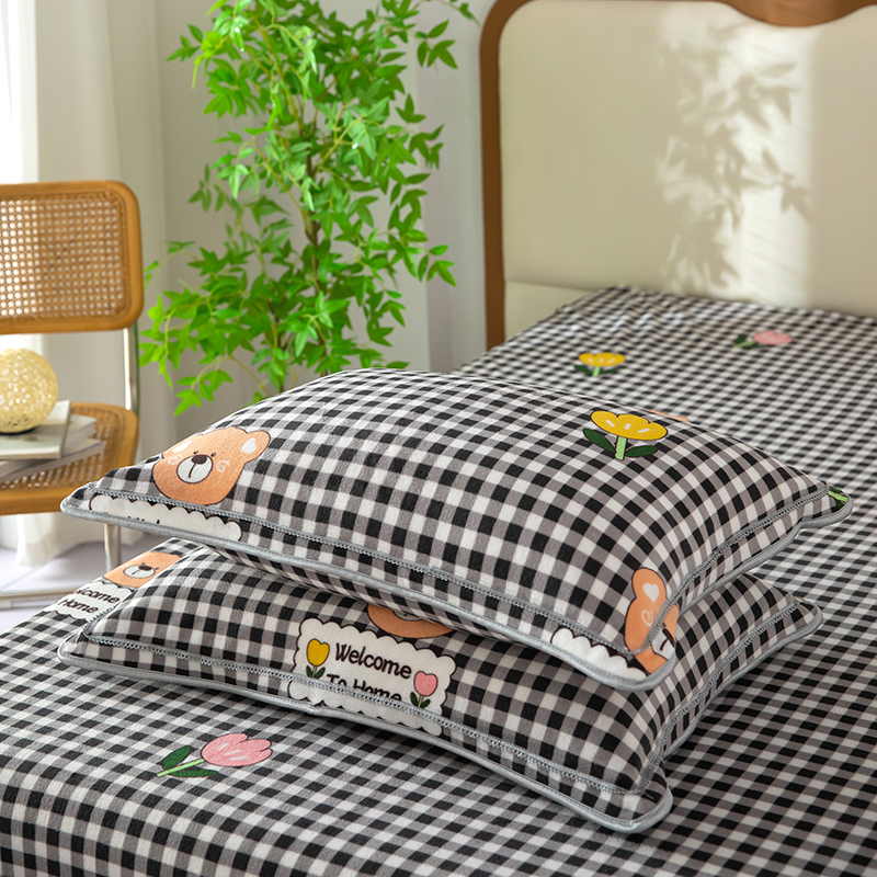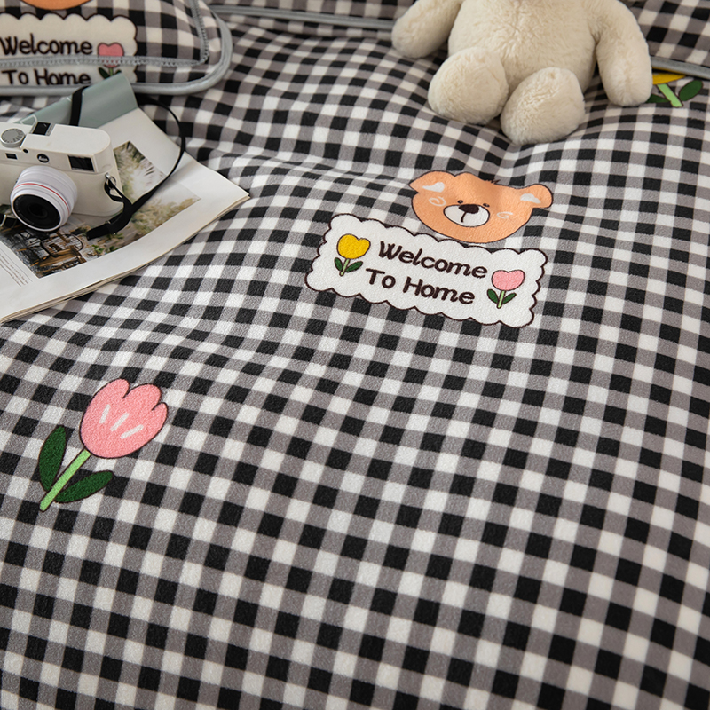 雨萝家纺 2024新款亲肤舒适牛奶绒四件套 格子熊