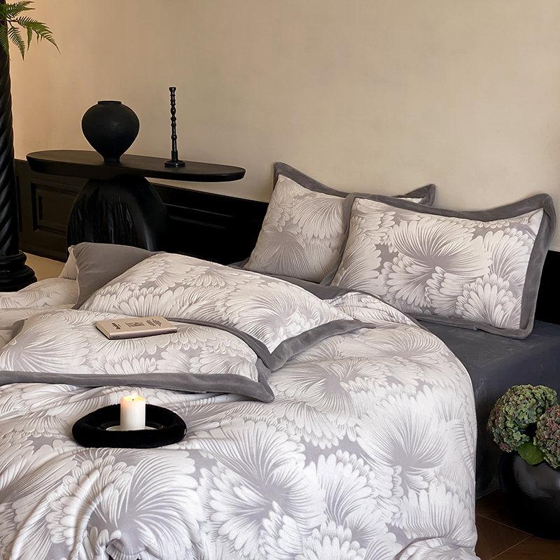 梦享生活家居 2024新款加厚保暖牛奶绒四件套 烟花-灰