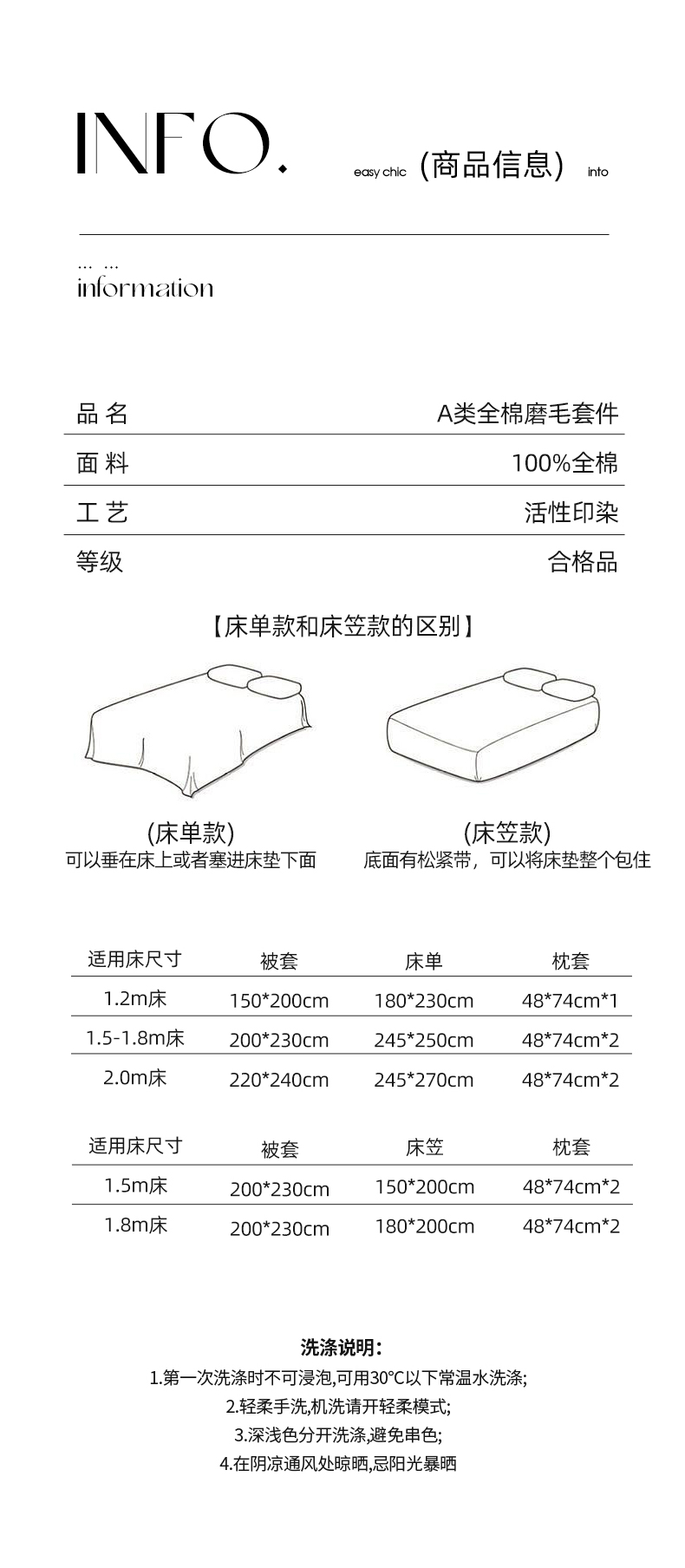 1.5m床笠款四件套 被套200*230 | ¥90.00 |