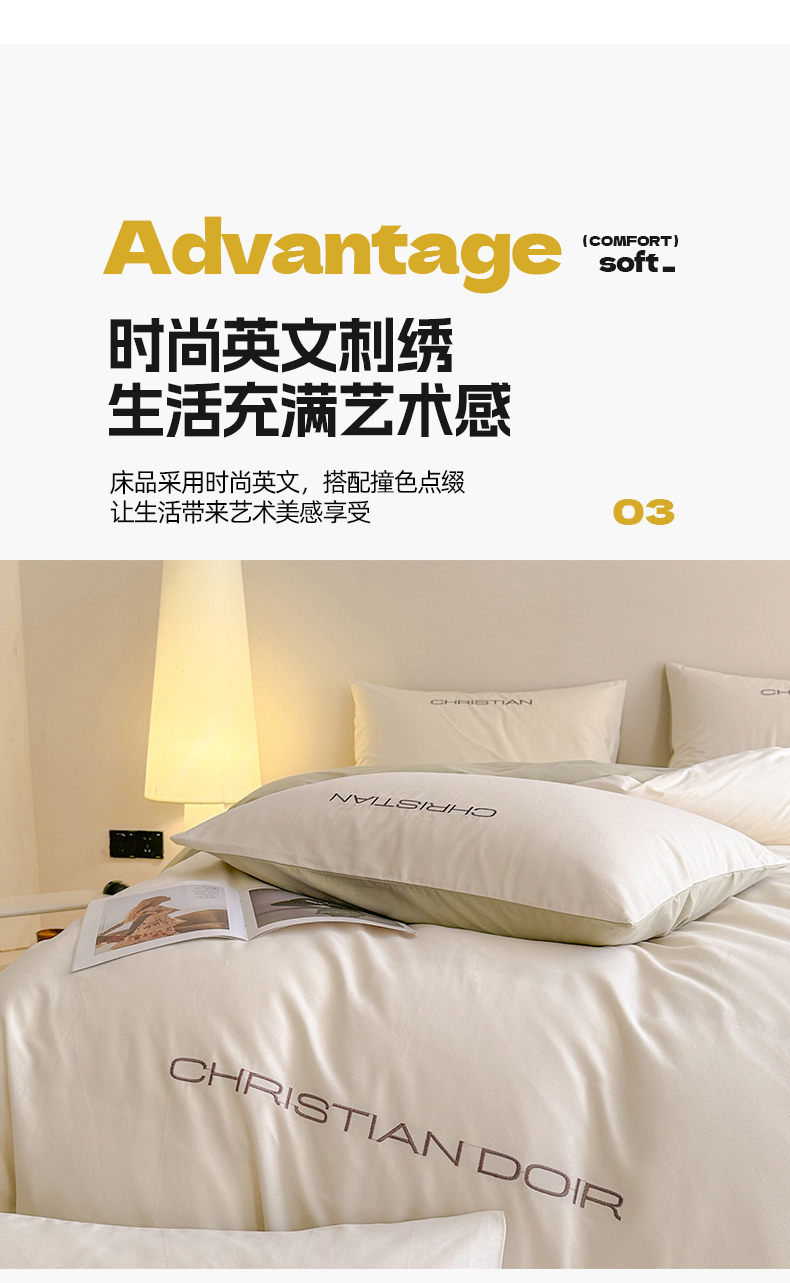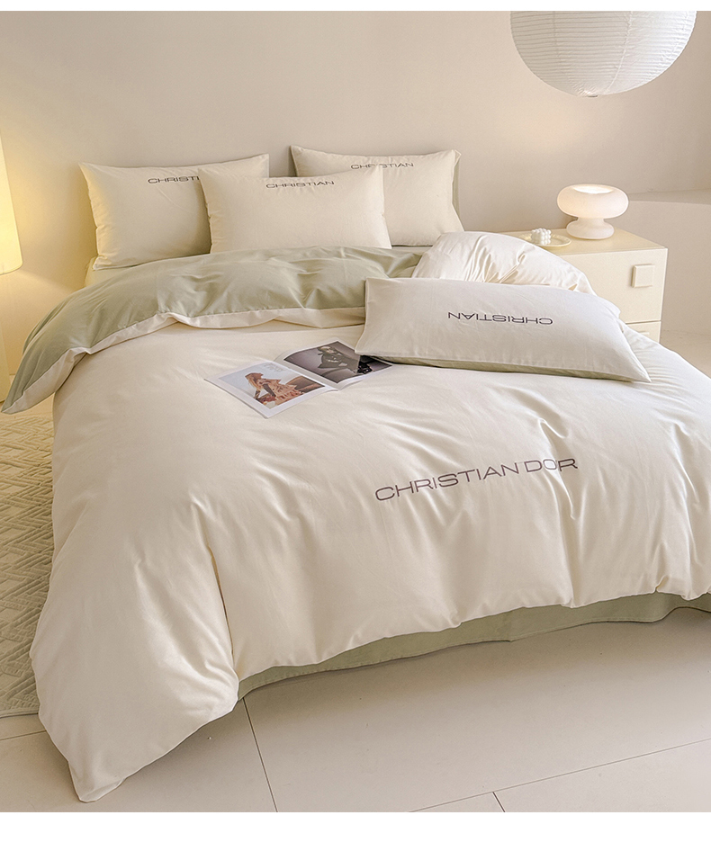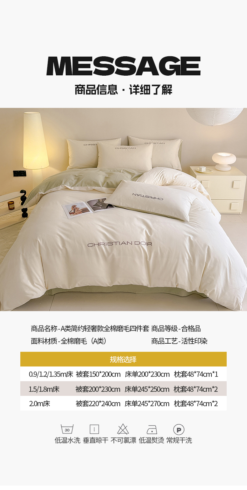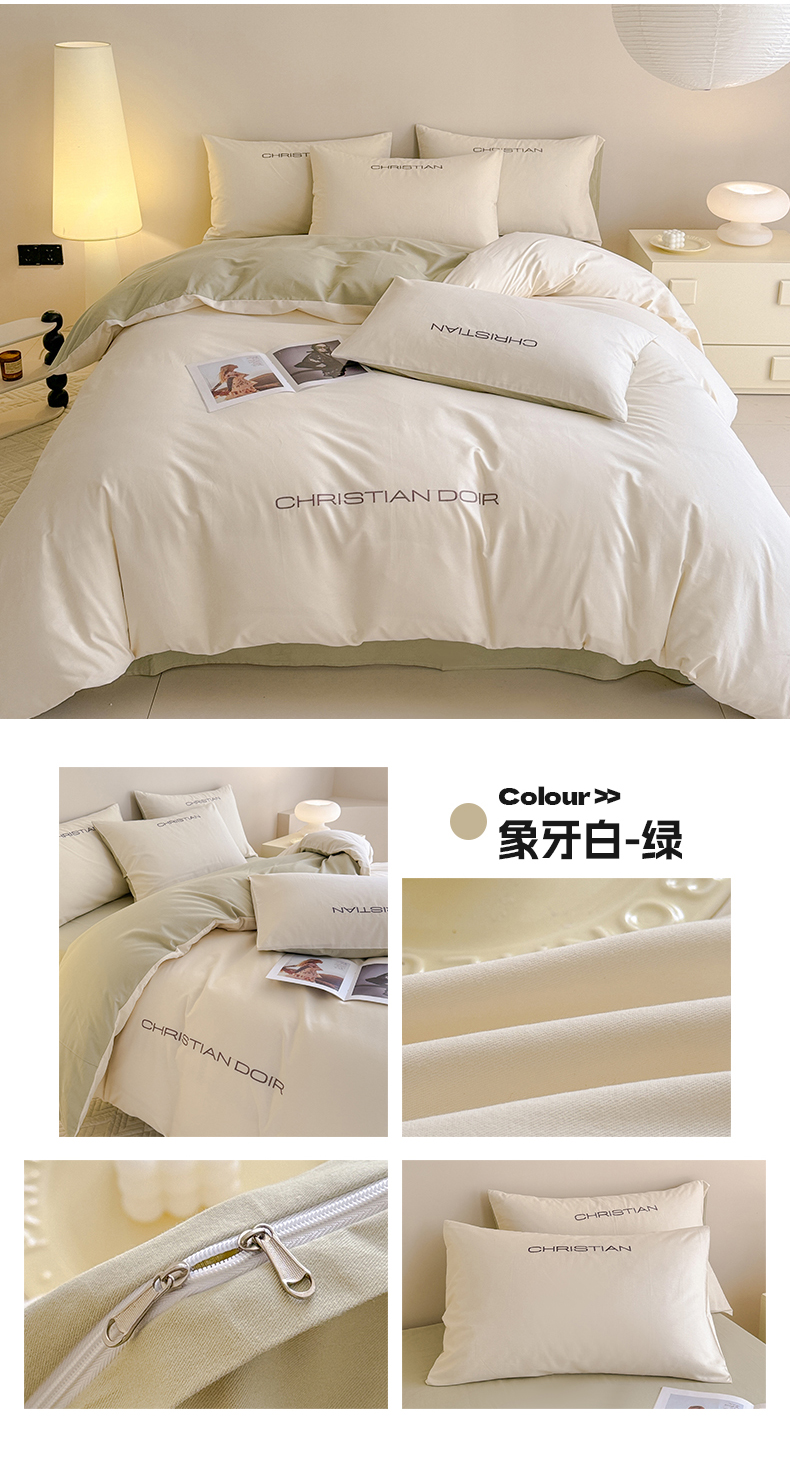 当前位置: 91家纺网 > 商品网购 > 床品套件 > 四件套 > 普通磨毛四件套 > 典曼家纺 2024新款A类简约轻奢款磨毛绣花四件套 象牙白-绿