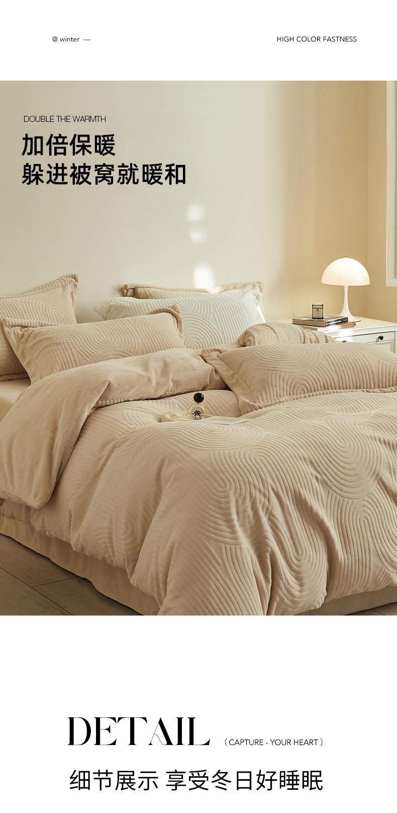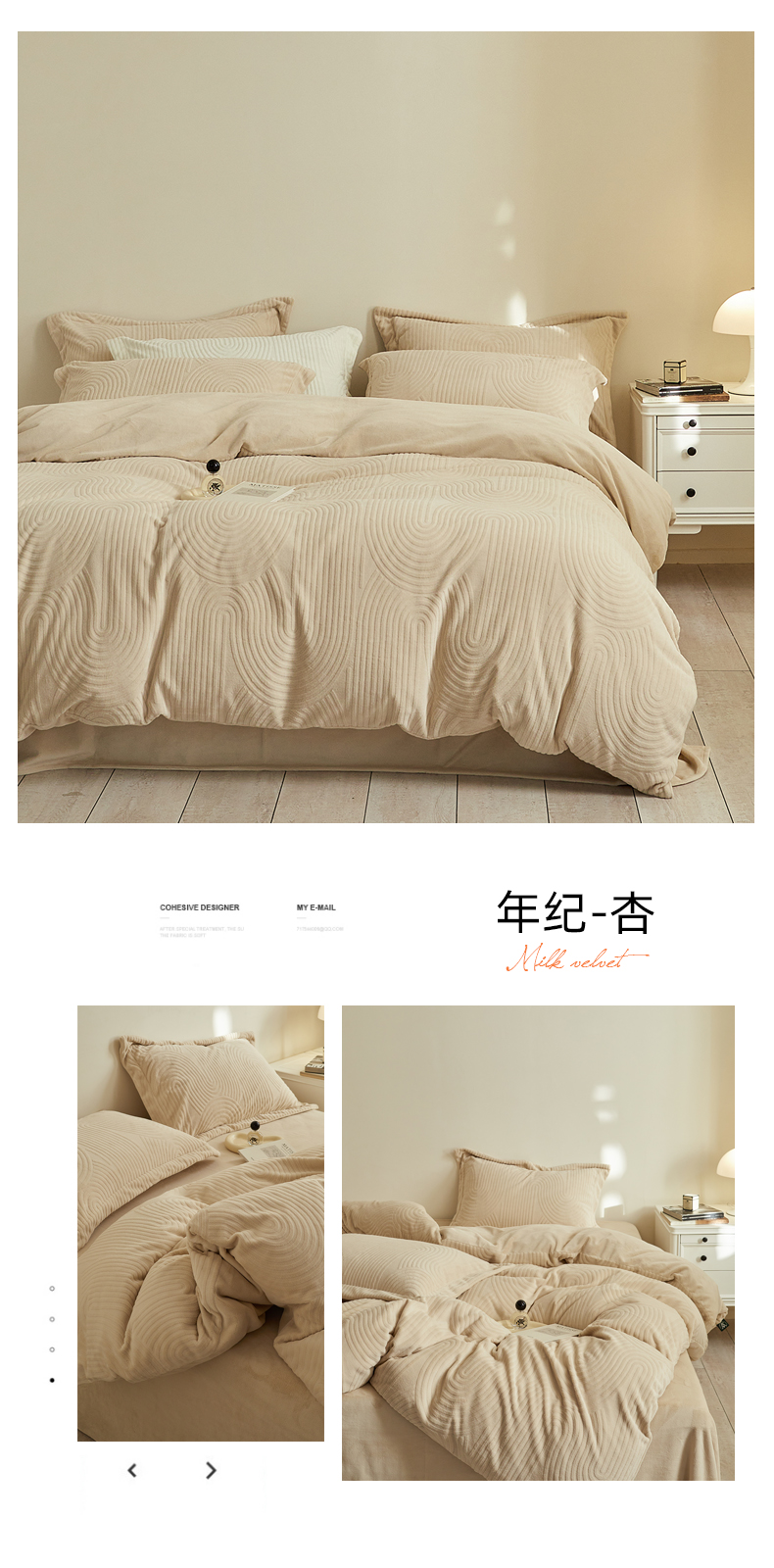 安莱生活 2024新款牛奶绒提花烂花年纪系列四件套-风格二 年纪-杏