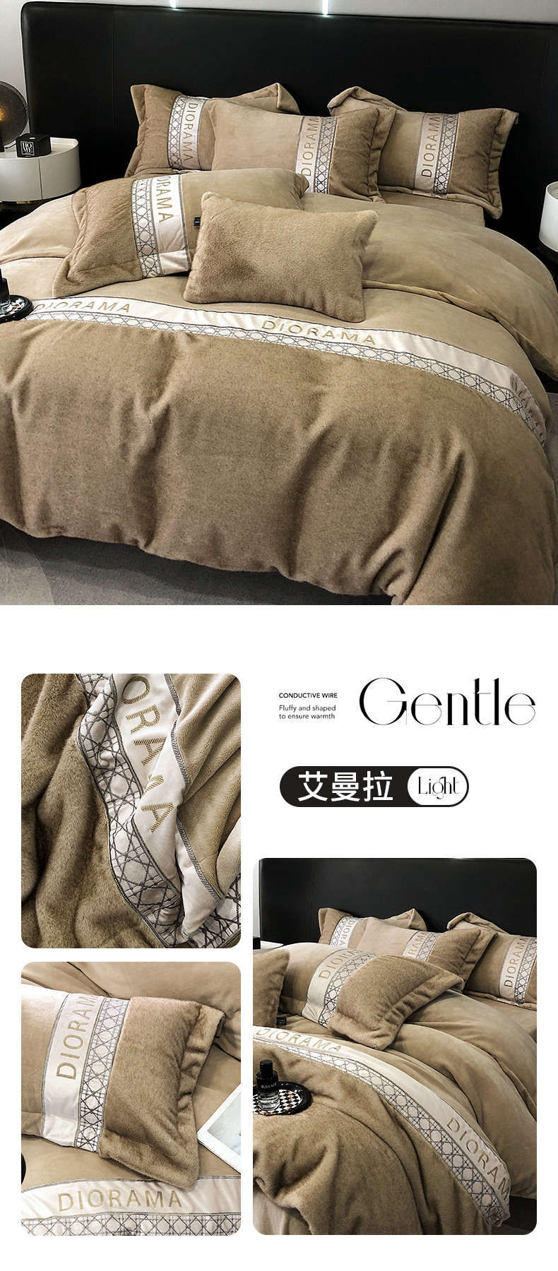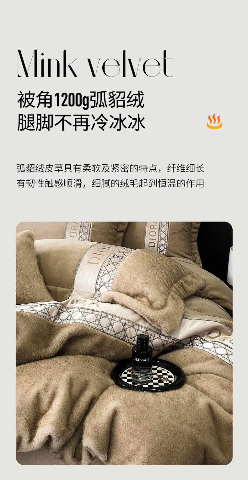 商品名称:安莱生活 2024新款弧貂绒皮草四件套 艾曼拉