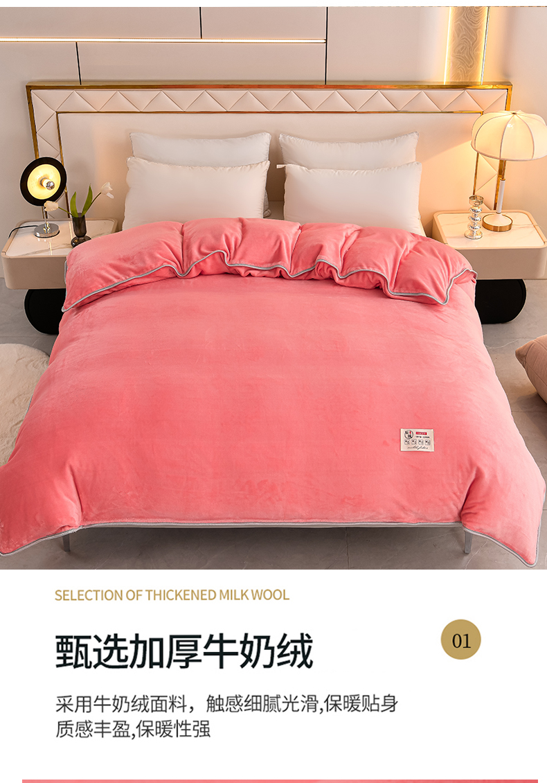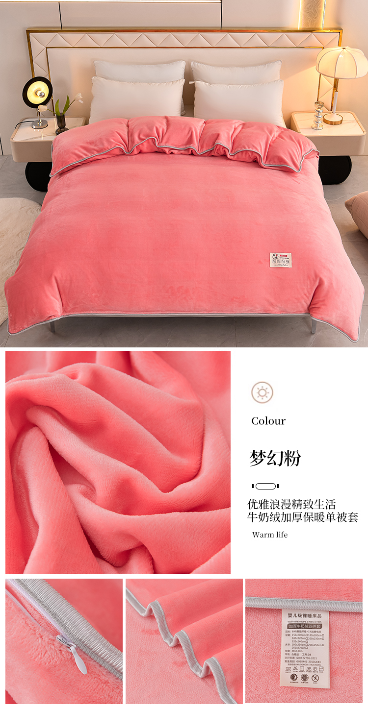 商品名称:绒品荟家纺 2025新款加厚牛奶绒单被套金貂绒法莱绒冬季法兰绒高克重被罩 梦幻粉