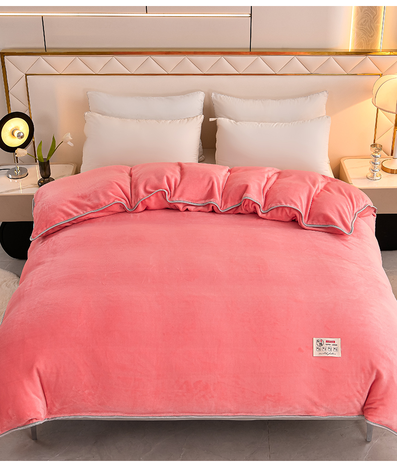 绒品荟家纺 2025新款加厚牛奶绒单被套金貂绒法莱绒冬季法兰绒高克重被罩 梦幻粉