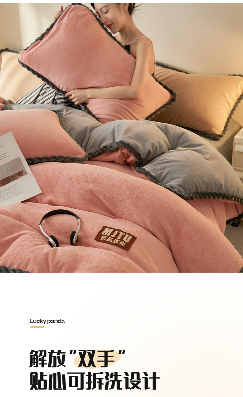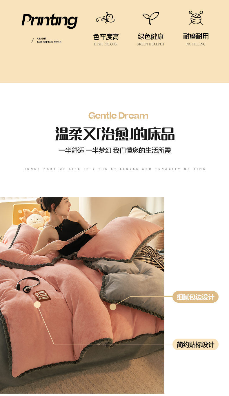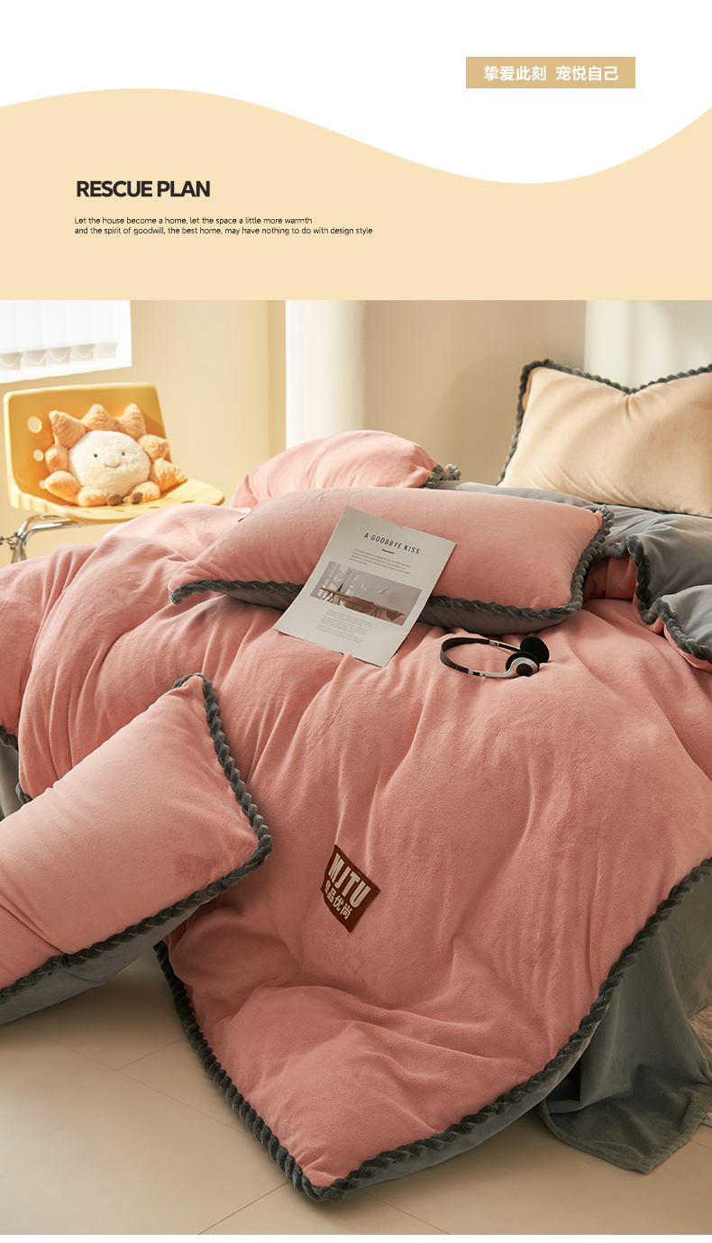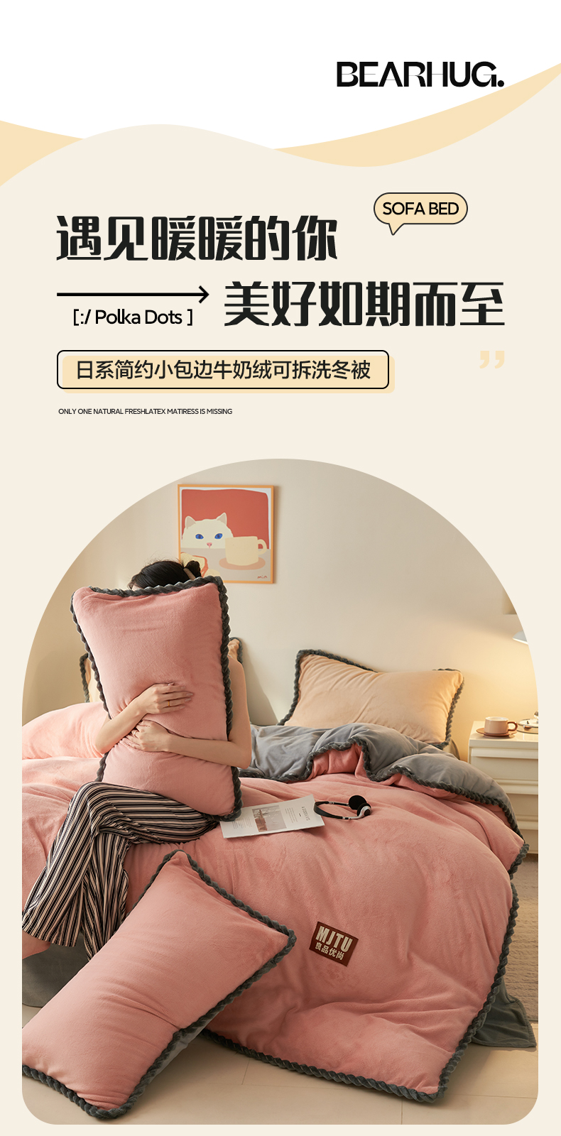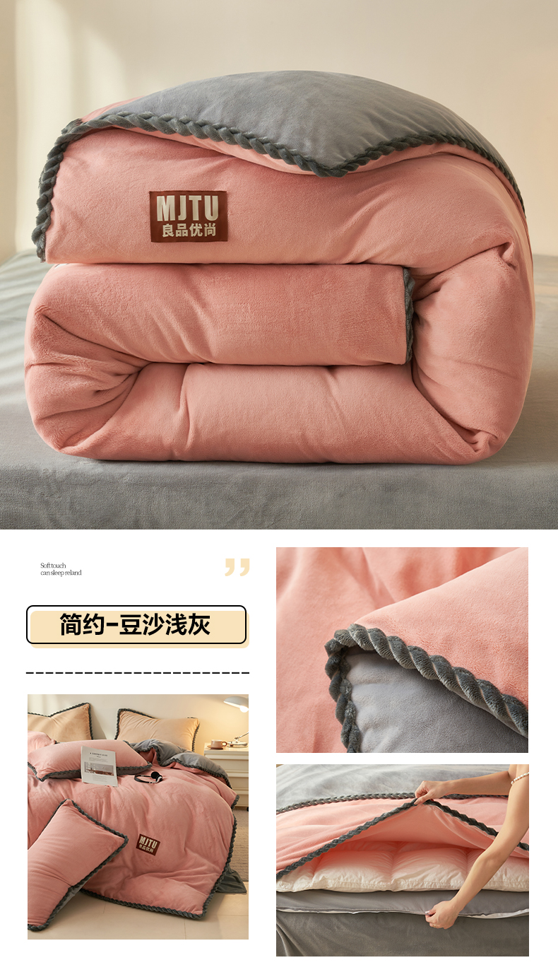 • 91家纺网 家纺一手货源 找家纺 2024新款日系简约小包边牛奶绒可拆洗冬被 被子被芯 简约-豆沙浅灰