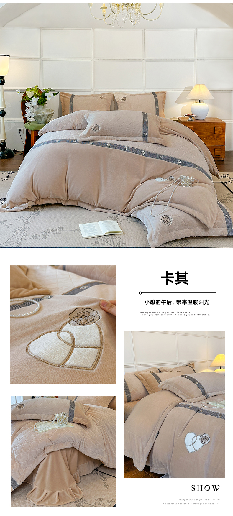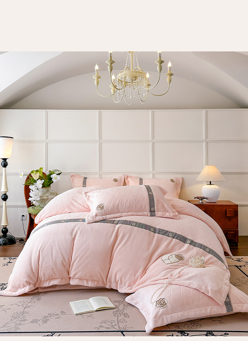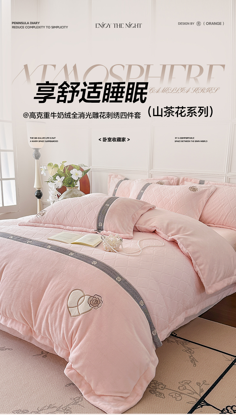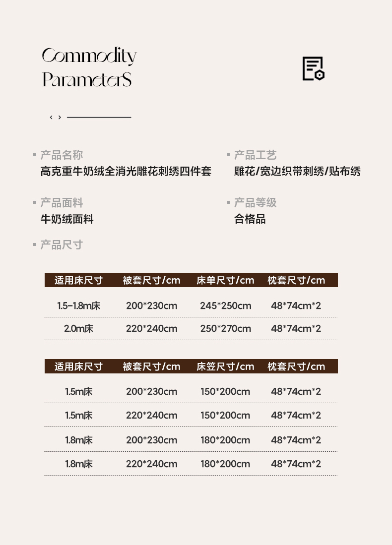当前位置: 91家纺网 > 商品网购 > 床品套件 > 四件套 > 牛奶绒四件套 > (总)典曼家纺 2024新款法式轻奢全消光牛奶绒雕花拼接刺绣四件套(含无纺布包装)