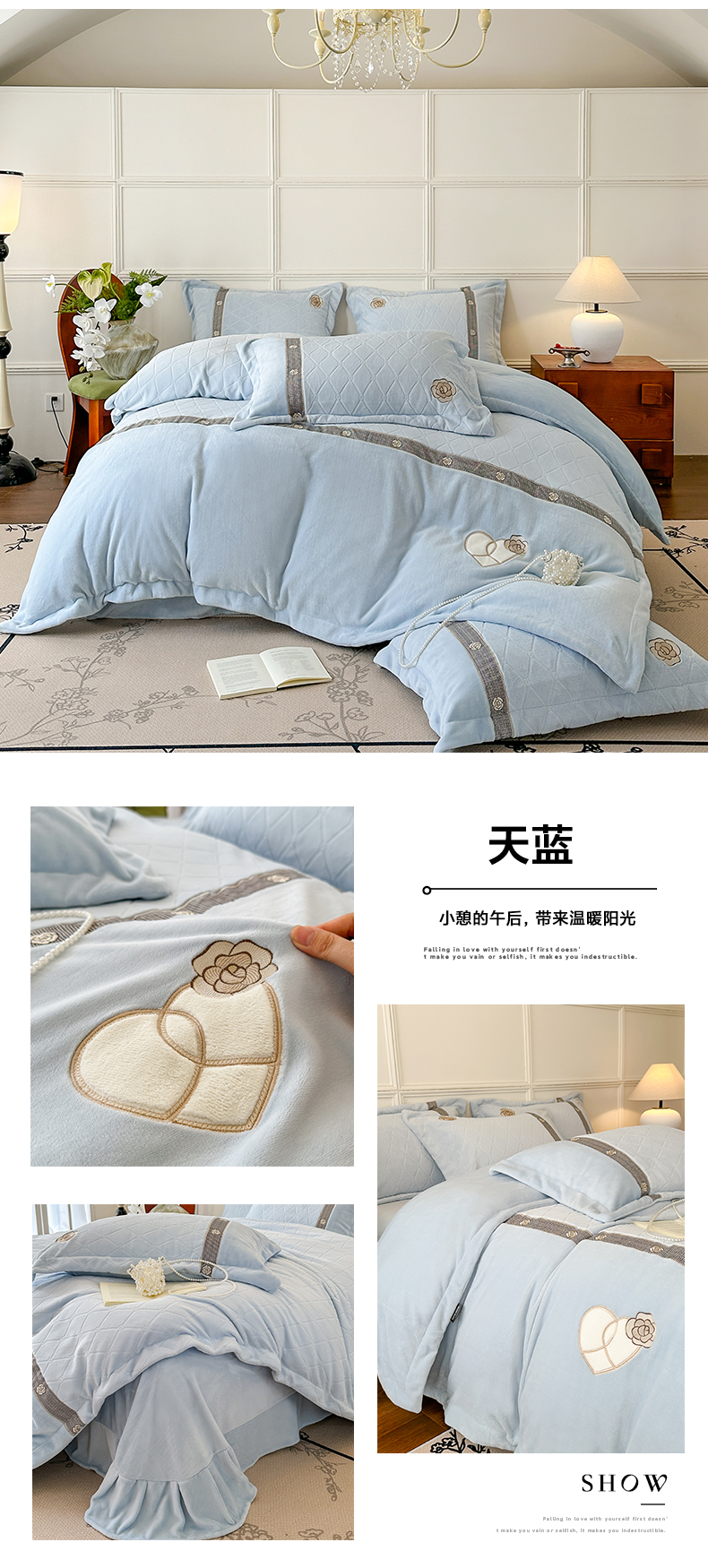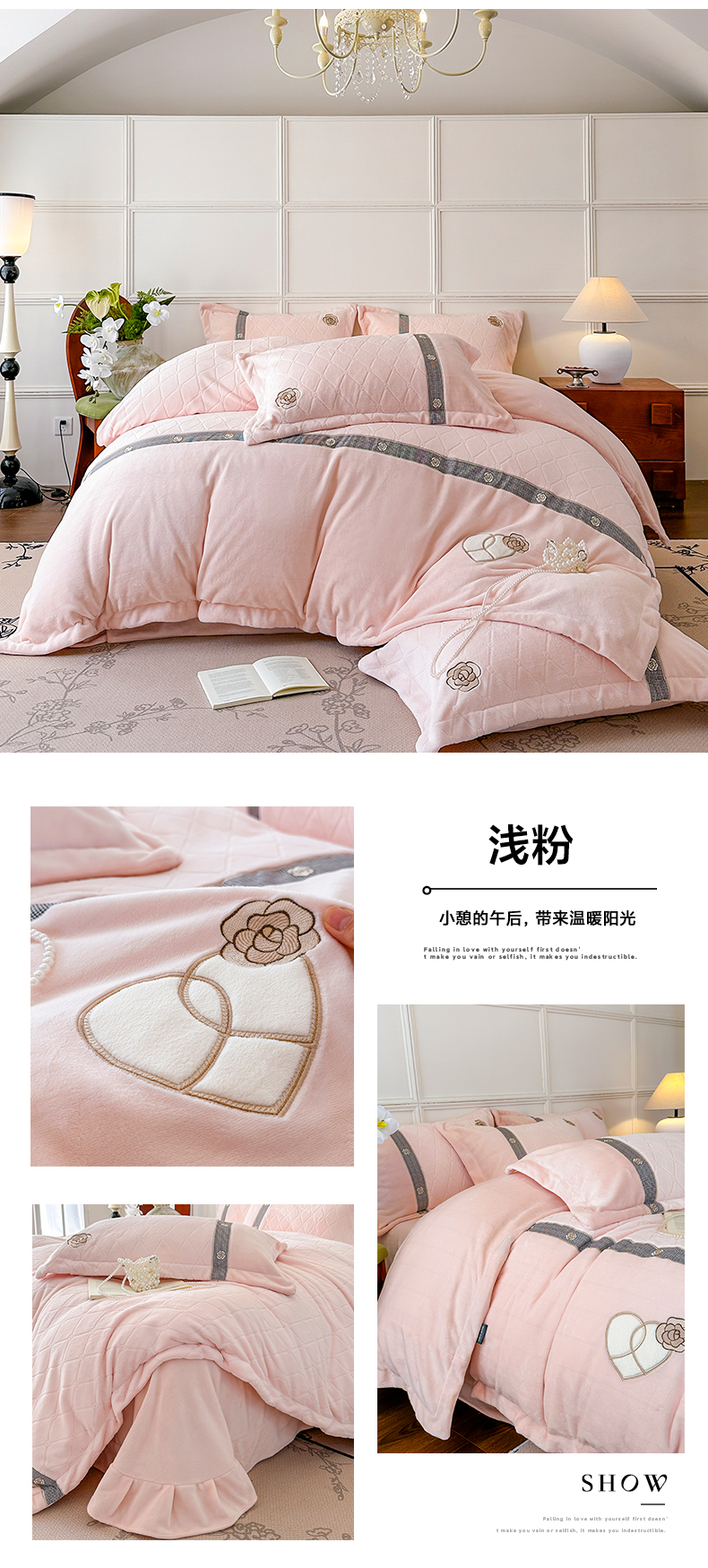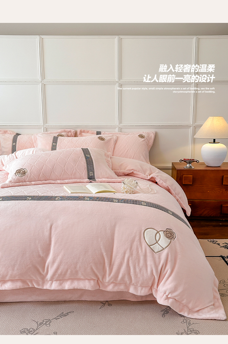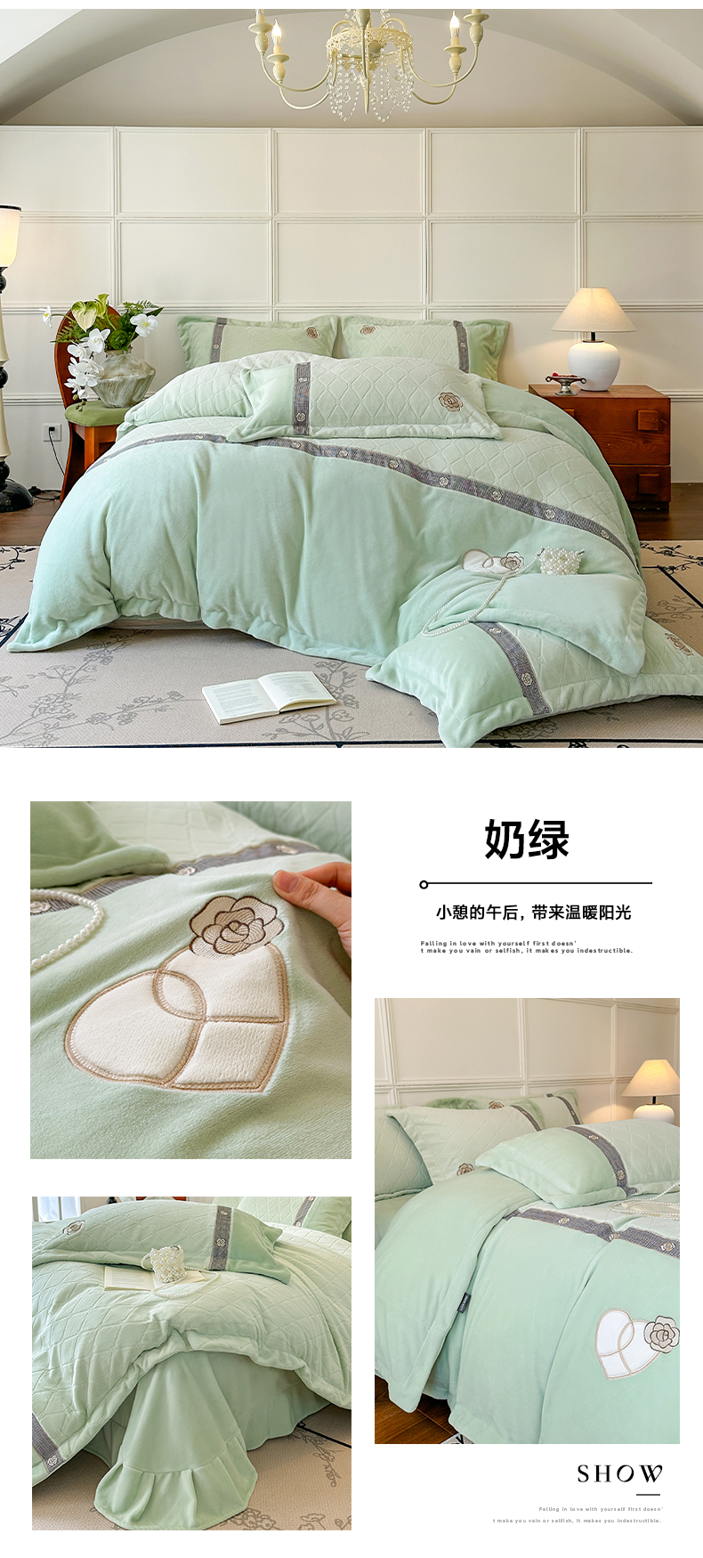 当前位置: 91家纺网 > 商品网购 > 床品套件 > 四件套 > 牛奶绒四件套 > (总)典曼家纺 2024新款法式轻奢全消光牛奶绒雕花拼接刺绣四件套(含无纺布包装)