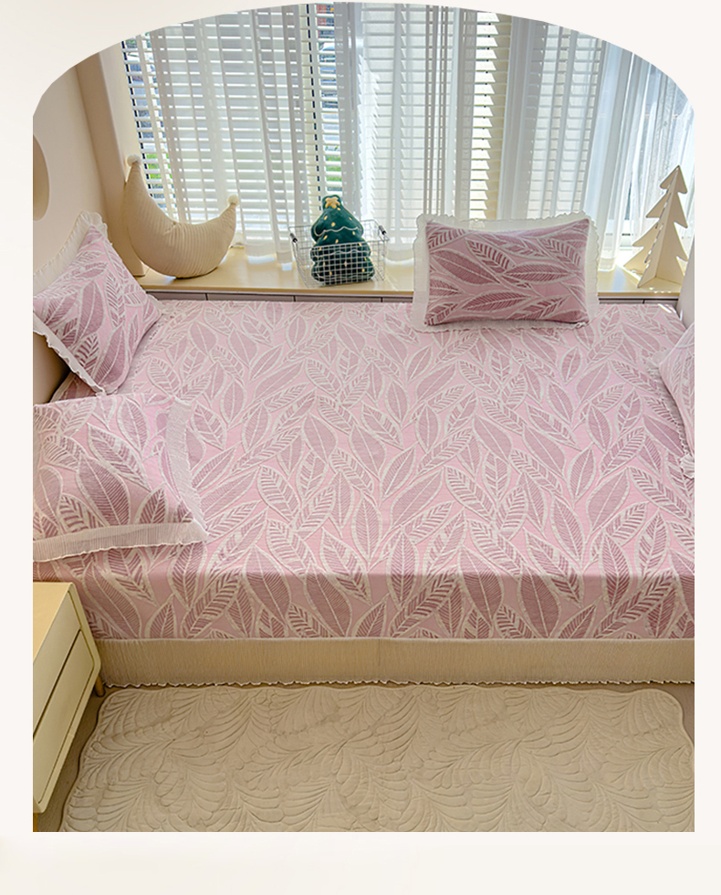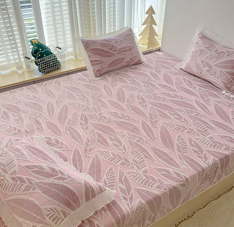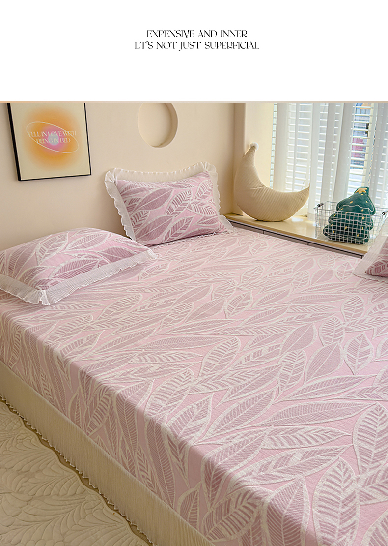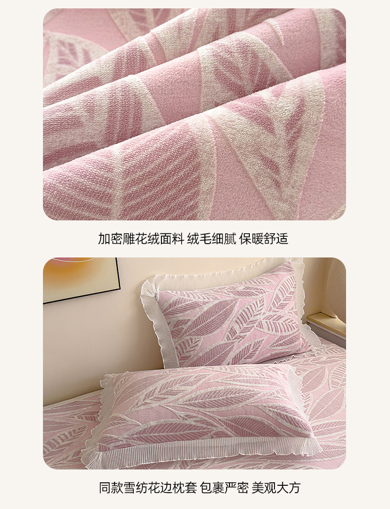 冬然家纺 2024新款雕花绒榻榻米床盖 秋之叶粉