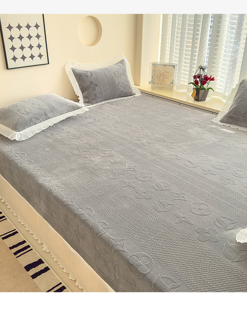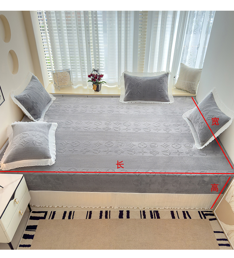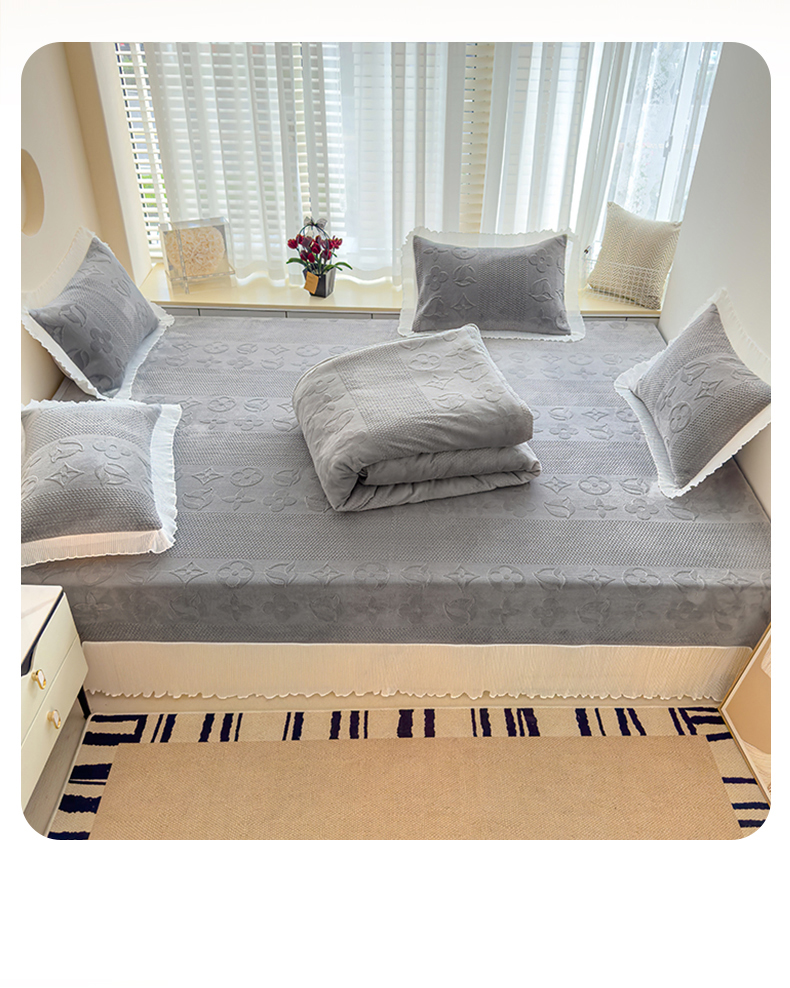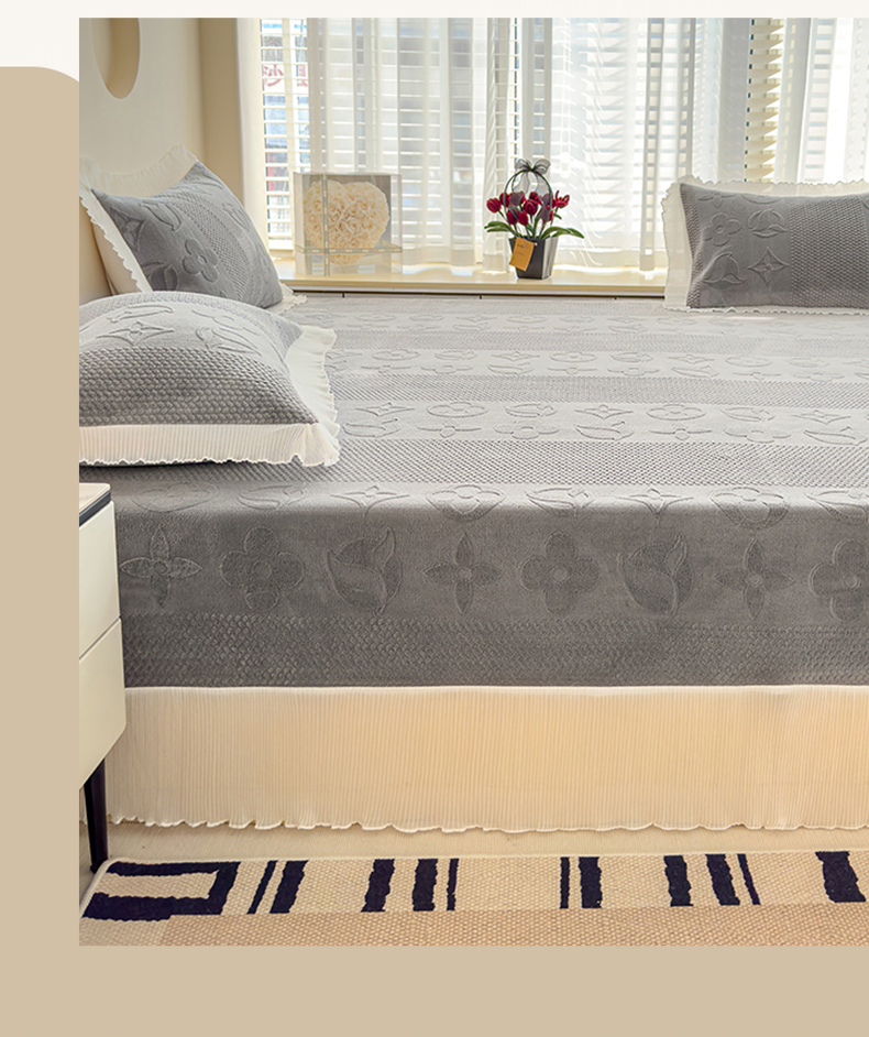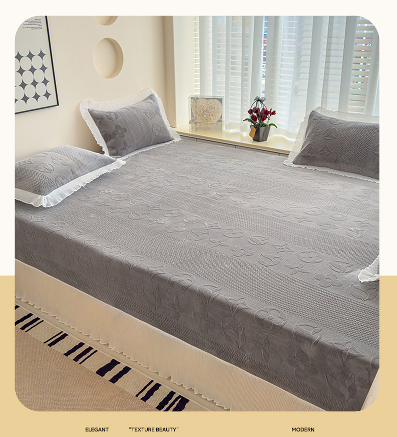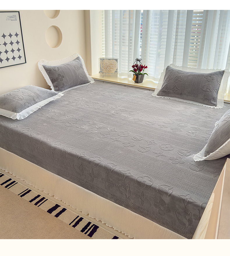 冬然家纺 2024新款雕花绒榻榻米床盖赫本灰