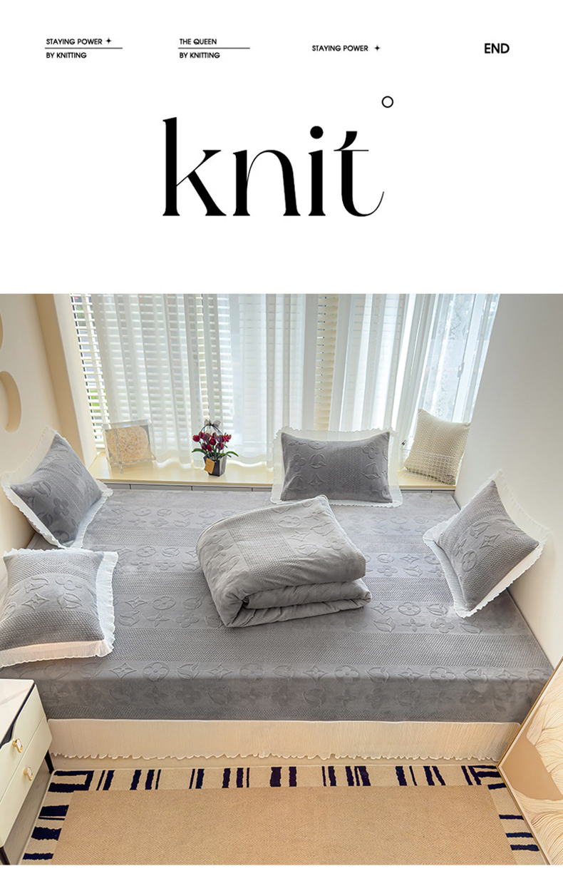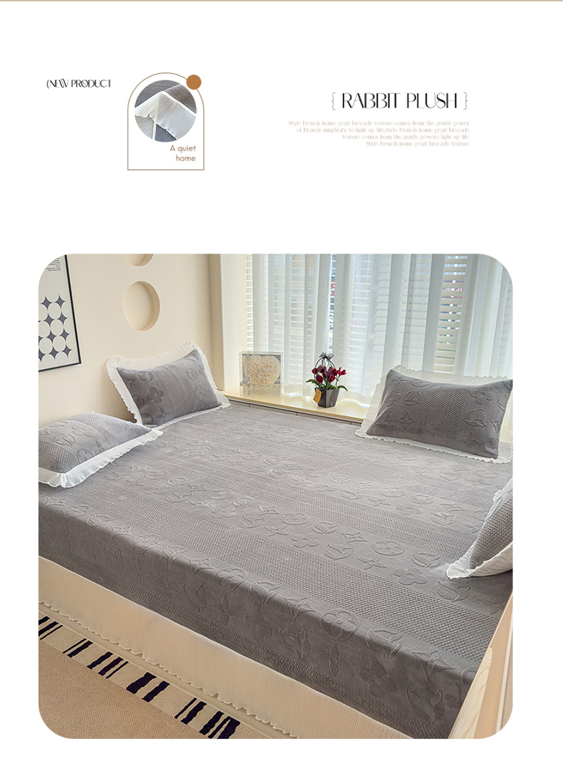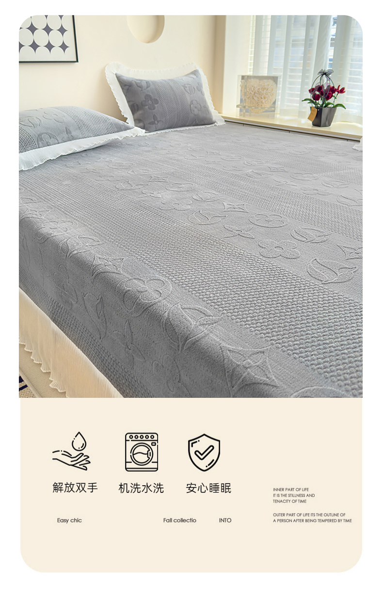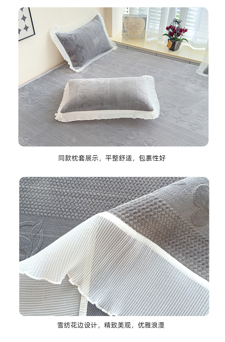 • 91家纺网 家纺一手货源 找家纺 冬然家纺 2024新款雕花绒榻榻米床盖赫本灰