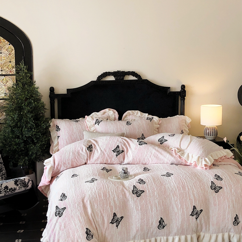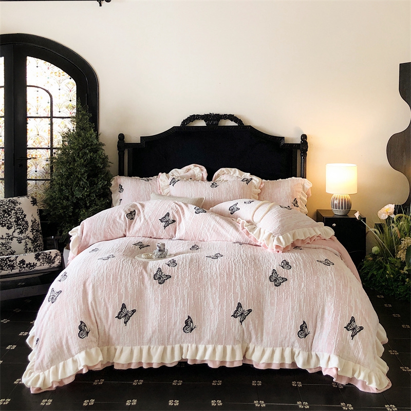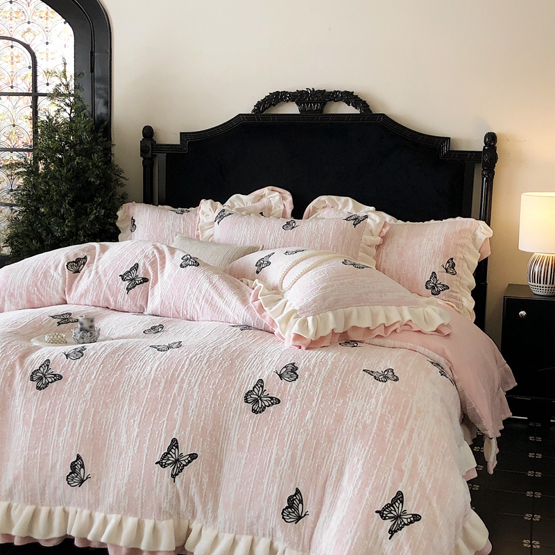 商品名称:馨蕊家居 2024秋冬轻奢煦暖绒高精密刺绣绒梦幻系列四件套 蝶梦-蔷薇粉