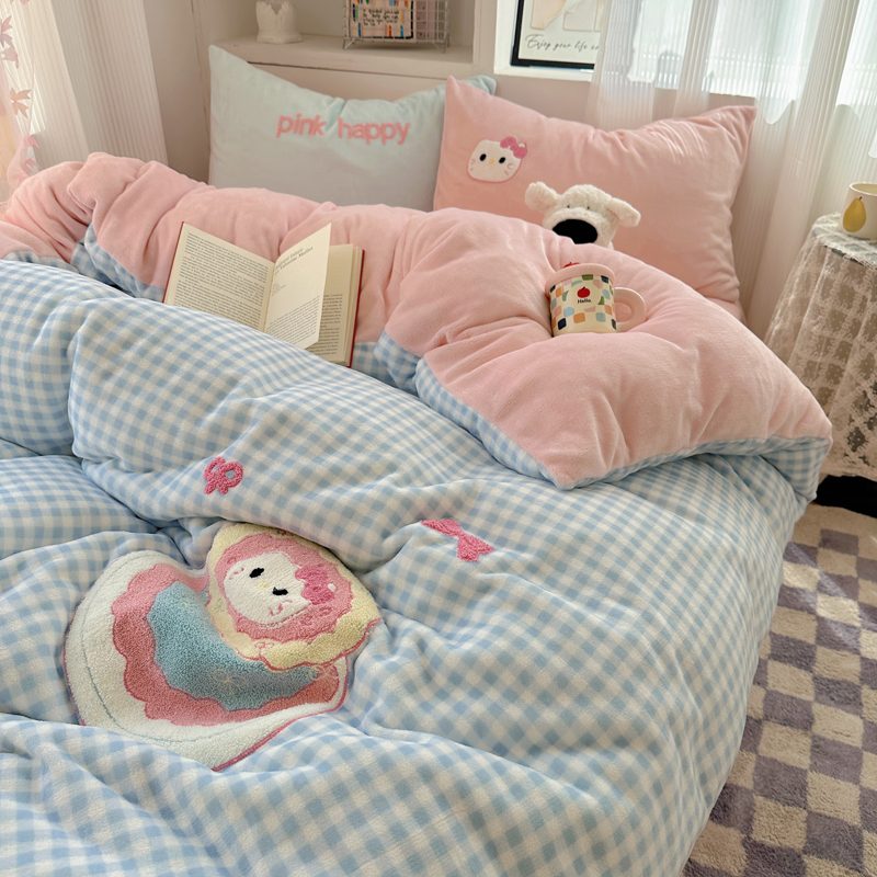 (总)顾里家纺 2024新款ins韩风甜感刺绣标牛奶绒四件套,蛋糕狗狗,烛台小熊,ins可颂,ins苹果,ins沙发狗,ins小象,ins樱桃猫