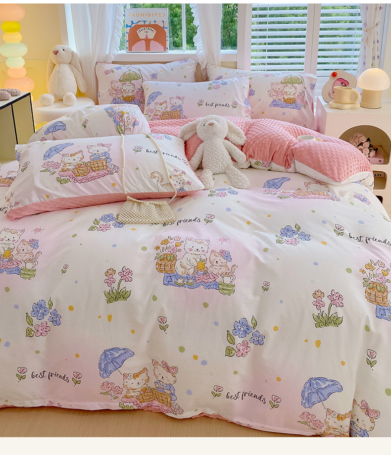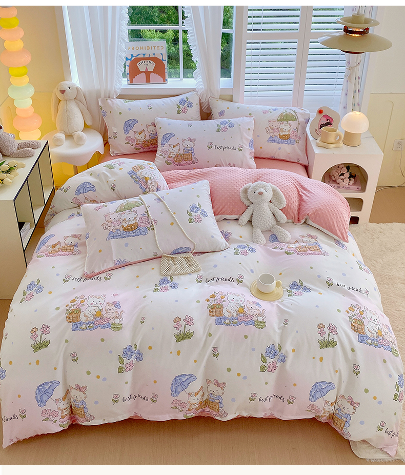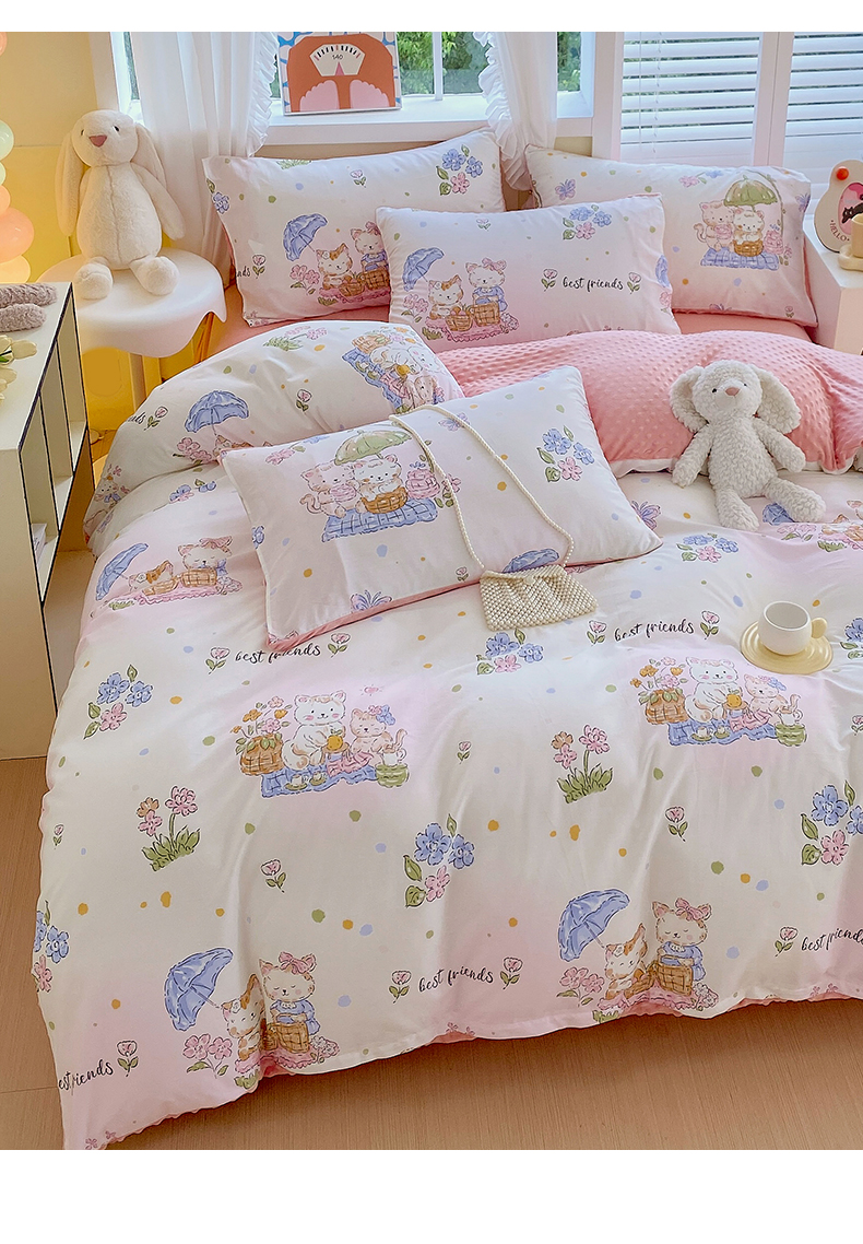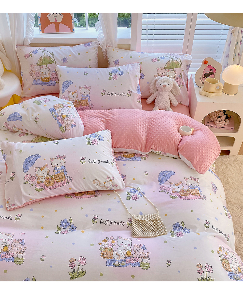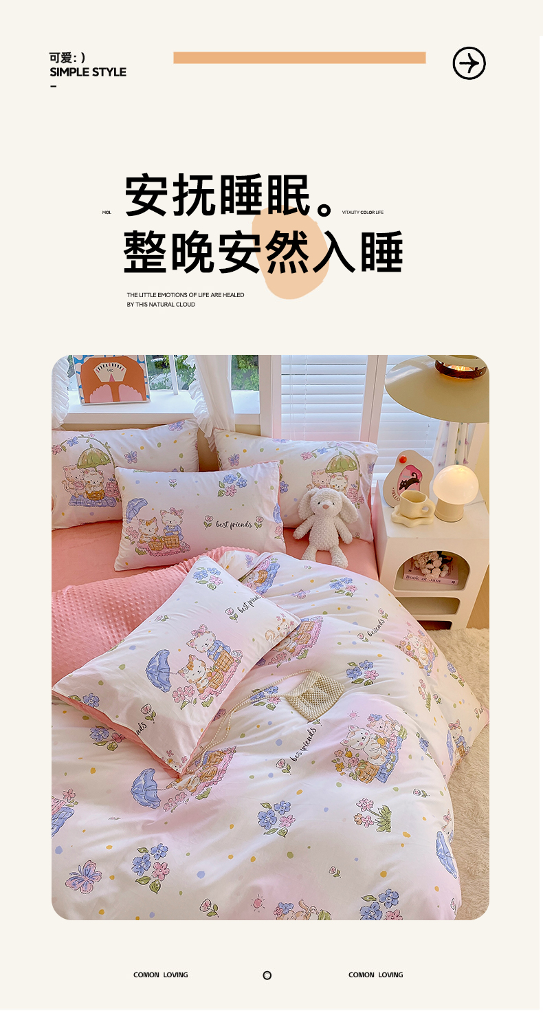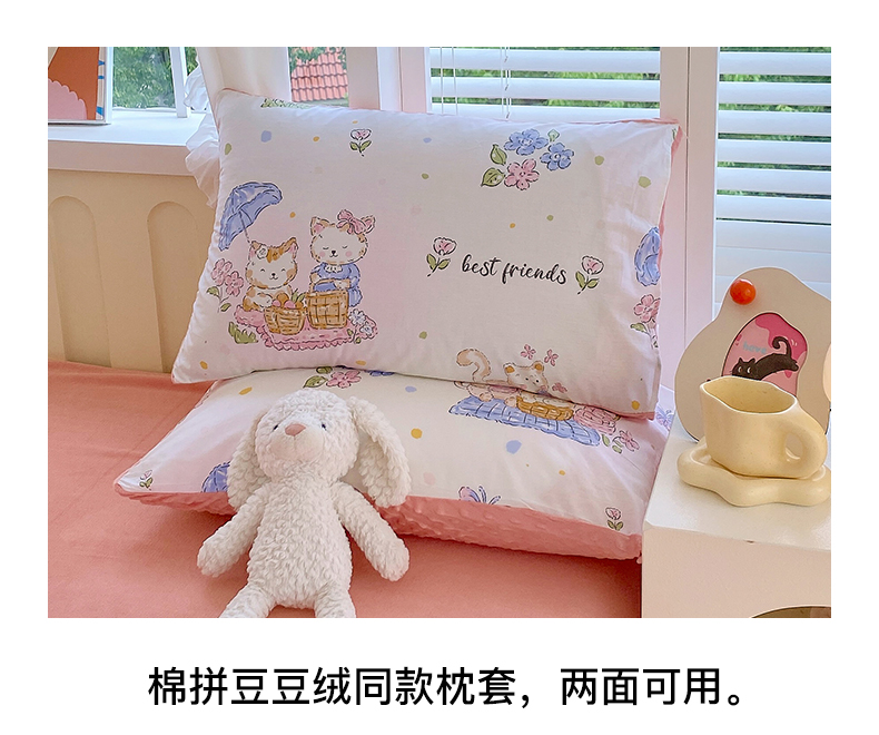 当前位置: 91家纺网 > 商品网购 > 床品套件 > 四件套 > 其它四件套 > 金鑫汇家纺 2024新款棉加豆豆绒系列四件套 喵喵日记