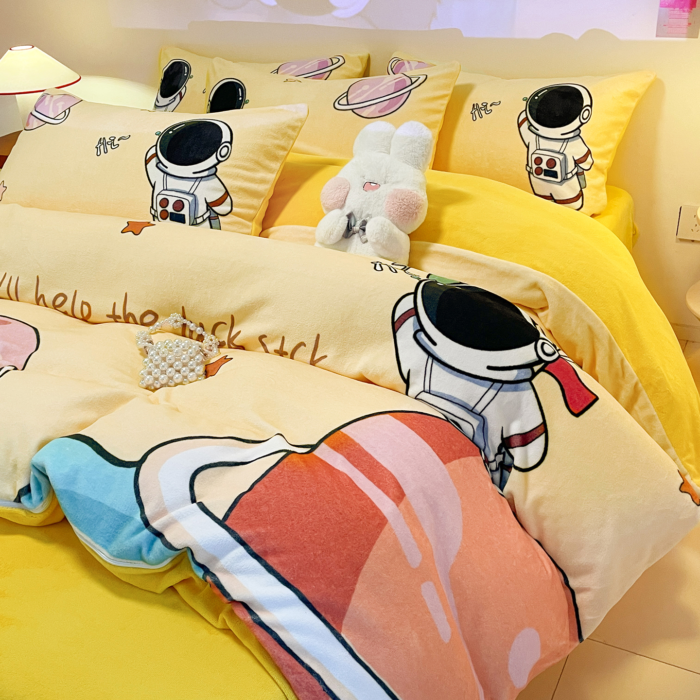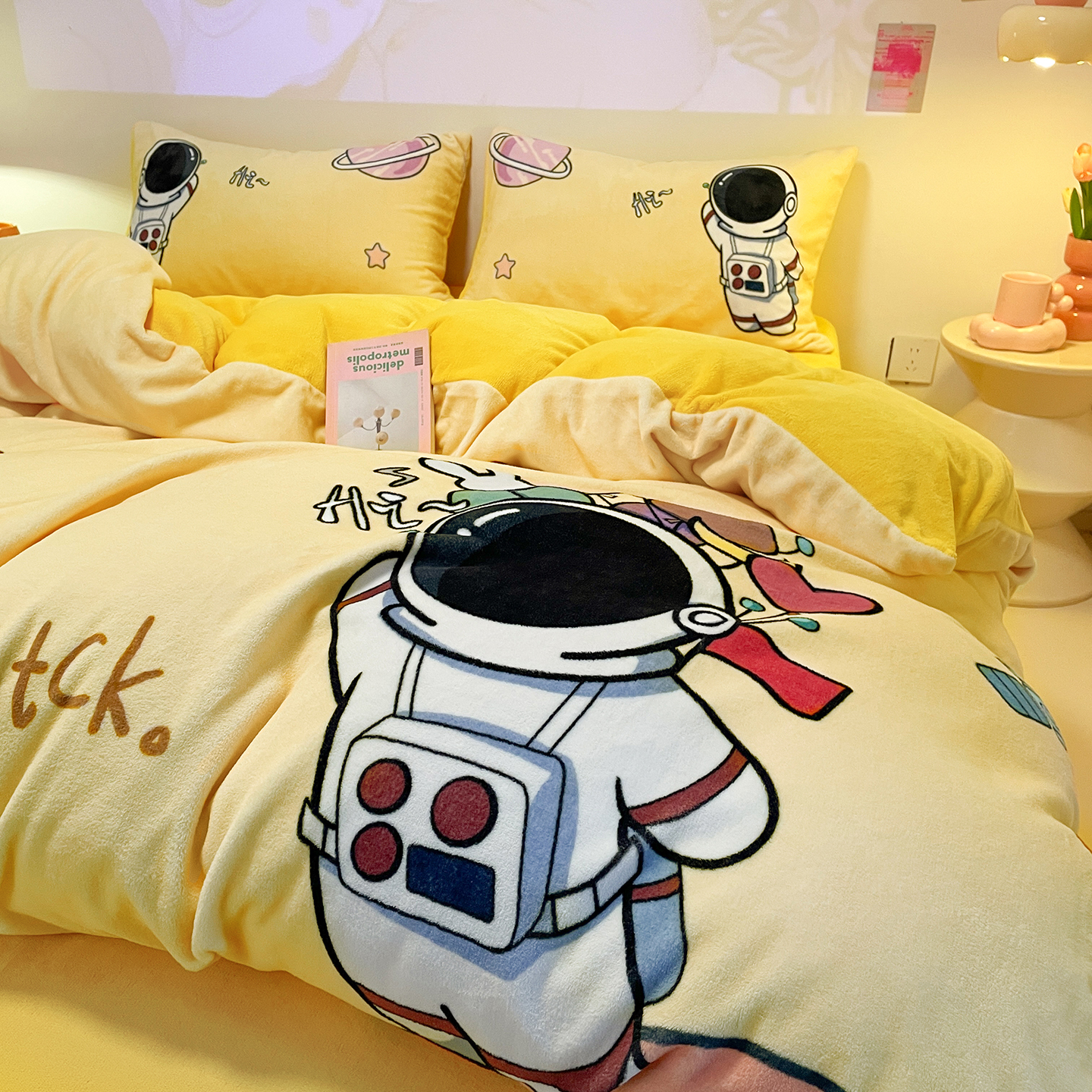 新方向 2025新款全消光A类儿童牛奶绒四件套-太空行 太空行-黄