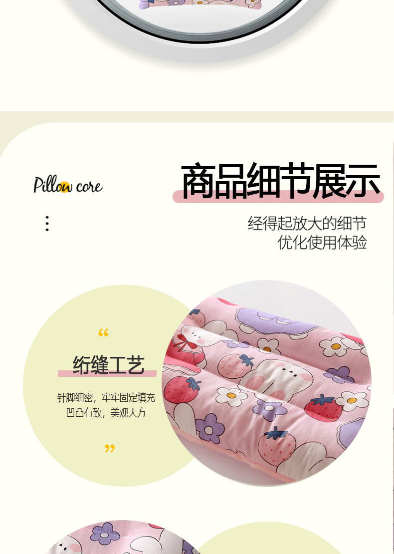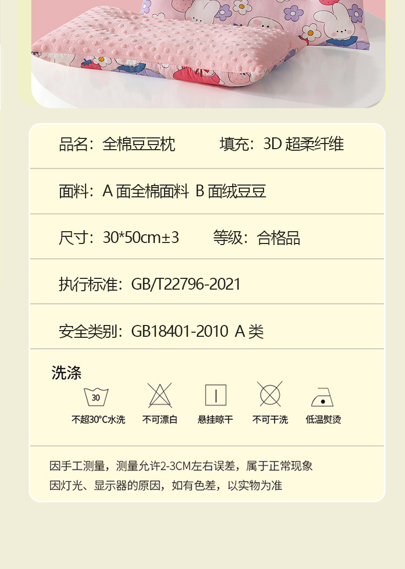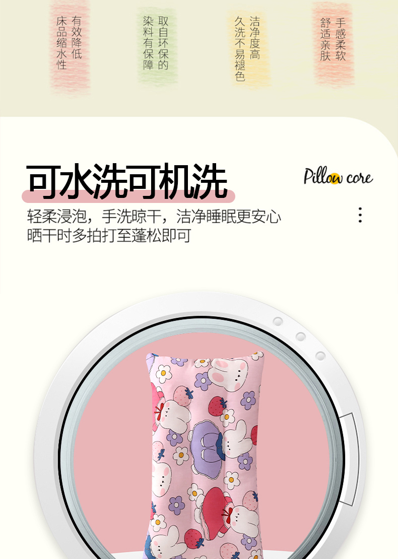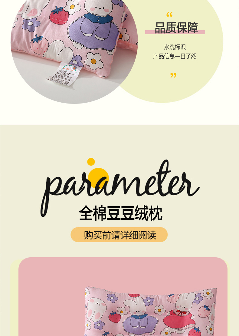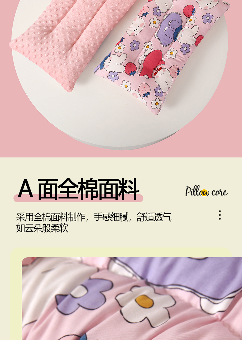 当前位置: 91家纺网 > 商品网购 > 枕头/枕芯/保健枕/颈椎枕 > 普通枕芯 > 宝晶 2024新款一体儿童豆豆枕30*50±3 草莓兔