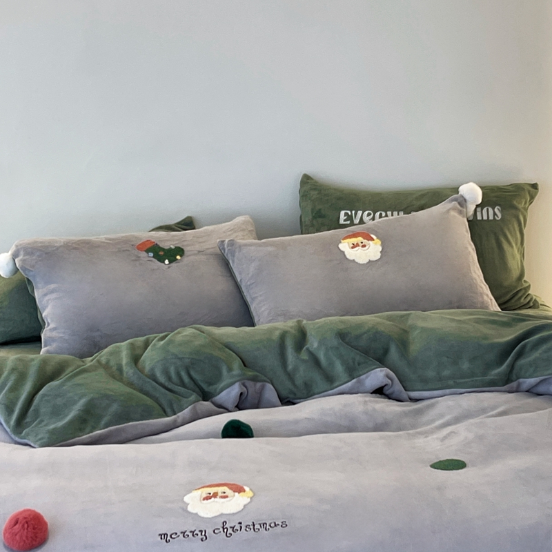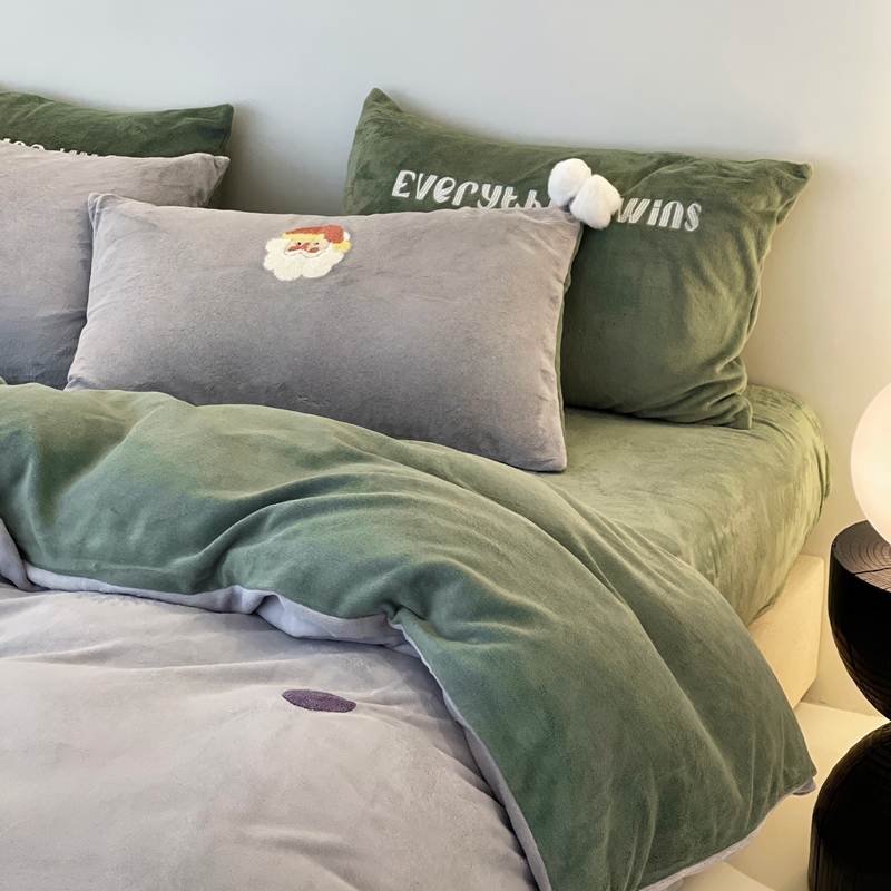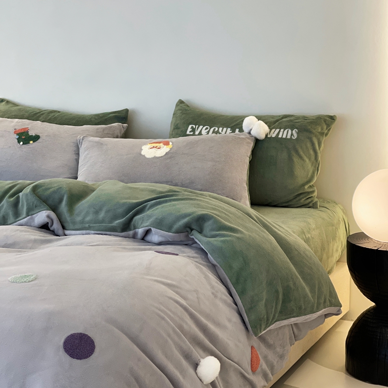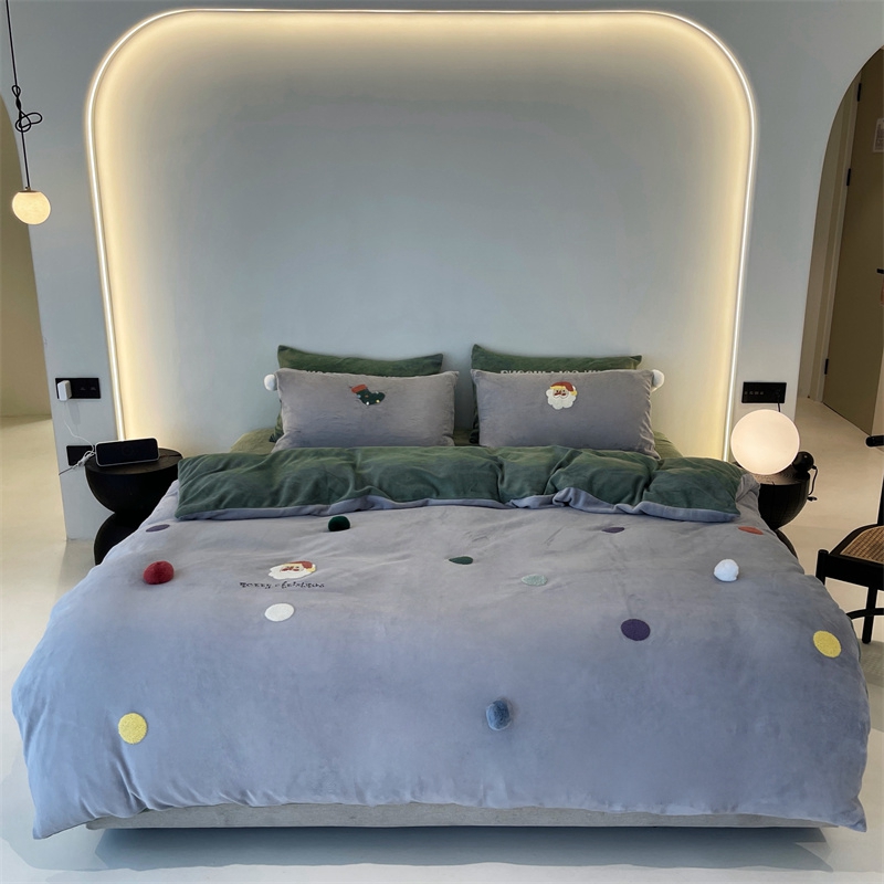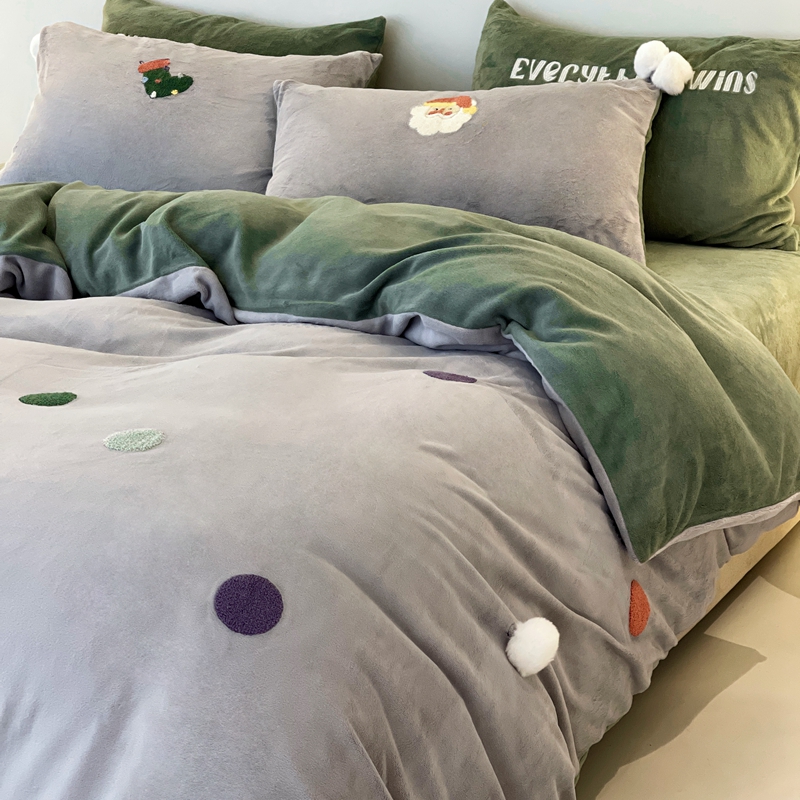 商品名称: 嗨购家纺 2024新款牛奶绒魔法派对系列四件套-场景2 魔法派对-波点灰