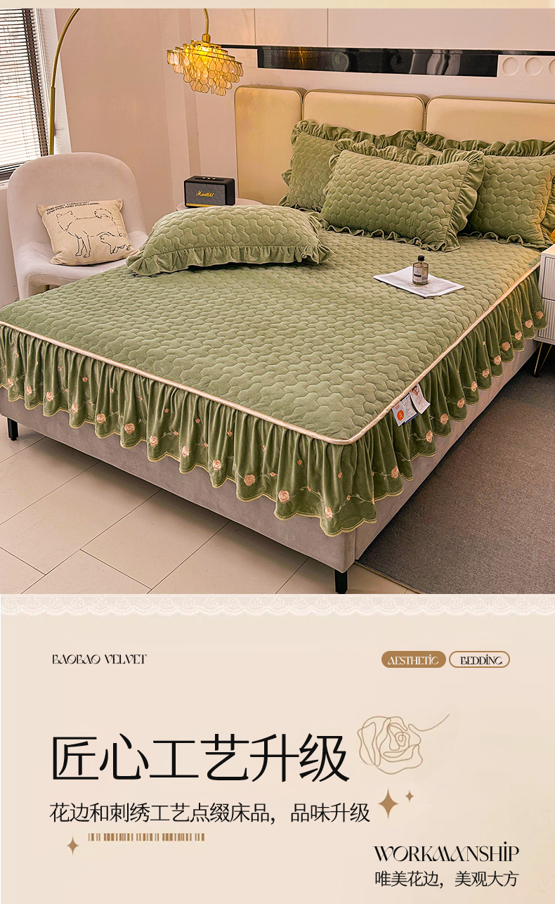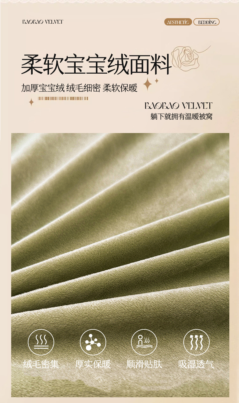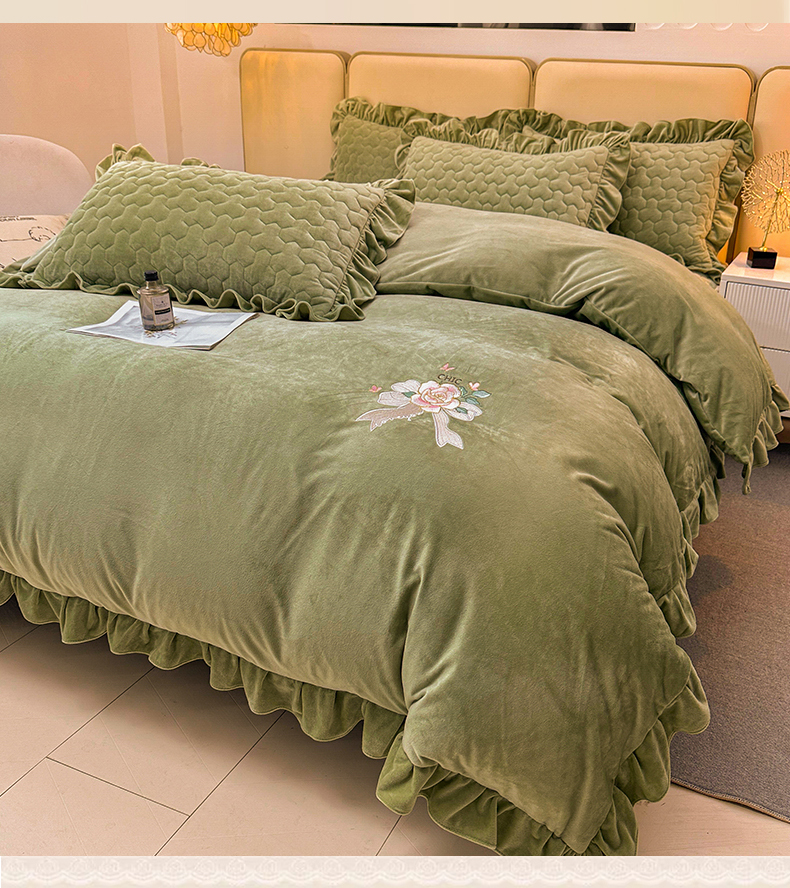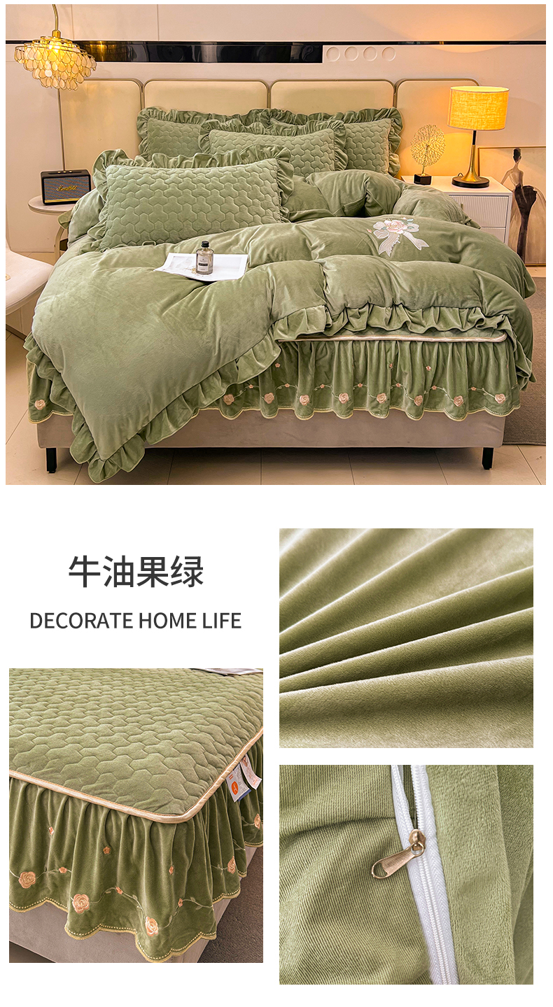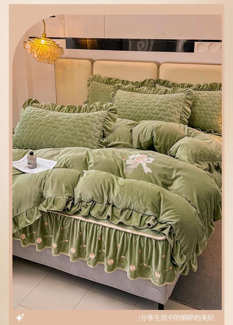 当前位置: 91家纺网 > 商品网购 > 床品套件 > 四件套 > 宝宝绒四件套 > 恒爱家纺 2024新款宝宝绒霞姿月韵四件套 牛油果绿