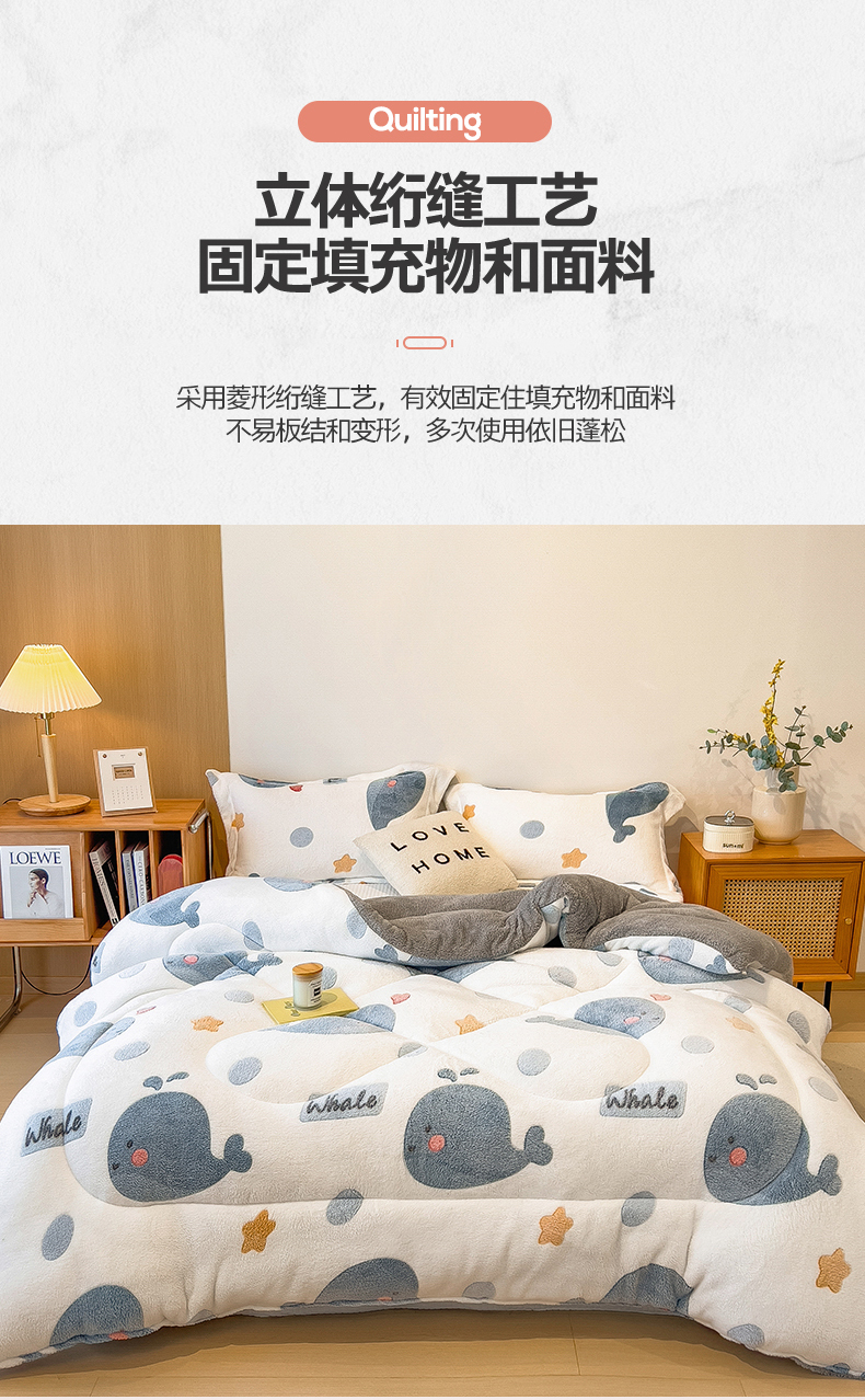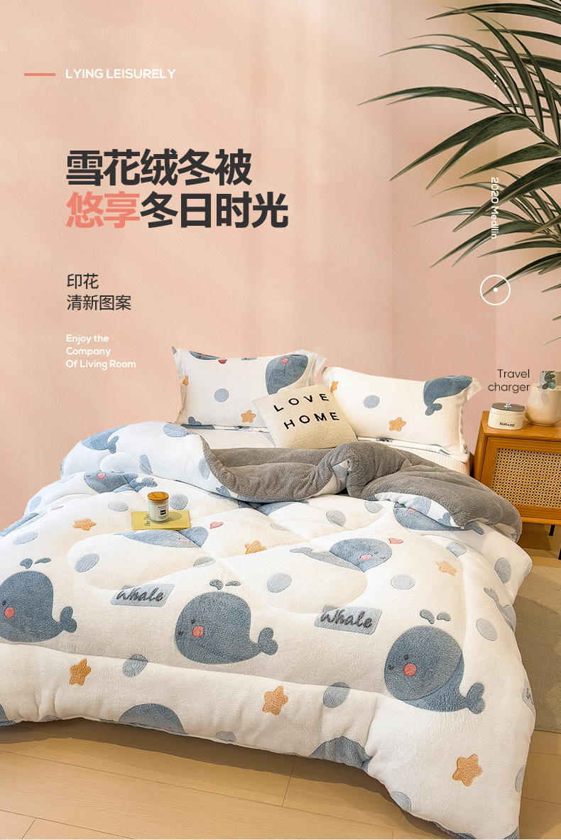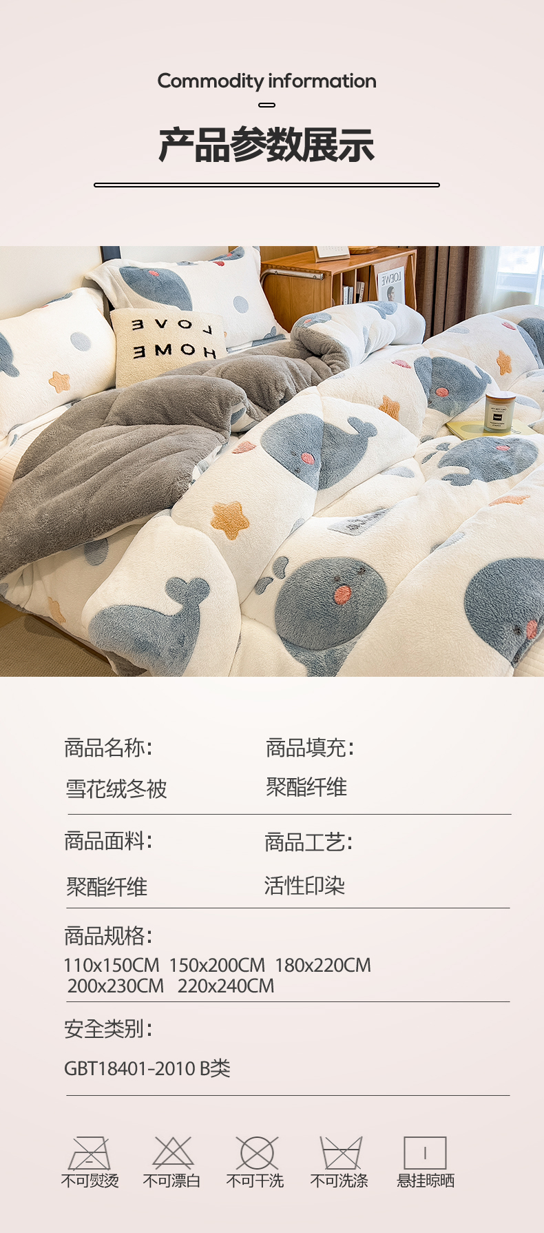 • 91家纺网 家纺一手货源 找家纺 金帛坊 新款雪花绒冬被被子被芯 小鲸鱼