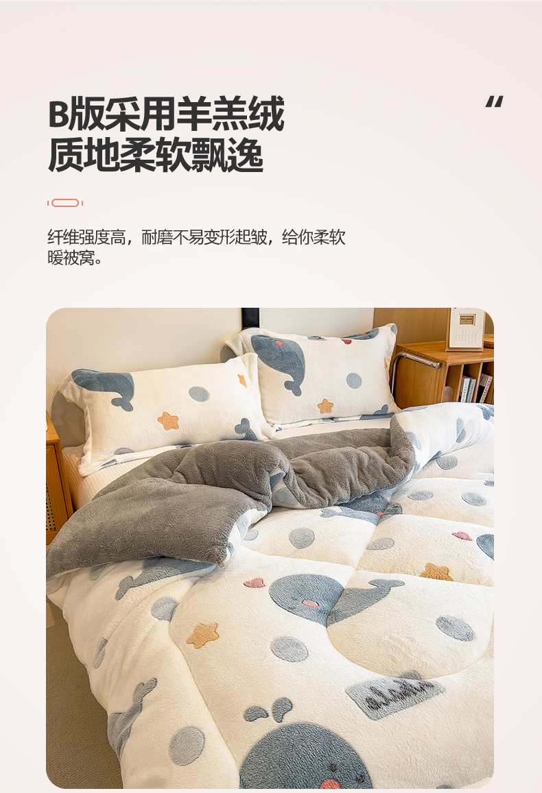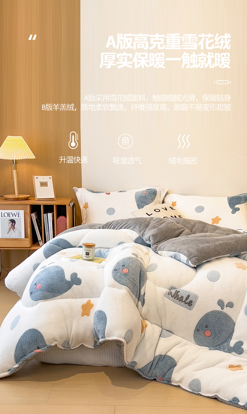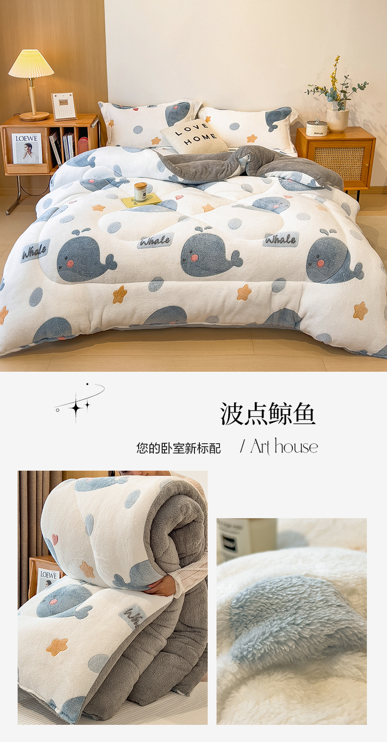 • 91家纺网 家纺一手货源 找家纺 金帛坊 新款雪花绒冬被被子被芯 小鲸鱼