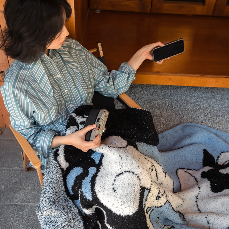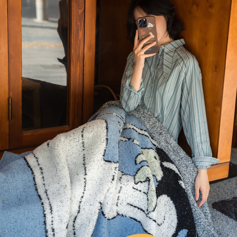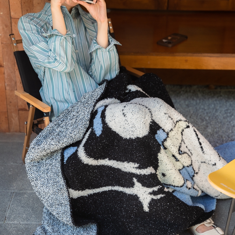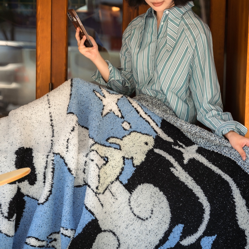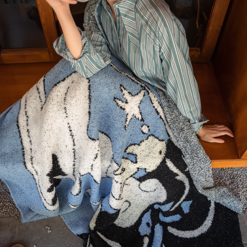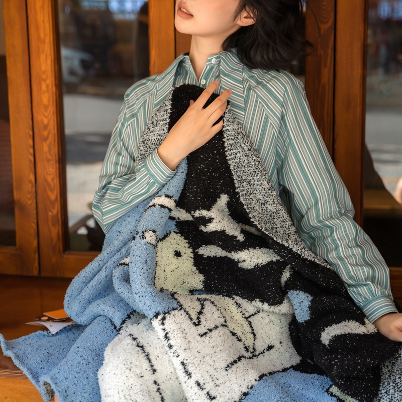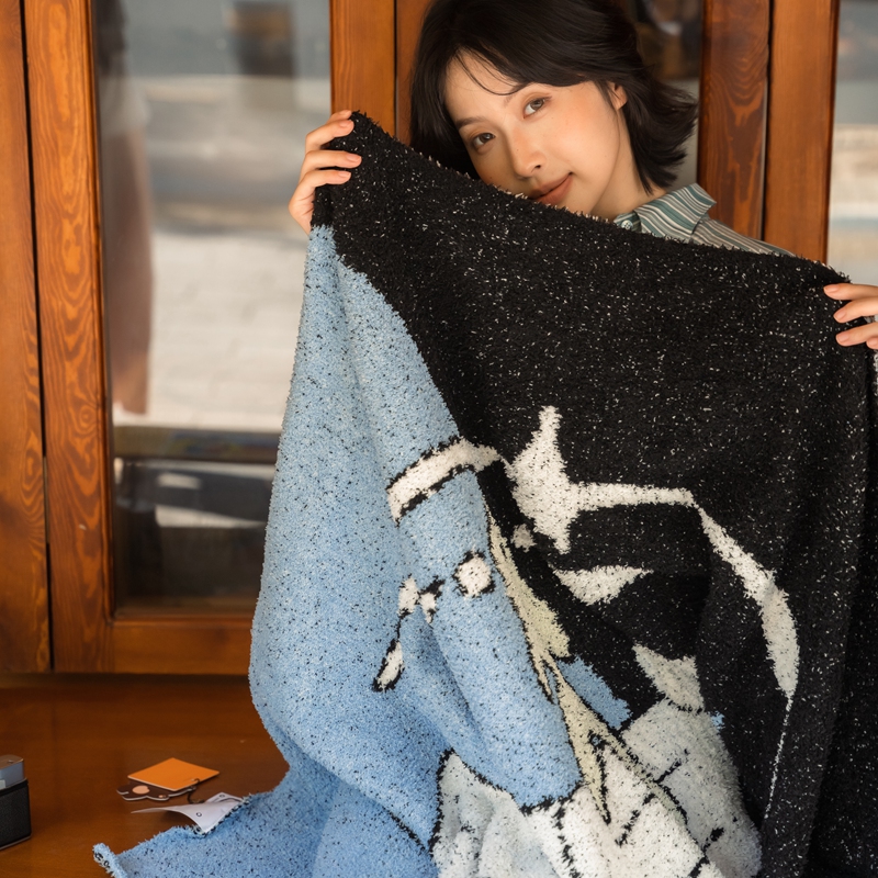 圆岛 2024新款多功能针织半边绒毛毯 喷泉小鱼