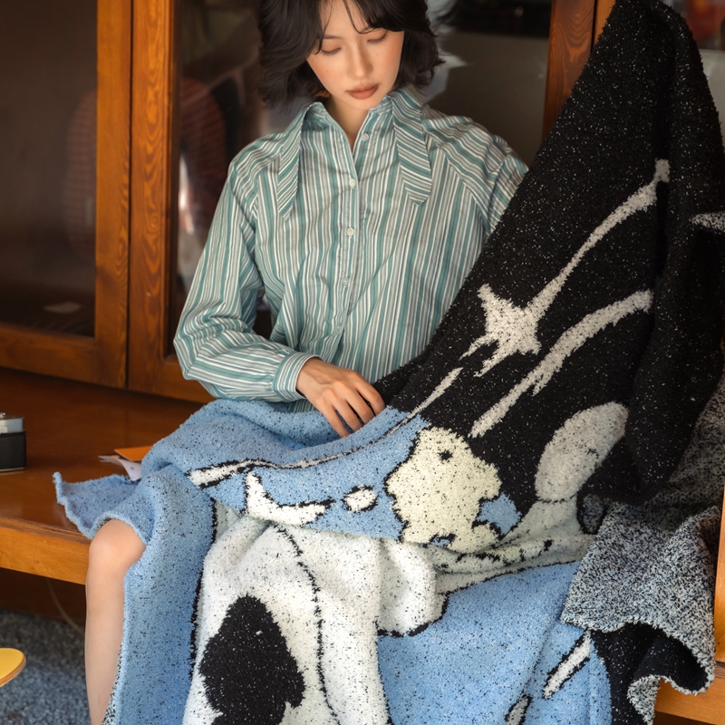 (总)圆岛家纺 2024新款四季款高品质多功能针织半边绒毛毯,圣诞派对
