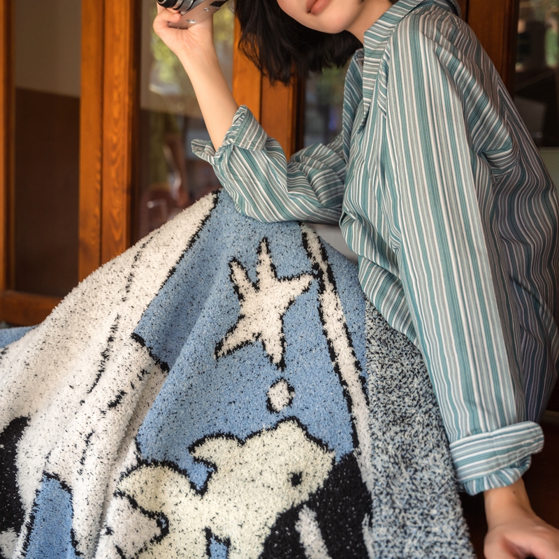 商品名称:圆岛 2024新款多功能针织半边绒毛毯 喷泉小鱼
