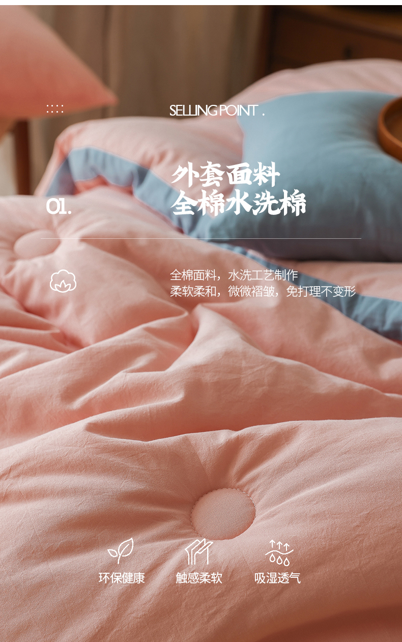 • 91家纺网 家纺一手货源 找家纺 雯雨家纺 2024新款里外全棉棉花被冬被 文艺粉