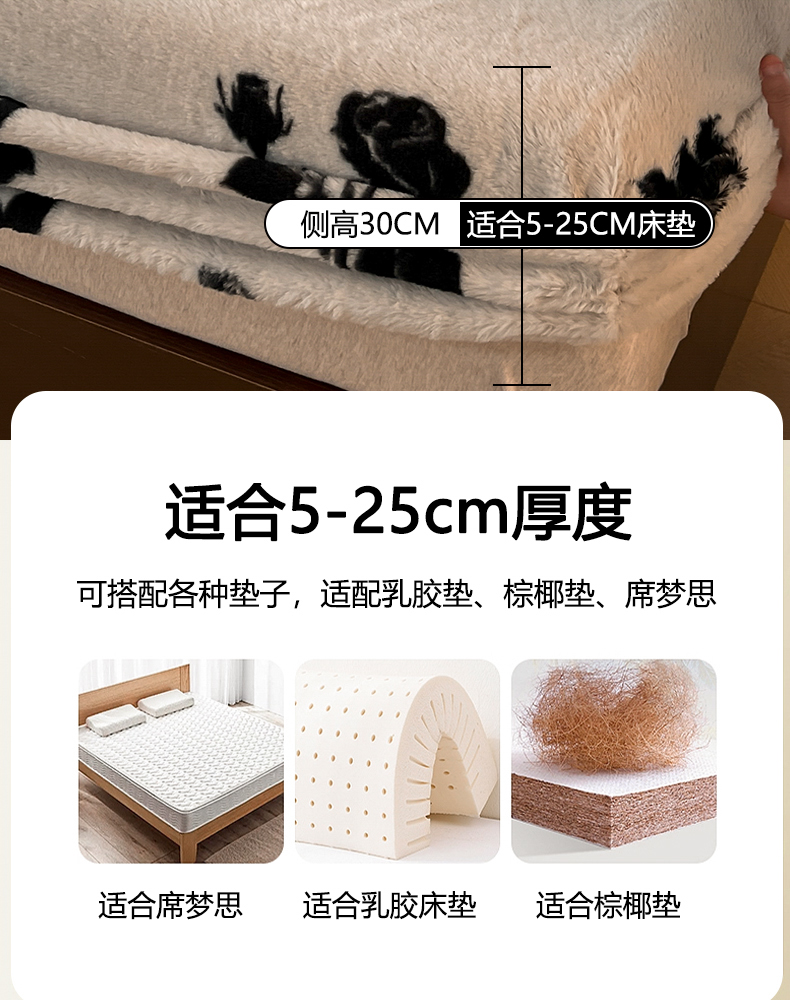 子曰 2025新款加厚美拉德兔绒床笠床褥子床护垫 美拉德-玫瑰(白)