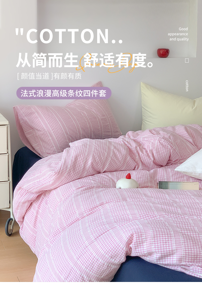 当前位置: 91家纺网 > 商品网购 > 床品套件 > 四件套 > 水洗棉四件套 > 繁花家居 2024新款法式浪漫条纹水洗棉四件套 珍妮日记