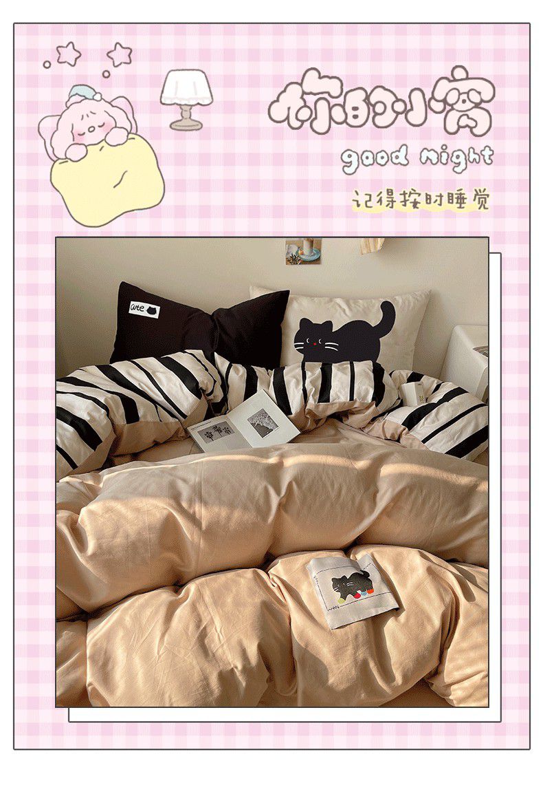 当前位置: 91家纺网 > 商品网购 > 床品套件 > 四件套 > 水洗棉四件套 > 繁花家居 2024新款亲肤舒适卡通印花水洗棉四件套 黑条猫